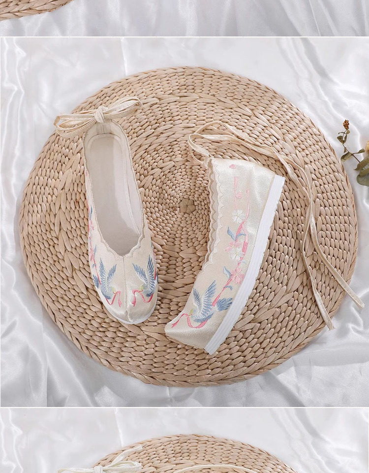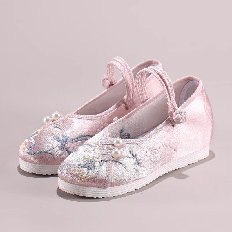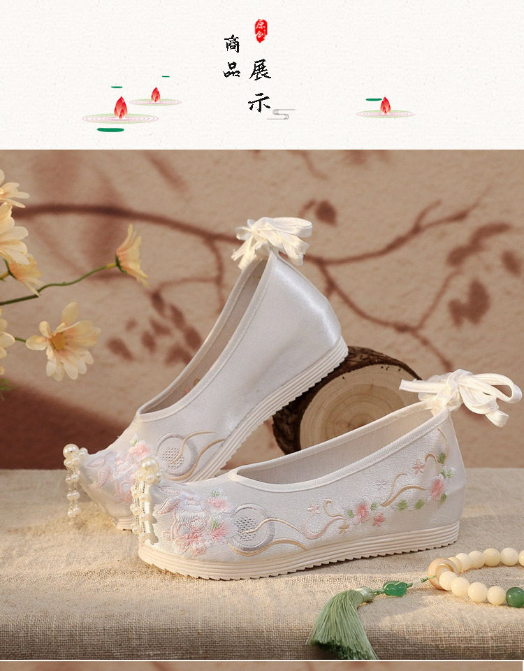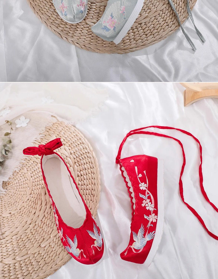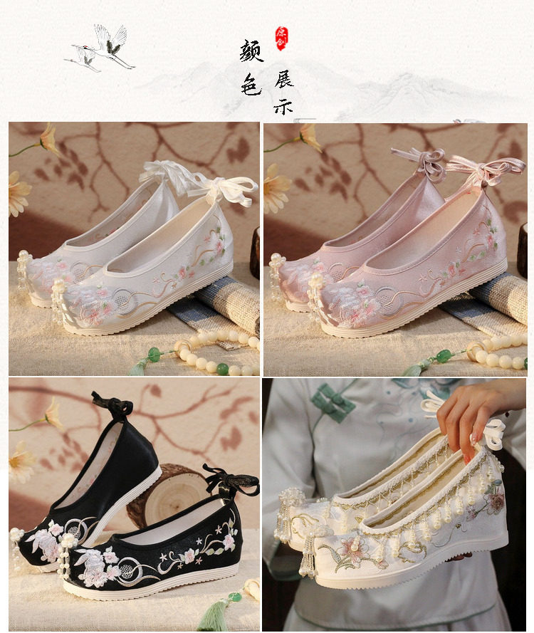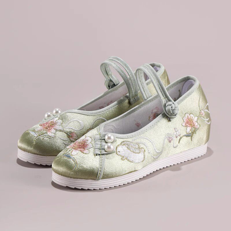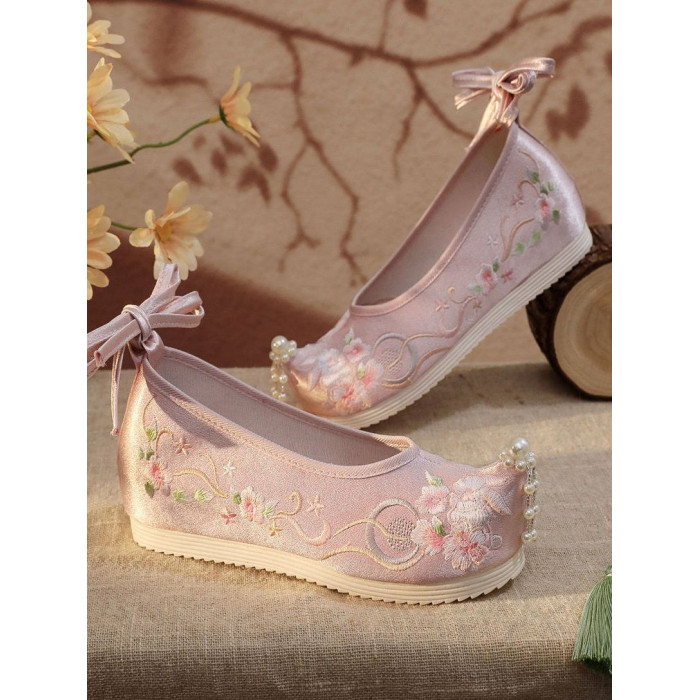春夏新款漢服鞋子女翹頭綉花鞋演出古風刺綉古裝弓鞋老北京布鞋女