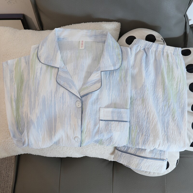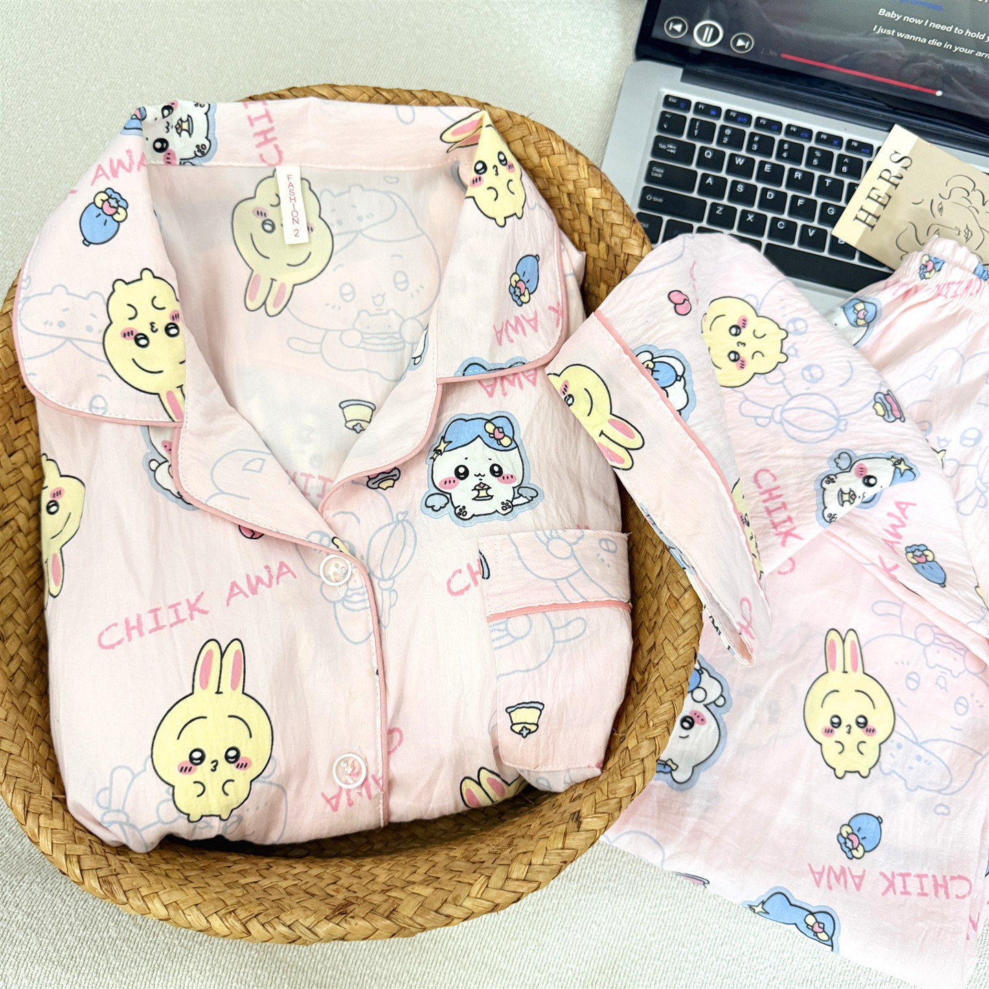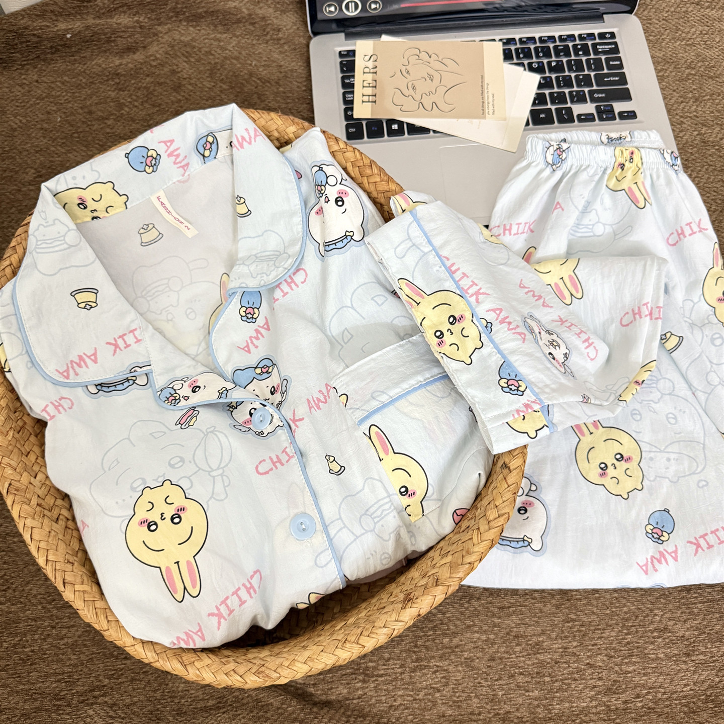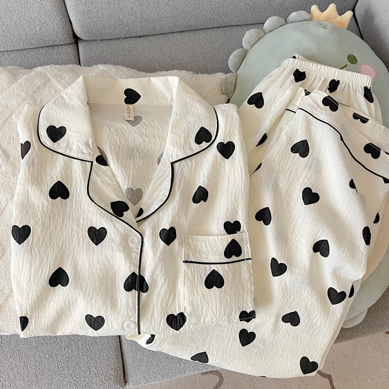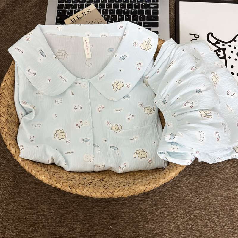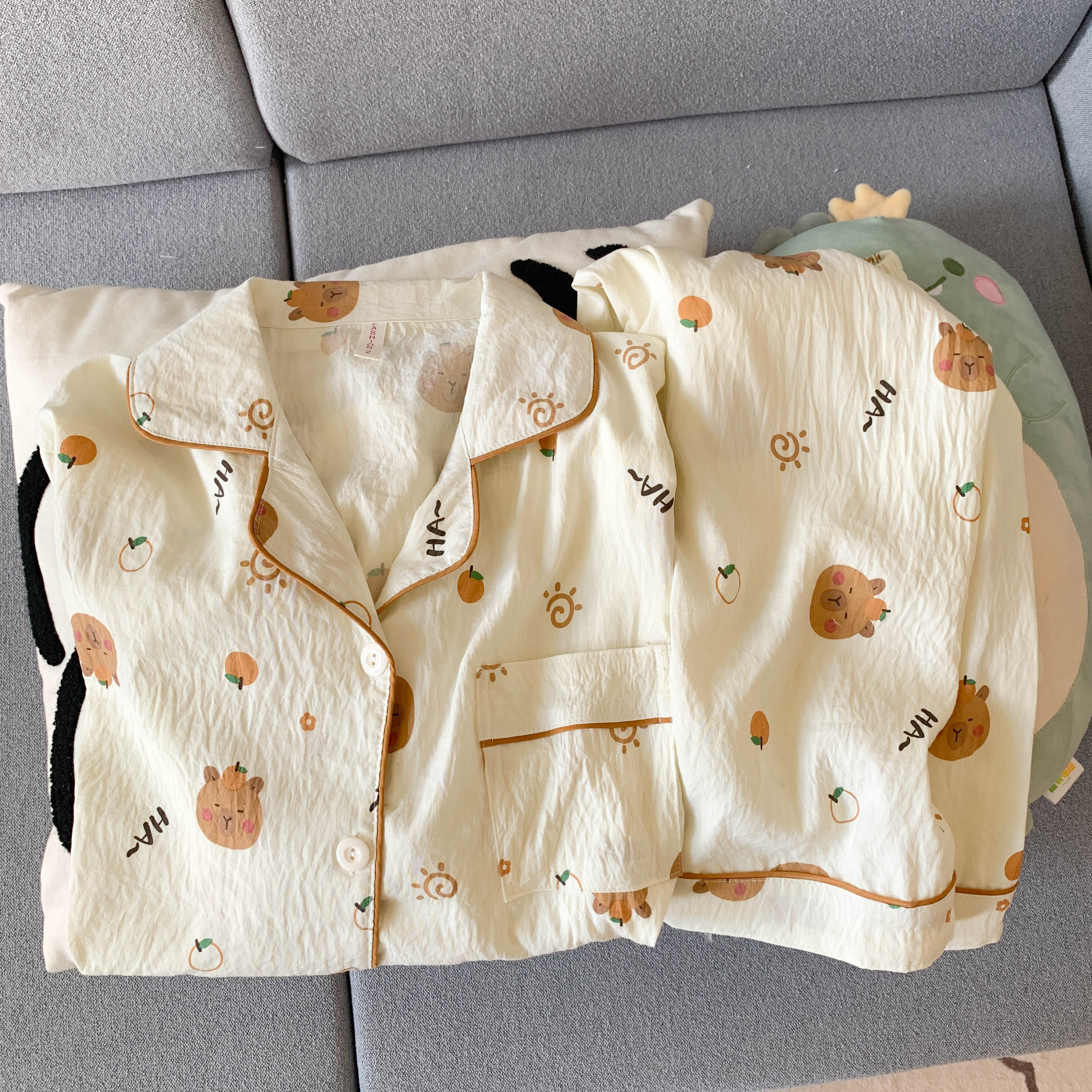 純棉紗布睡衣女長袖長褲春秋款套裝甜美櫻桃可外穿開衫家居服夏季