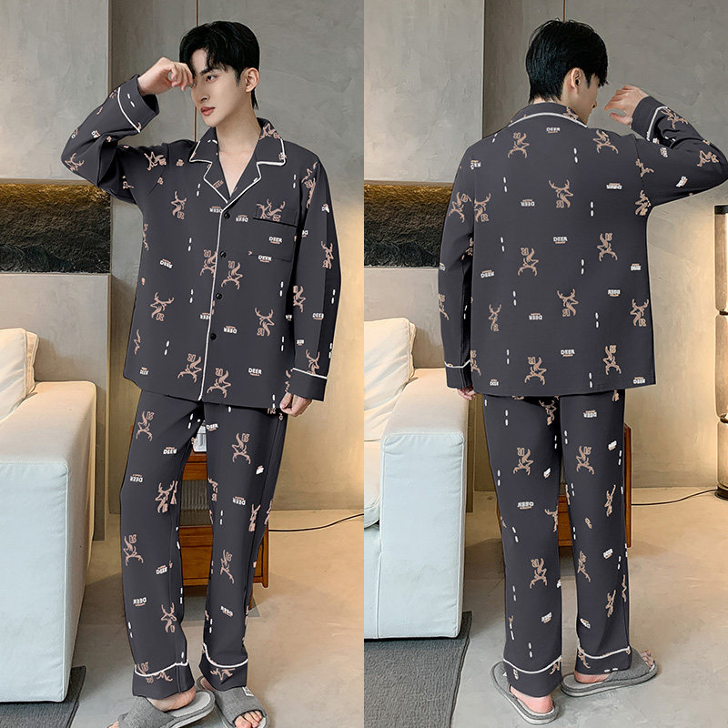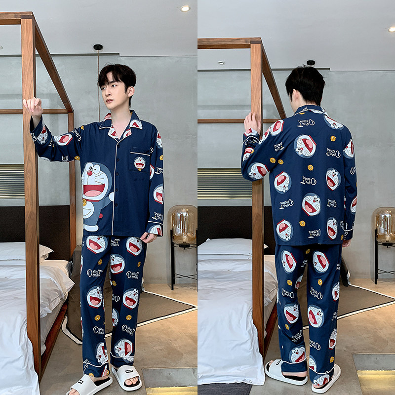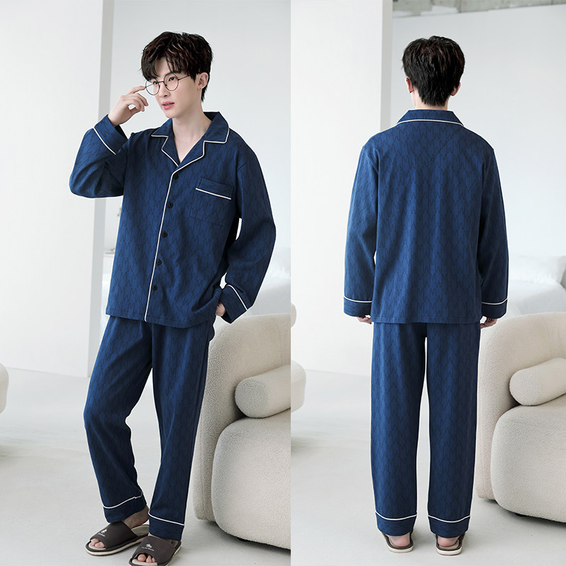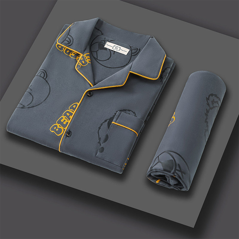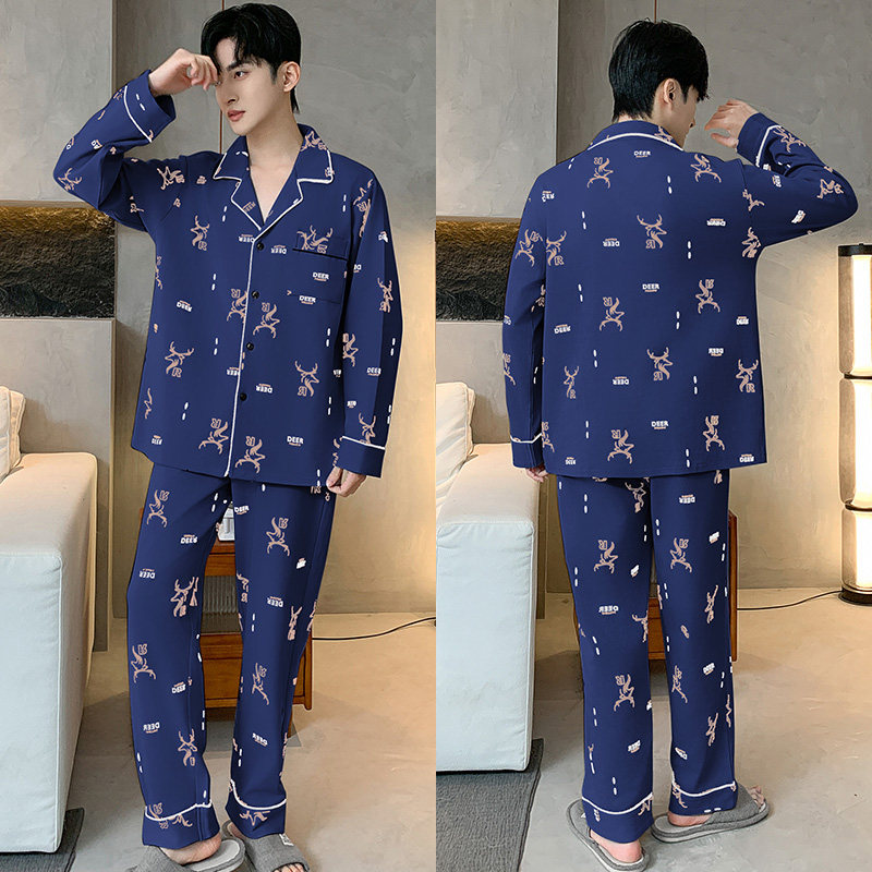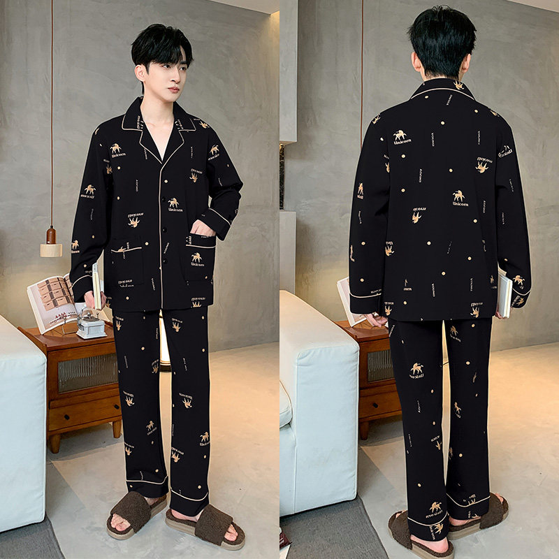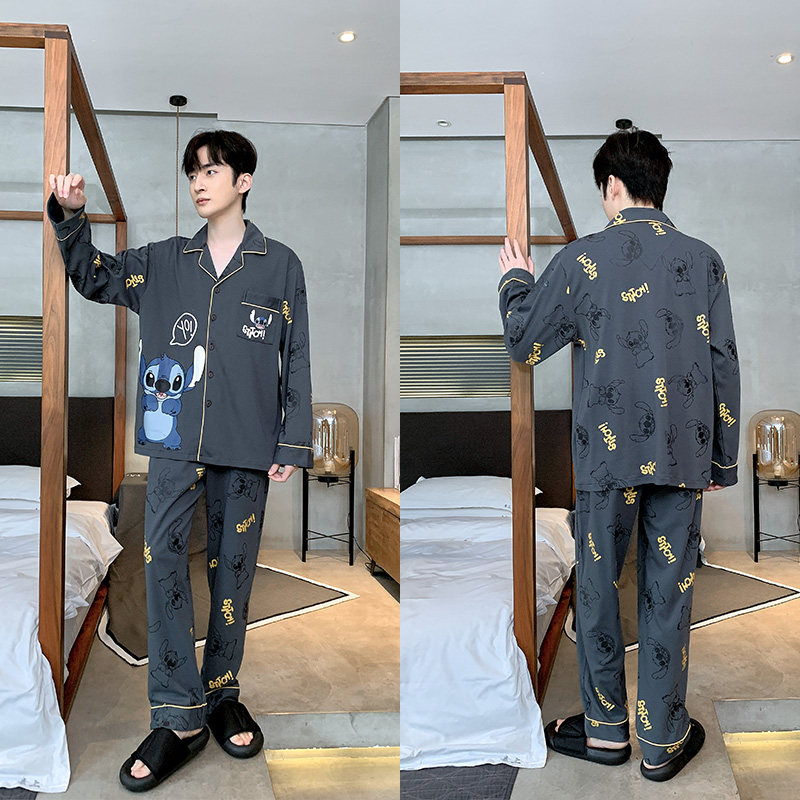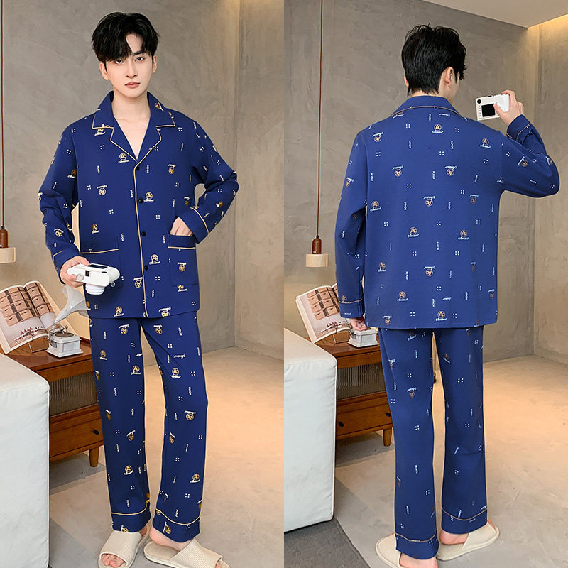 春秋季純棉卡通睡衣男士長袖加肥加大碼青年男款家居服套裝可外穿