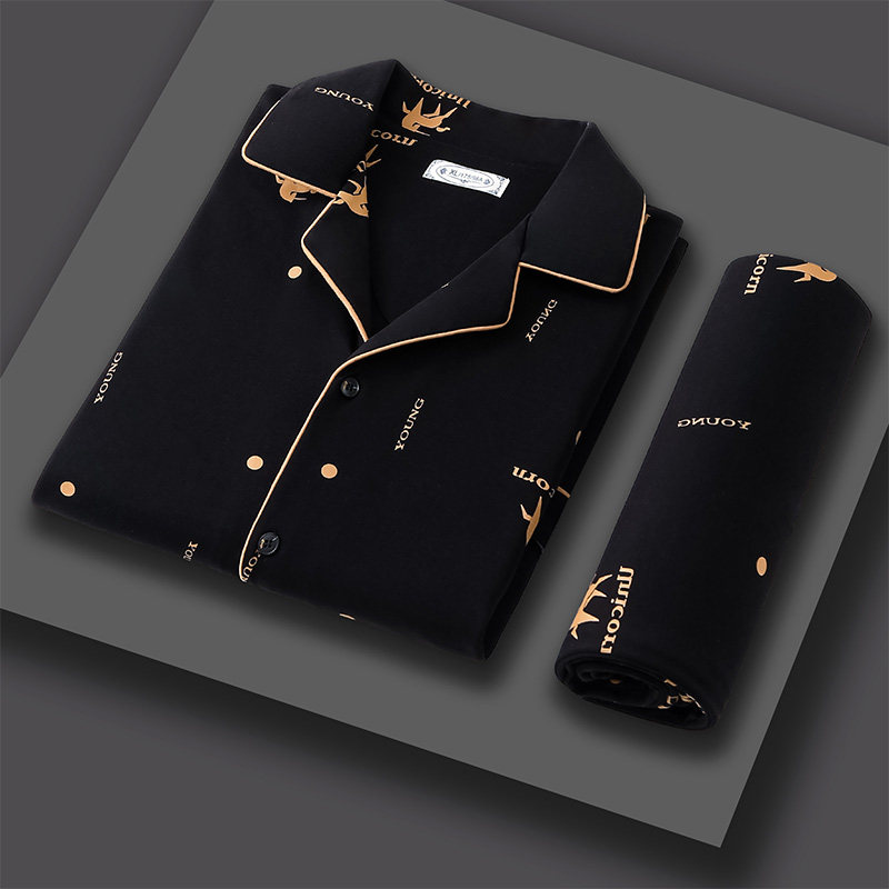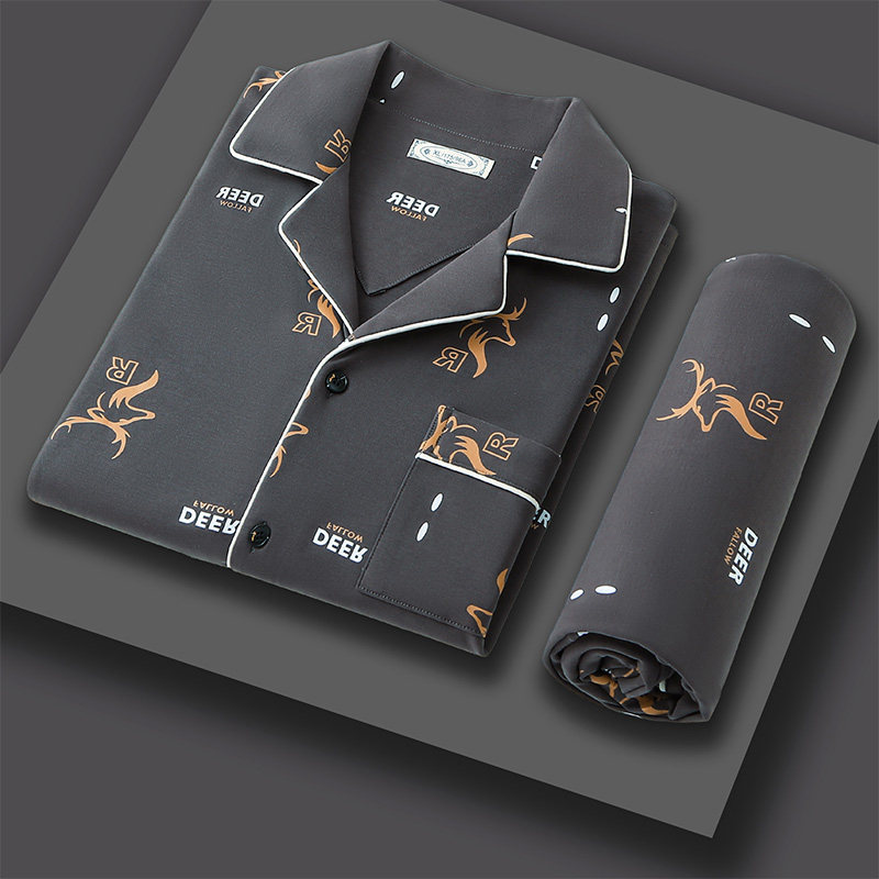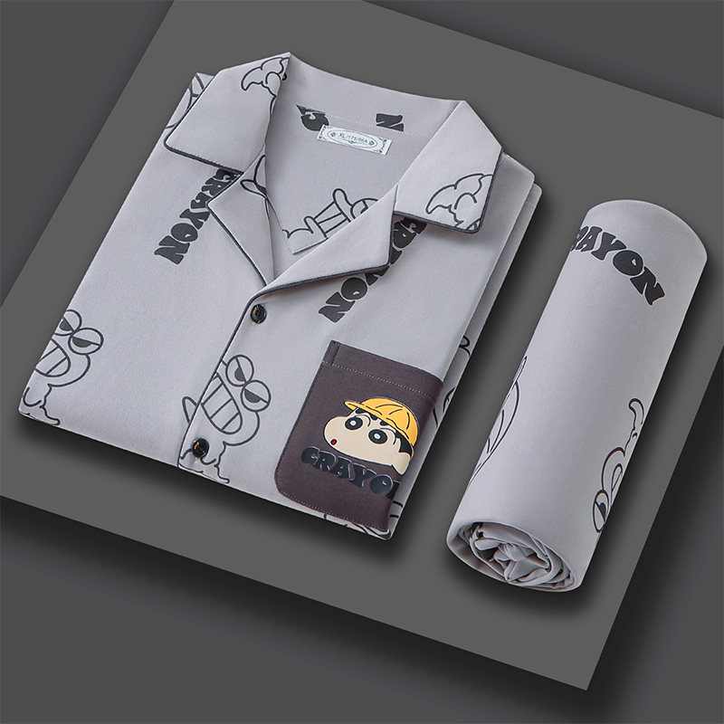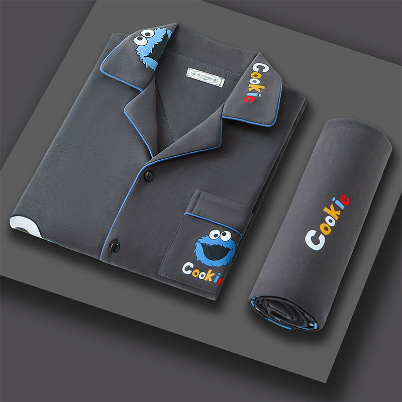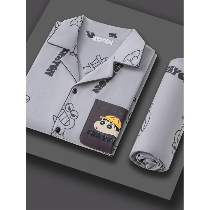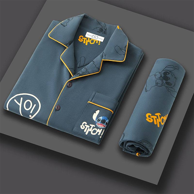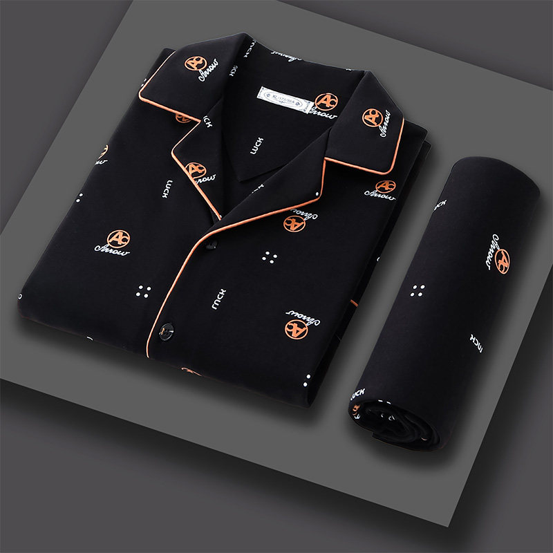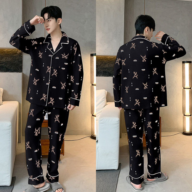 春秋季純棉卡通睡衣男士長袖加肥加大碼青年男款家居服套裝可外穿