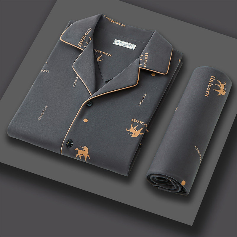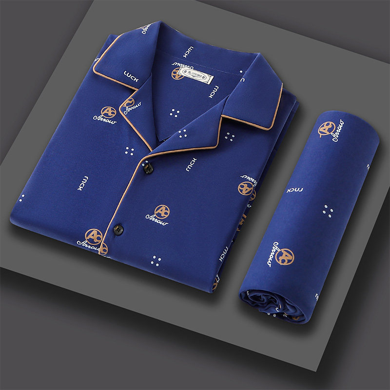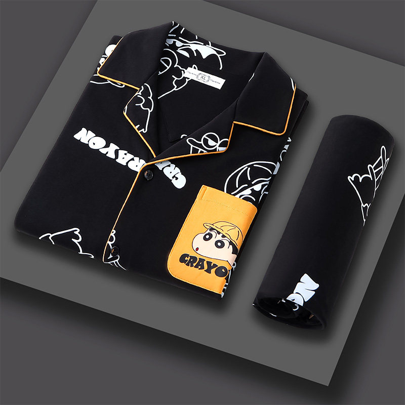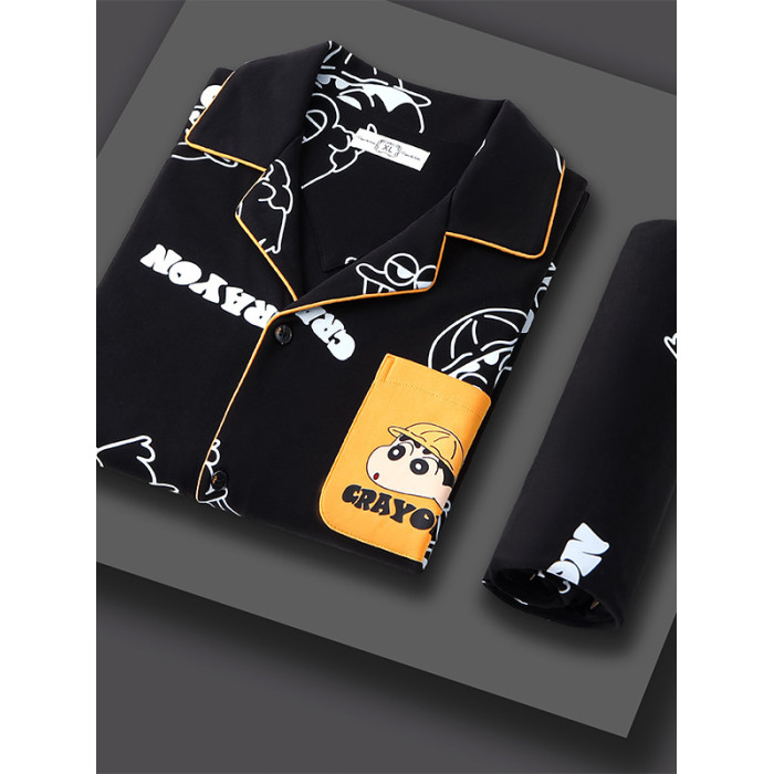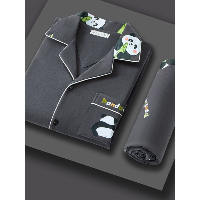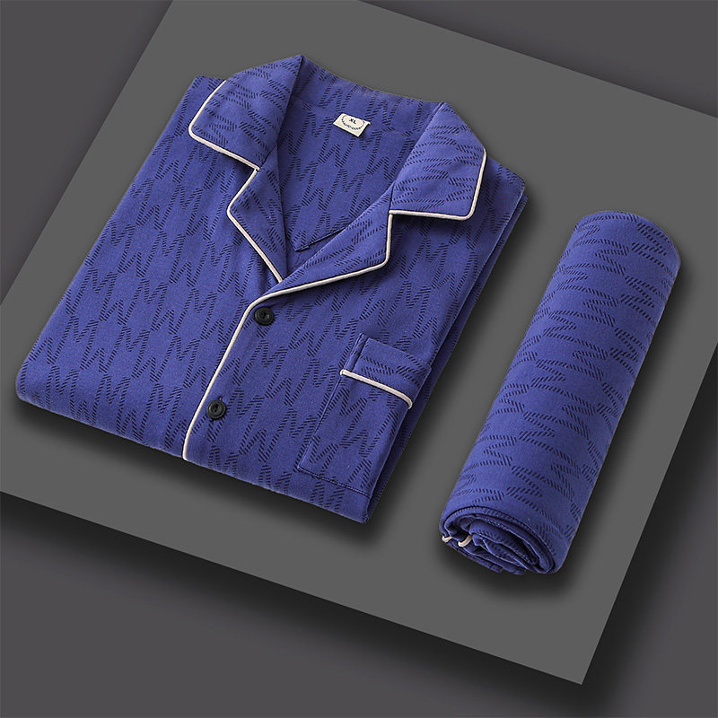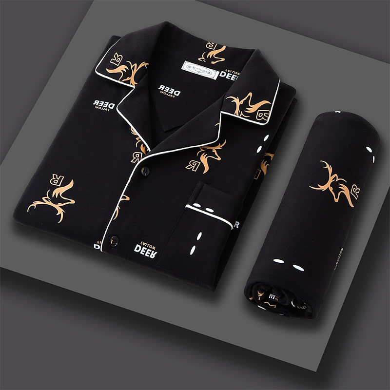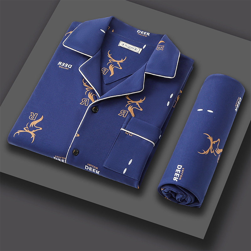 春秋季純棉卡通睡衣男士長袖加肥加大碼青年男款家居服套裝可外穿