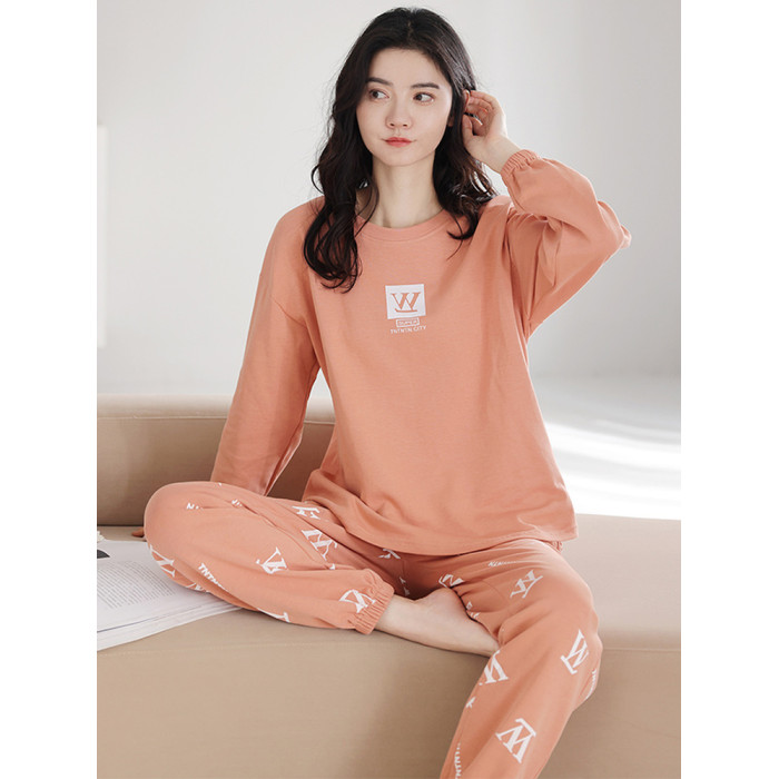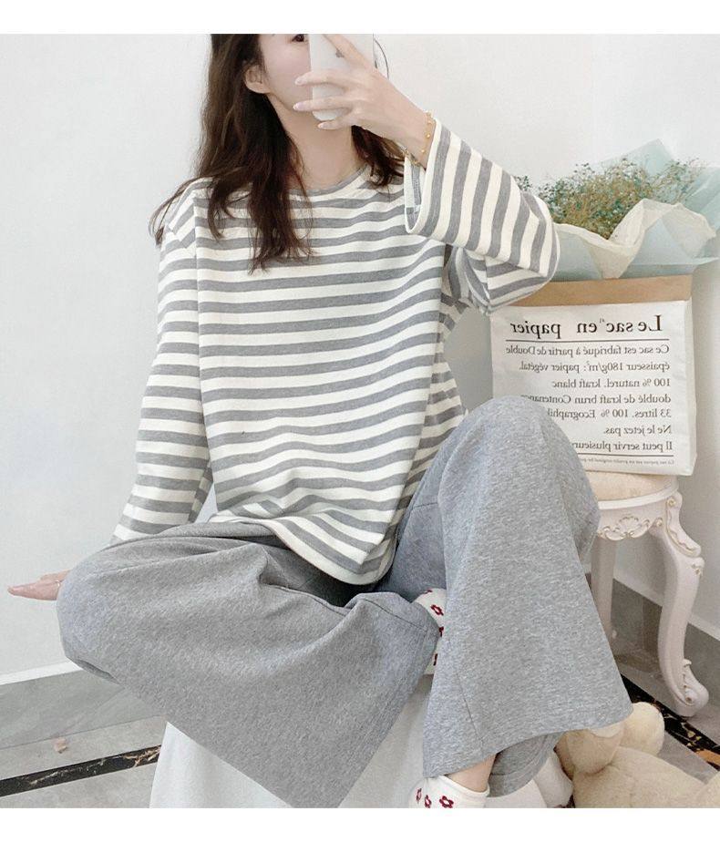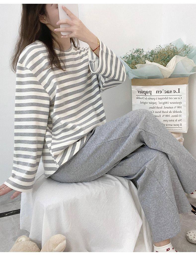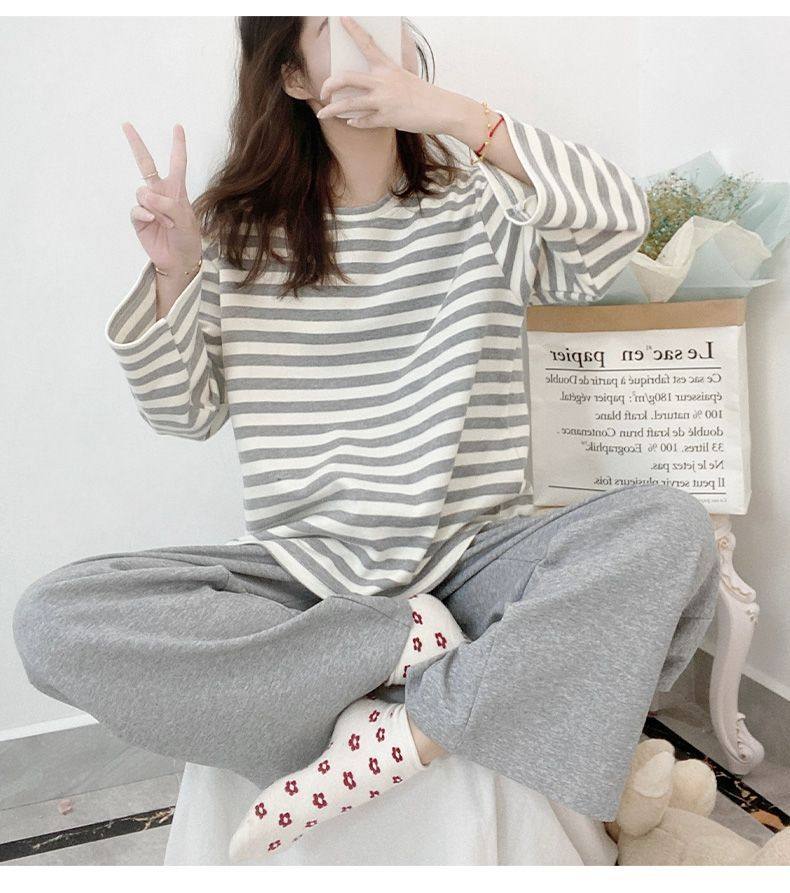 新款100%純棉睡衣女士春秋季長袖帶胸墊秋冬夏外穿全棉家居服套裝