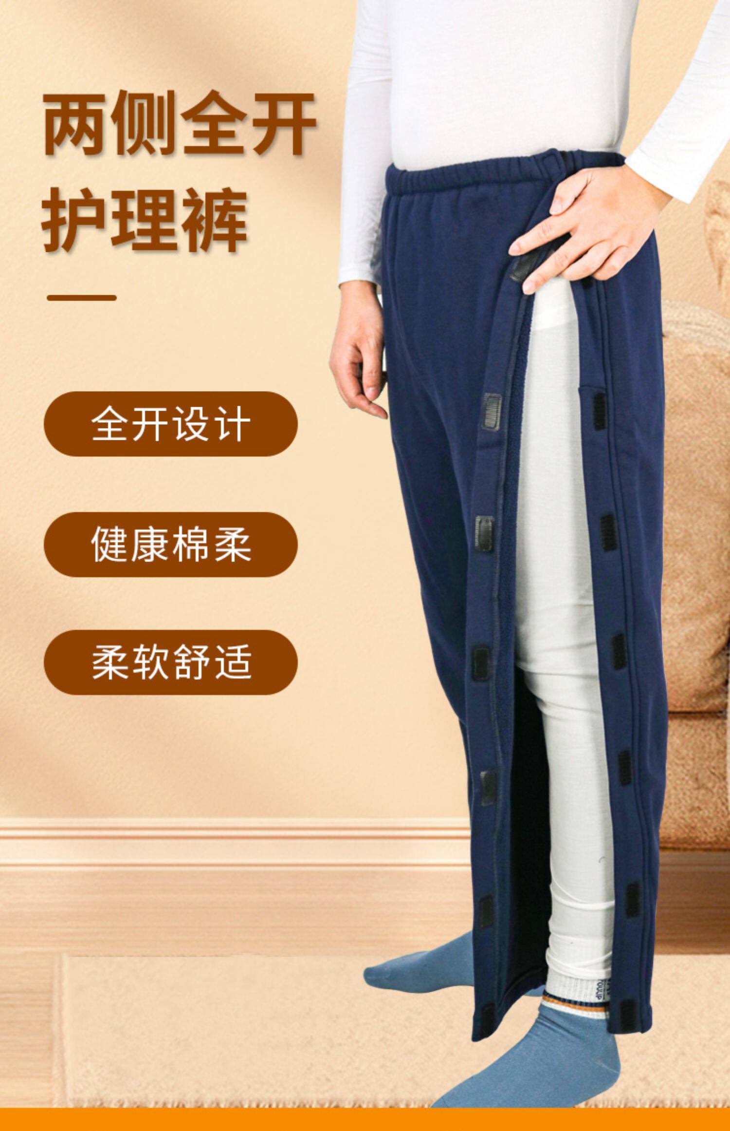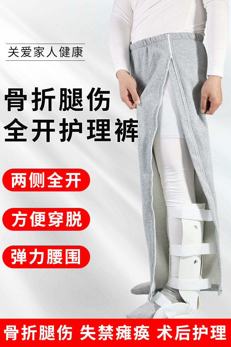 秋冬骨折病人開邊褲兩側開護理褲病號康復衣服臥床腿傷腳傷專用褲