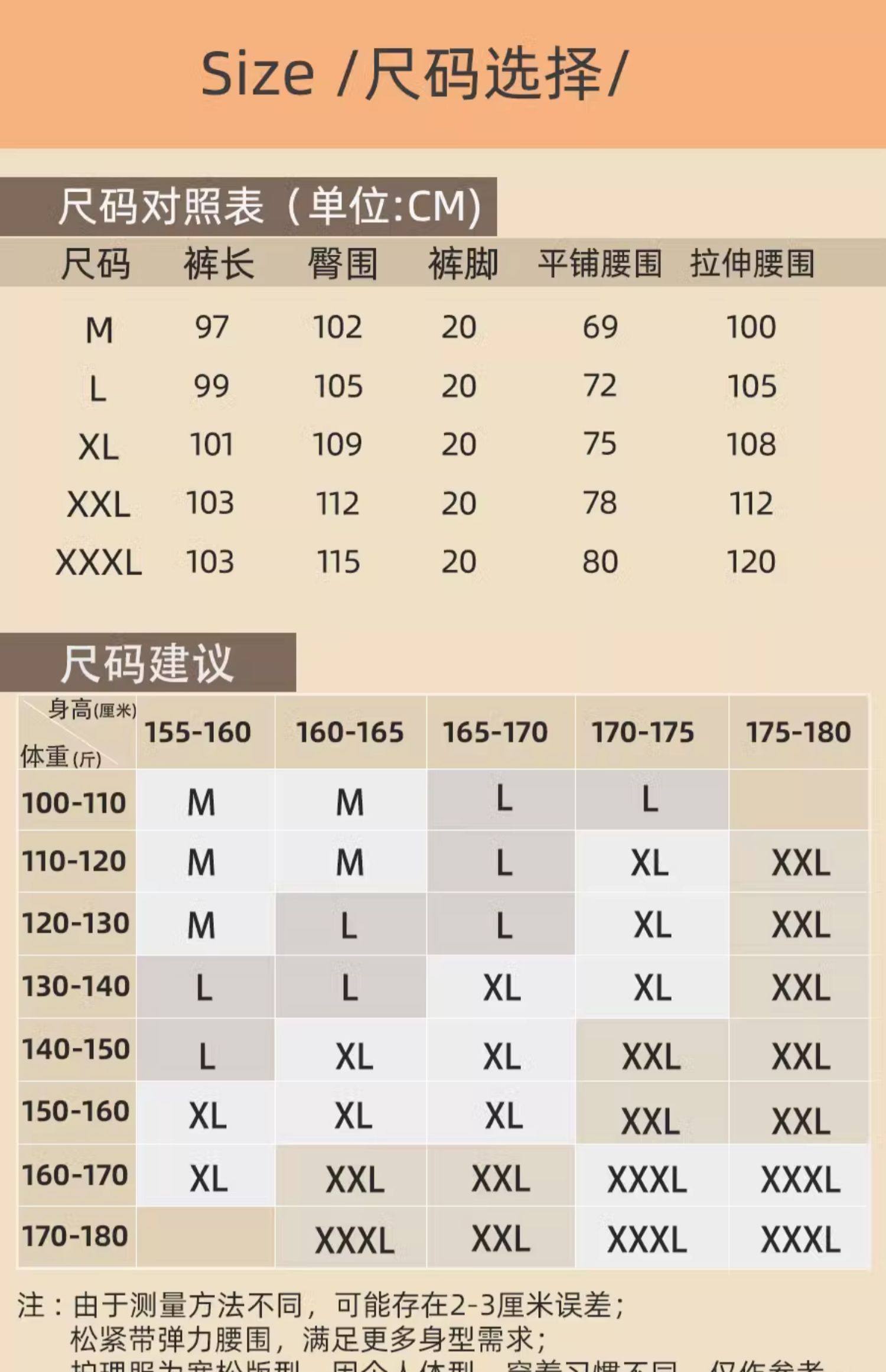 | 褲長 | 長褲 |