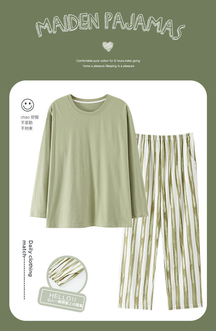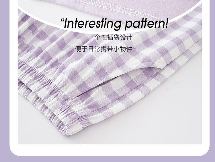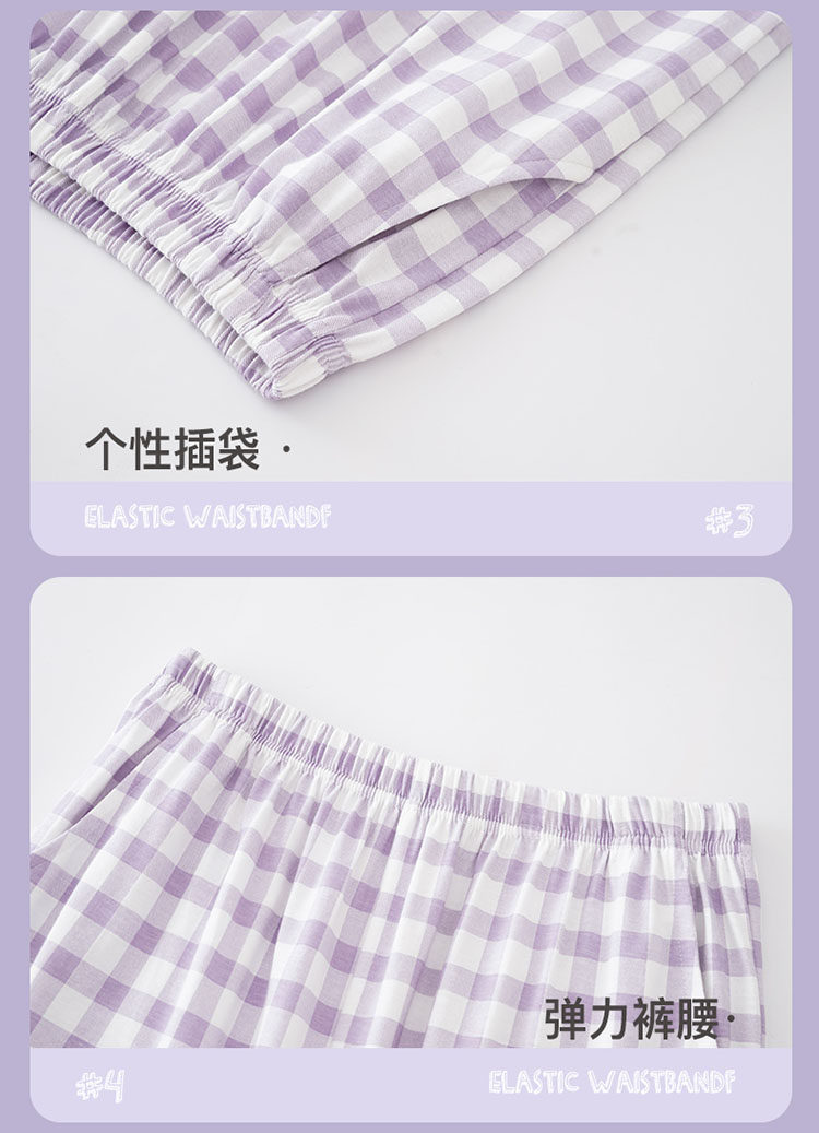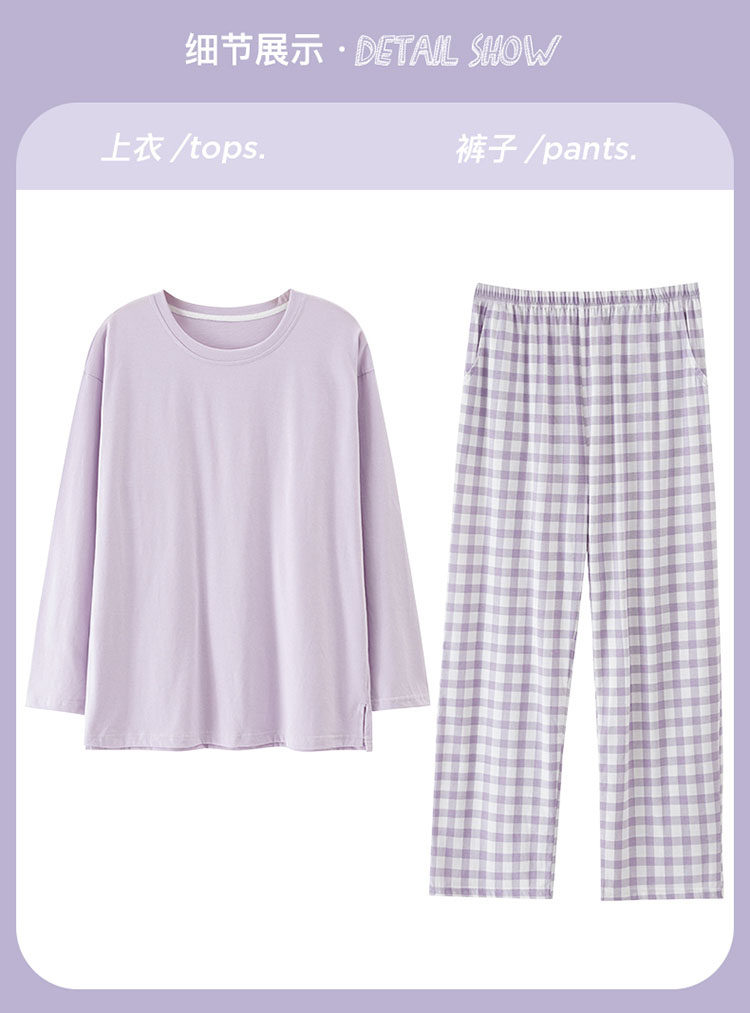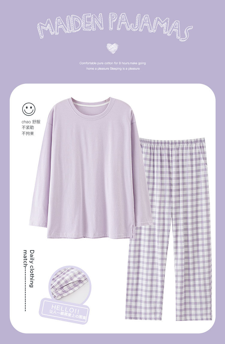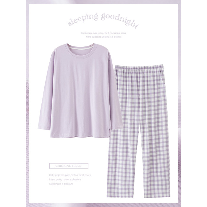純棉睡衣女款春秋2025年新款圓領長袖長褲大碼套頭格子家居服套裝