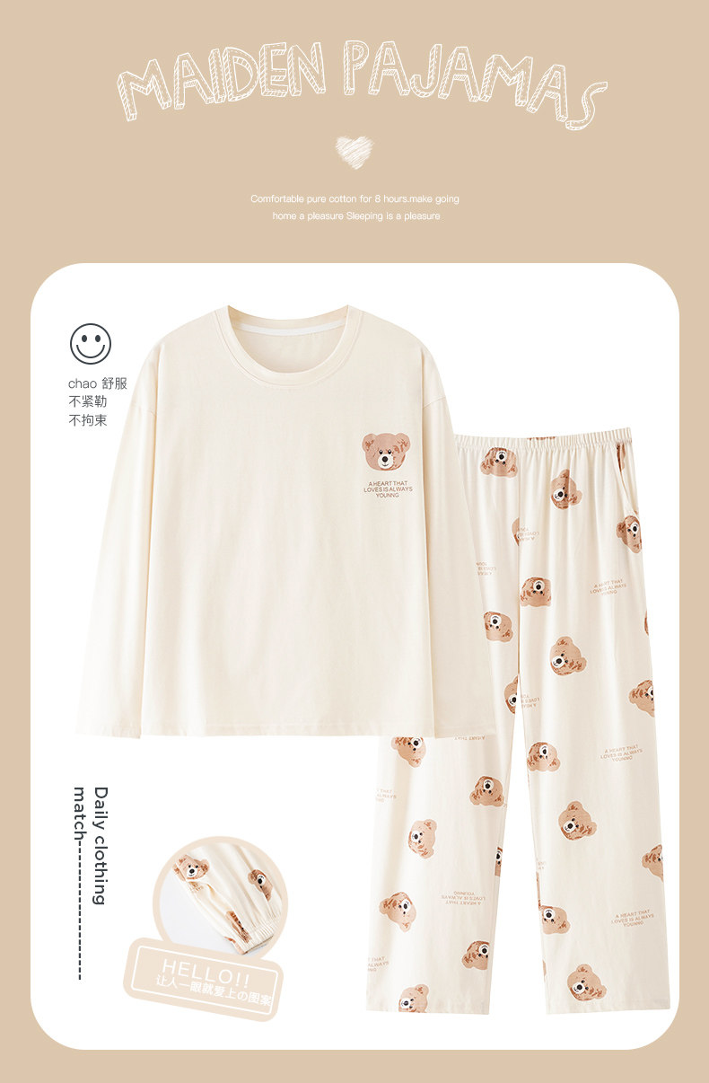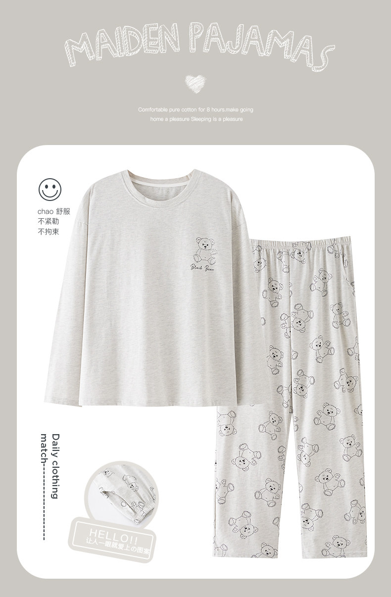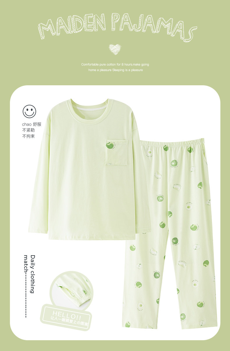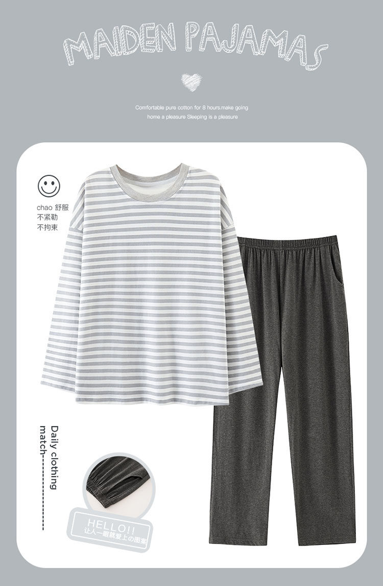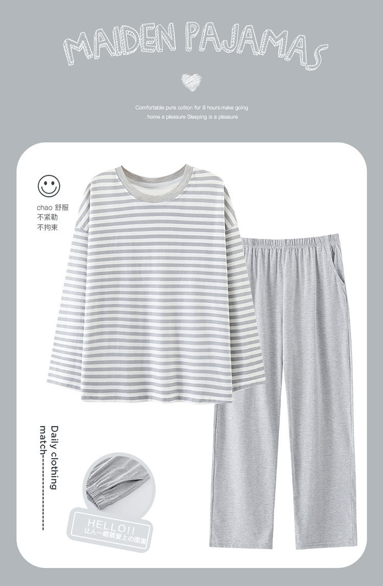 純棉睡衣女款春秋2025年新款圓領長袖長褲大碼套頭格子家居服套裝