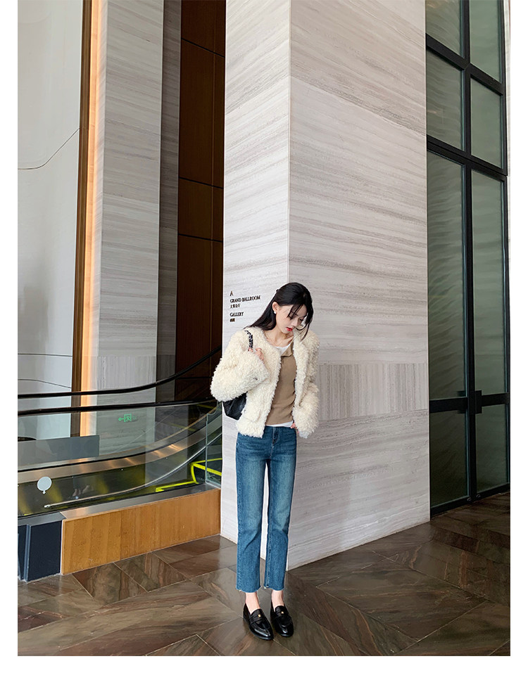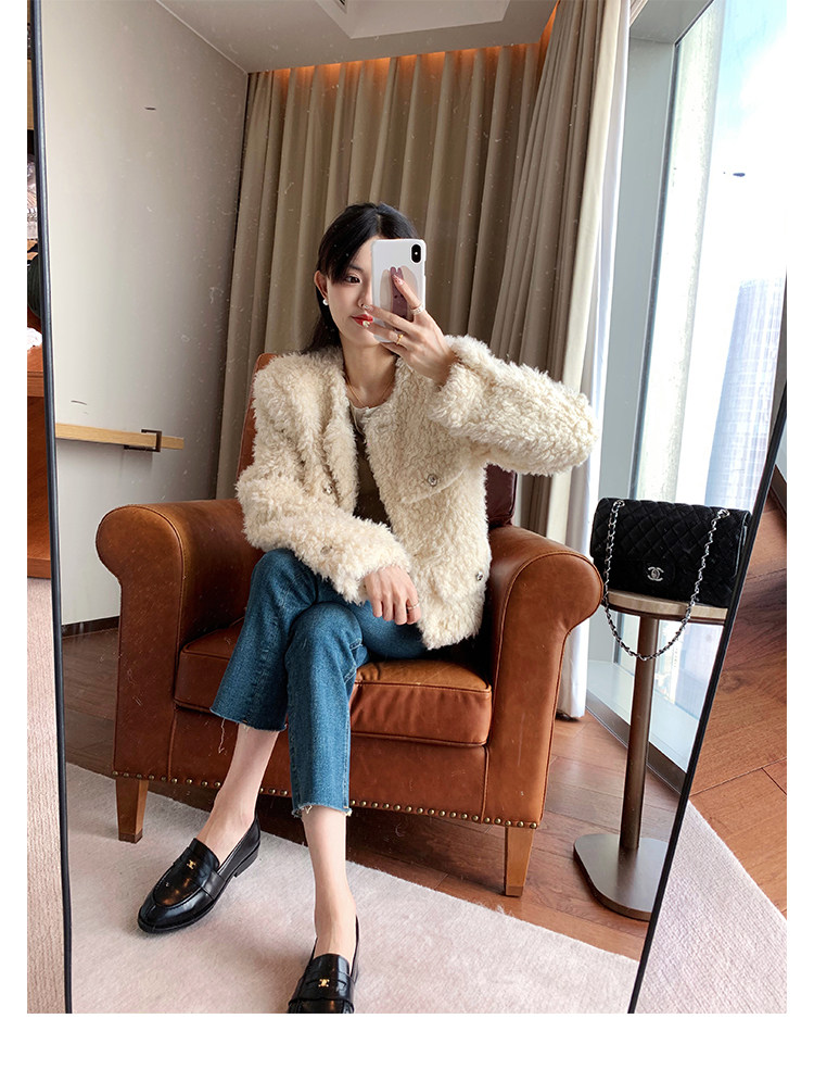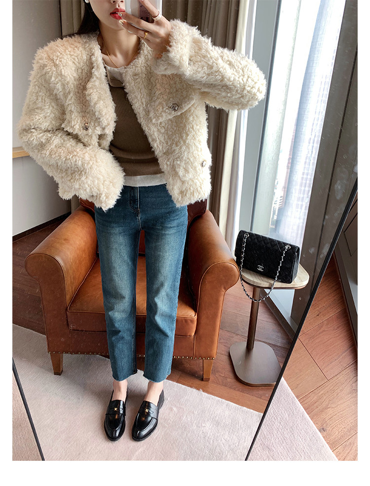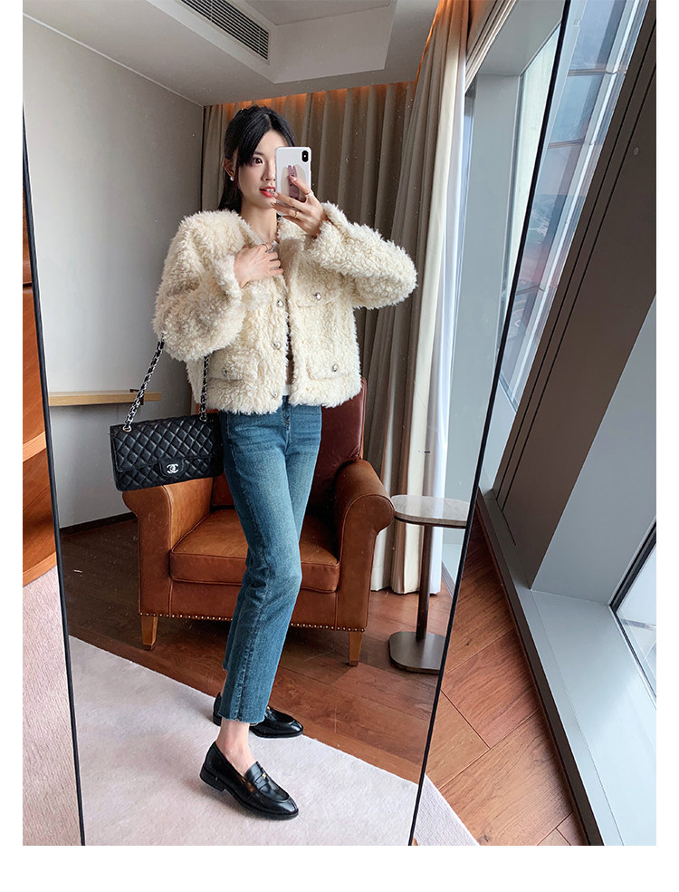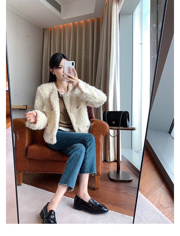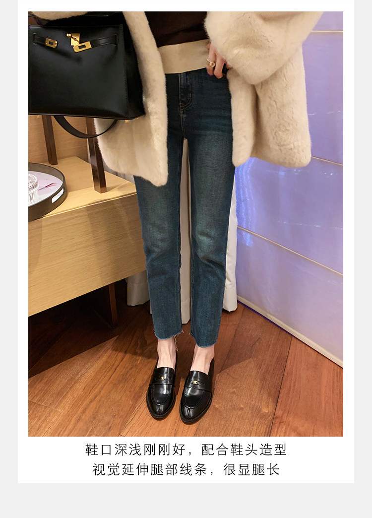 全牛皮~復古風小金釦真皮樂福鞋女圓頭平底單鞋一腳蹬粗跟小皮鞋