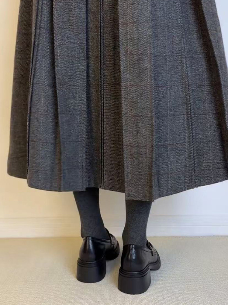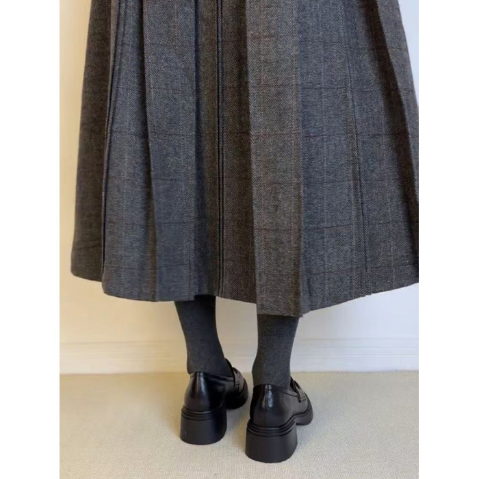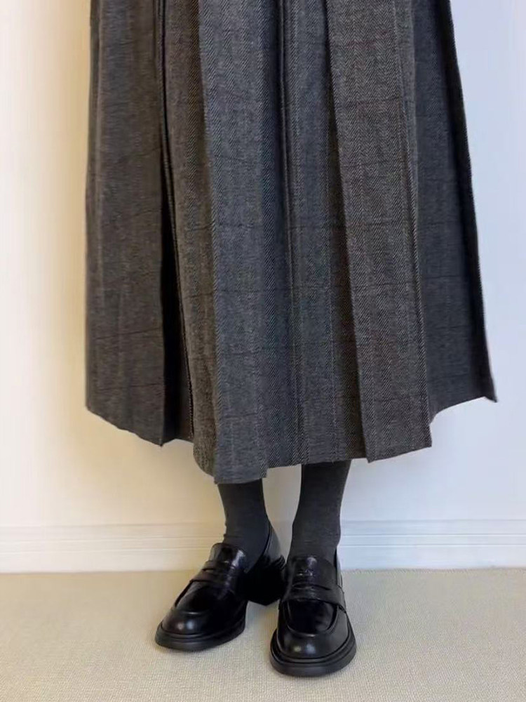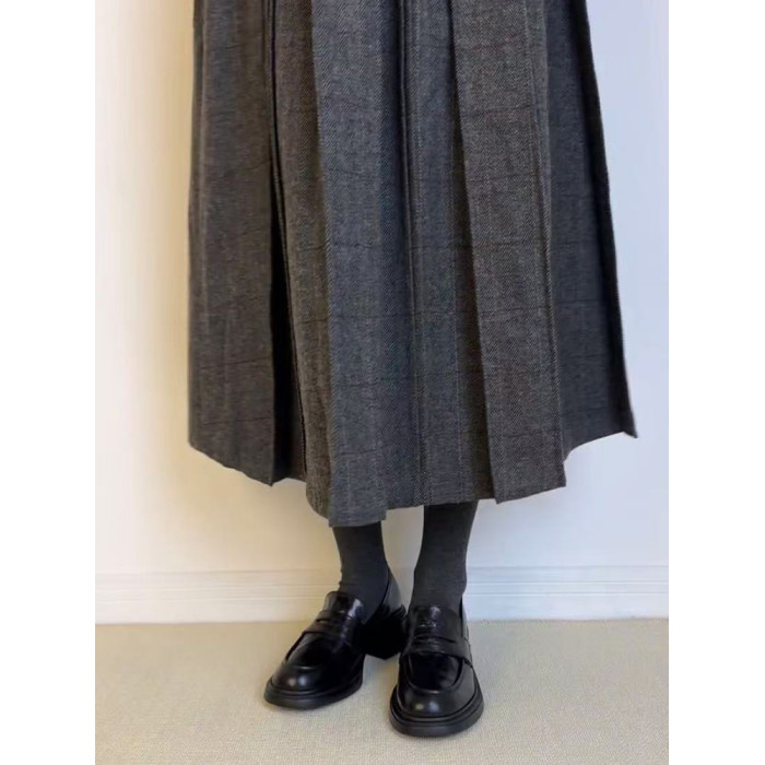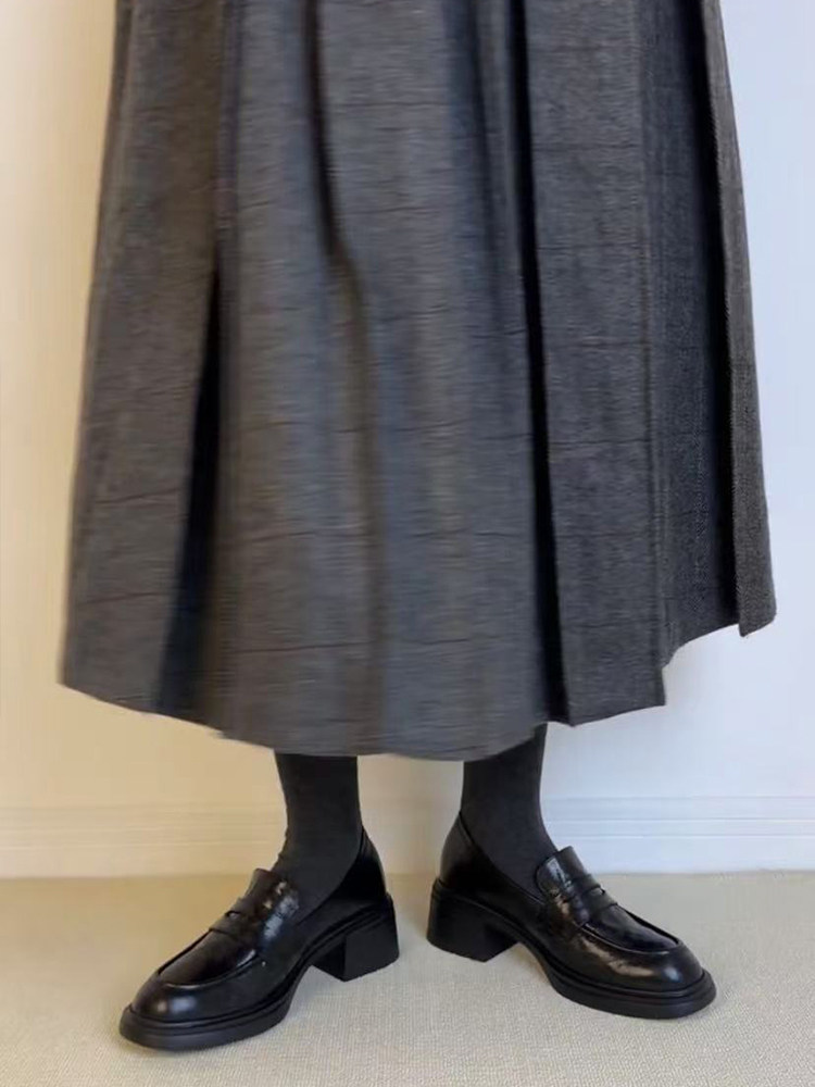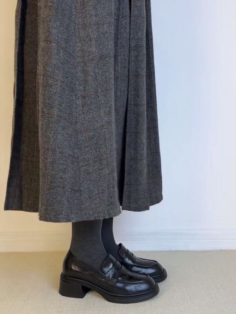 羊皮~復古通勤真皮圓頭厚底粗跟樂福鞋女黑色氣質小皮鞋中跟單鞋