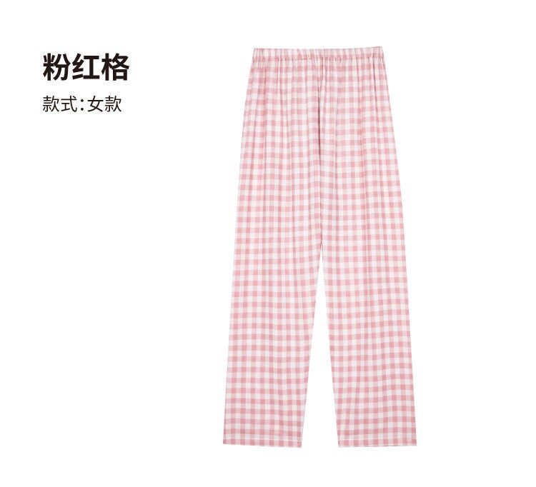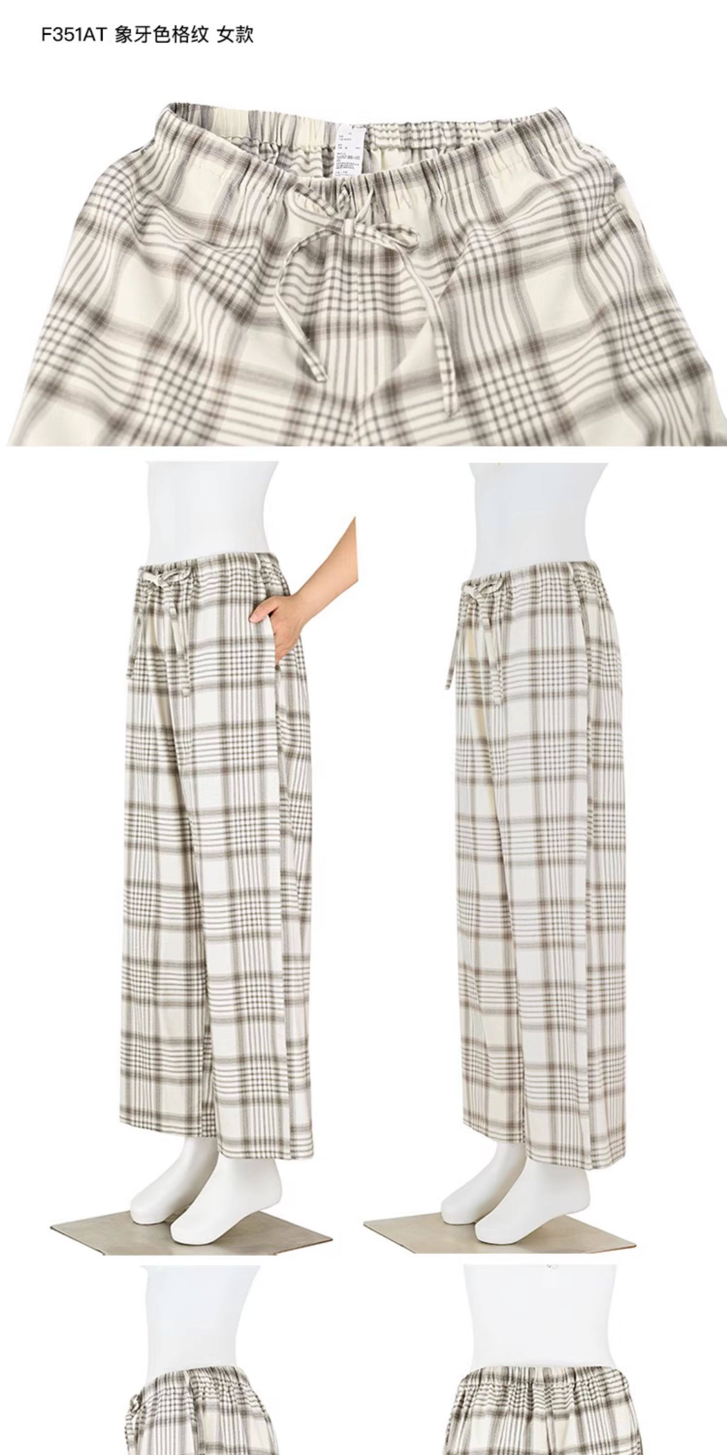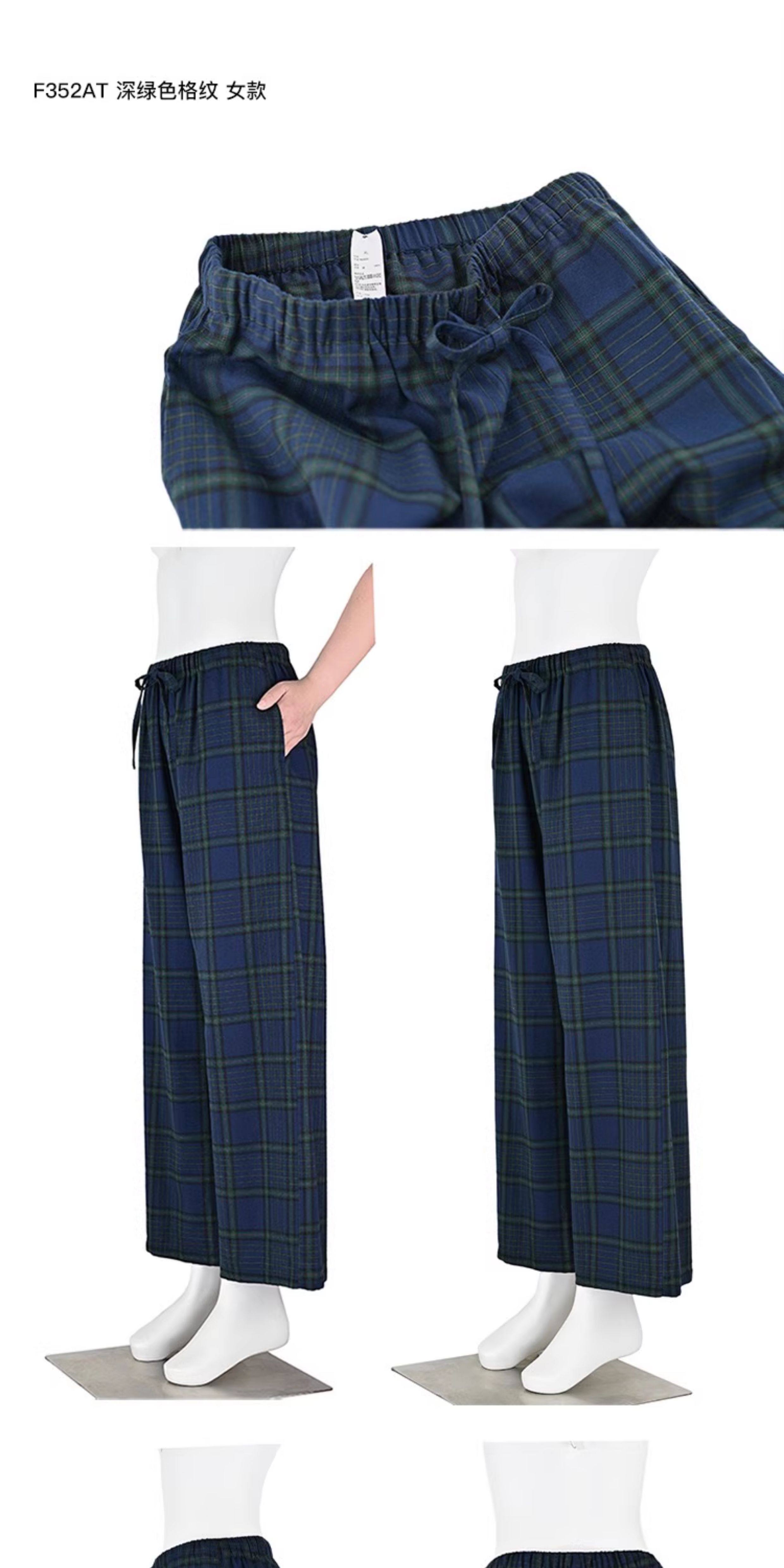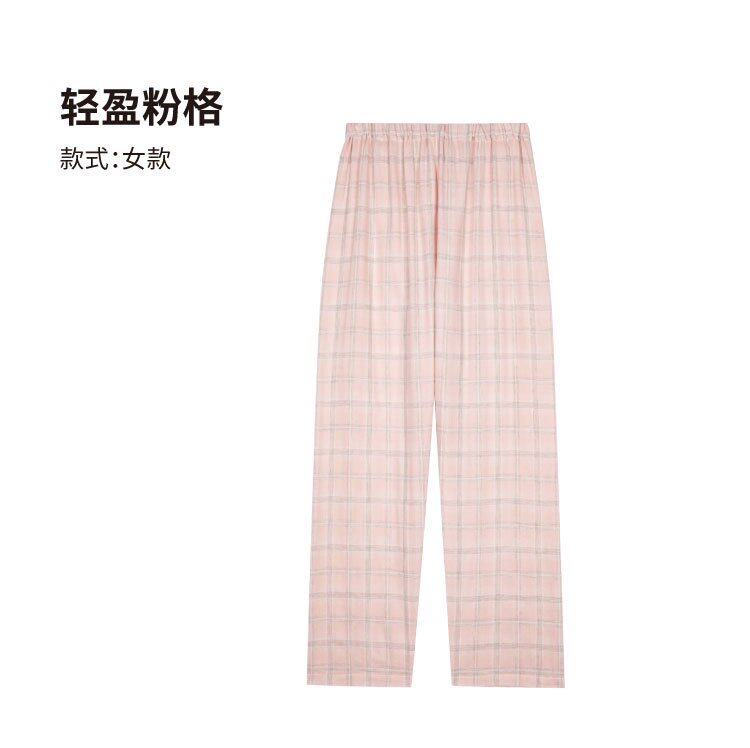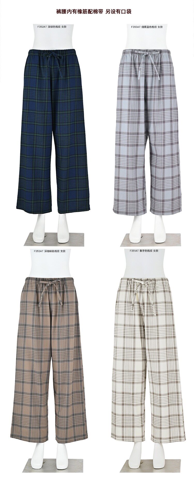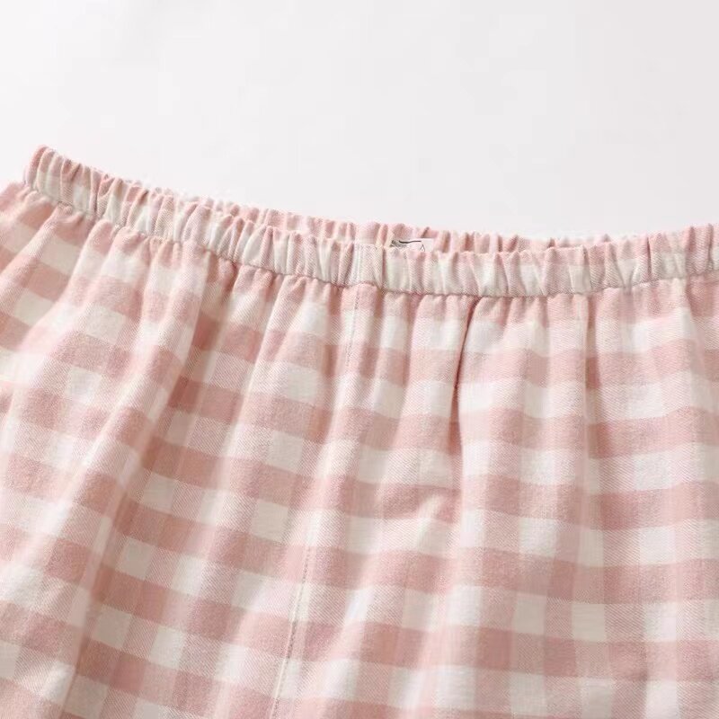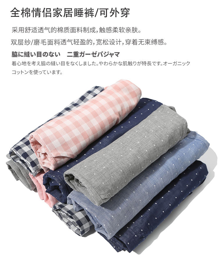日式專櫃全棉睡褲女雙層紗純棉家居褲男格子法蘭絨長褲春夏秋冬款