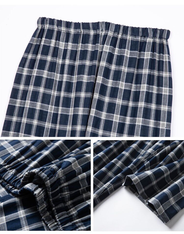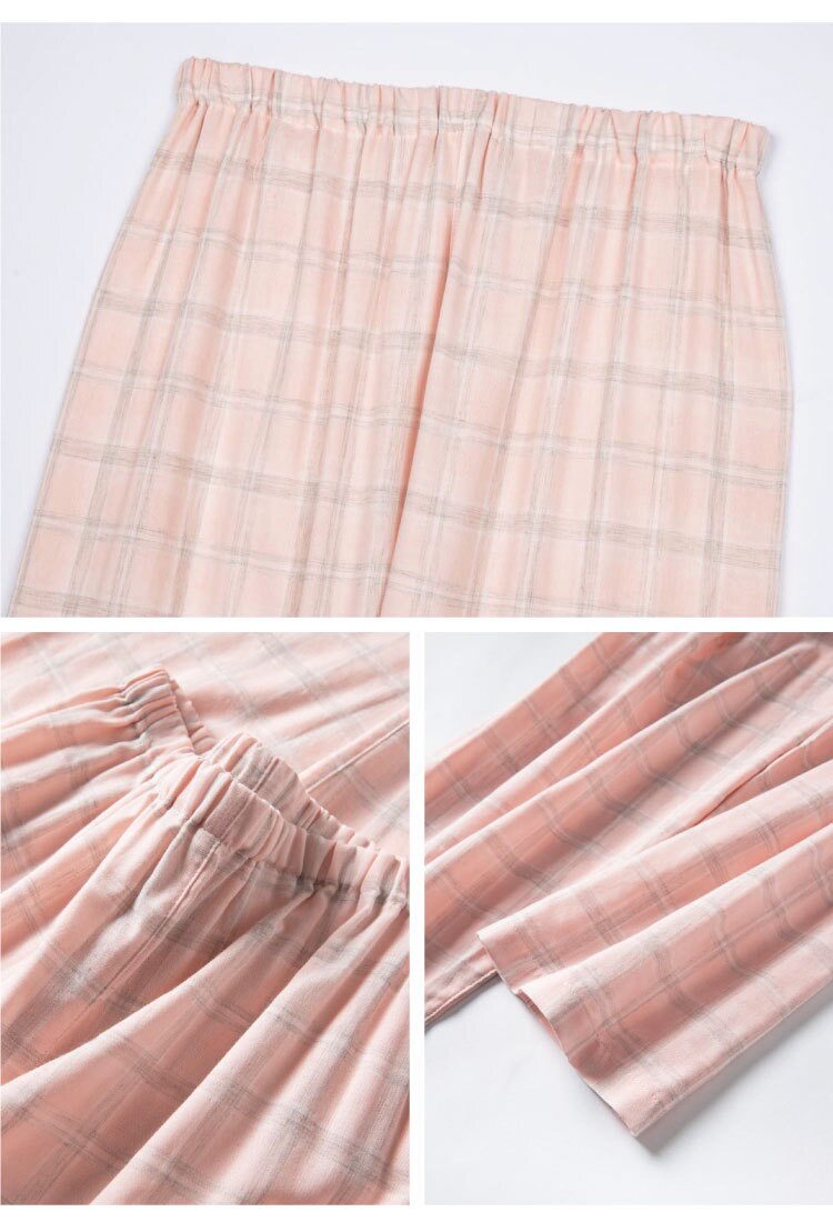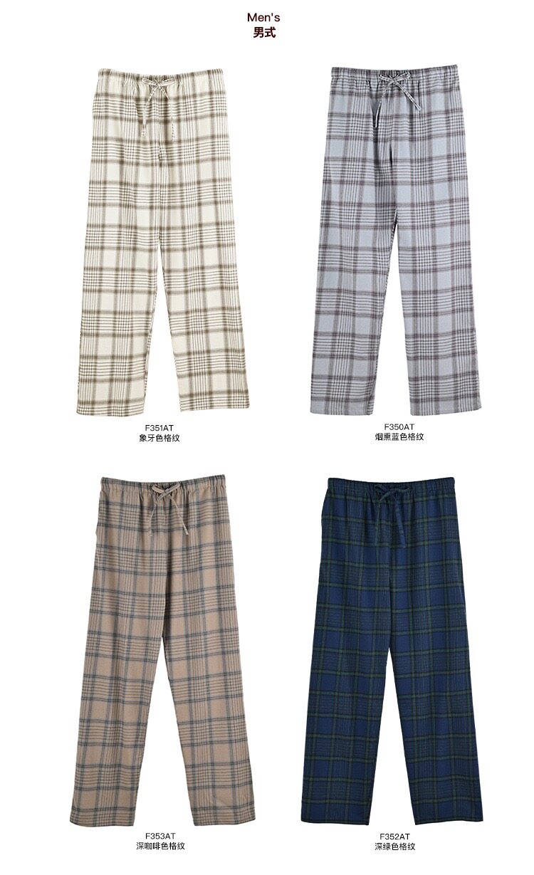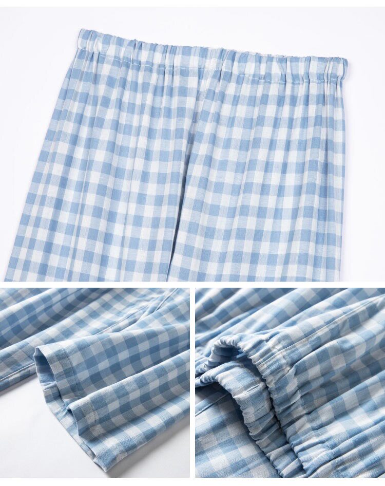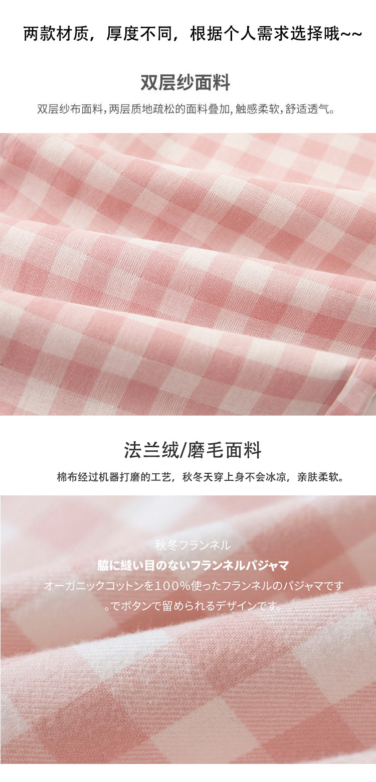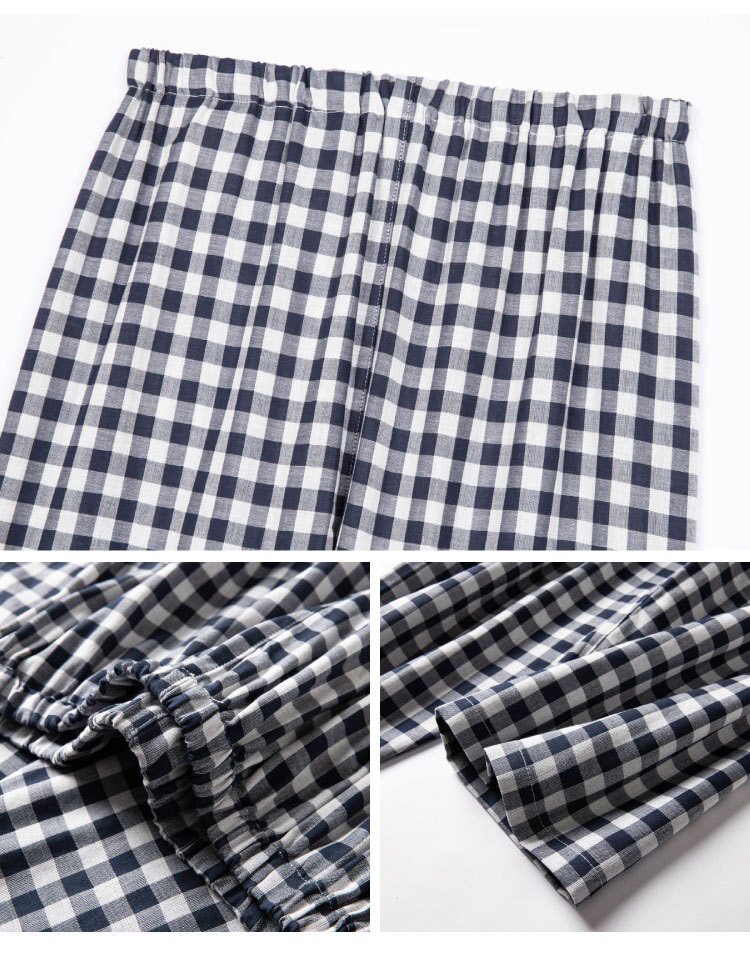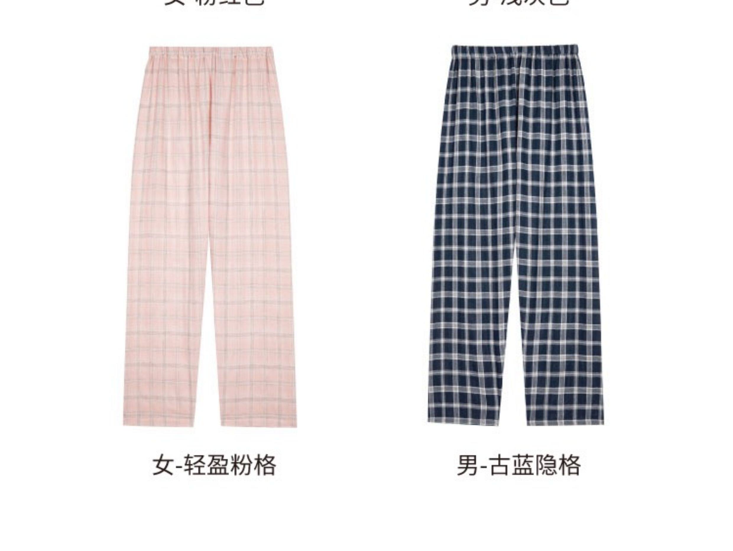 日式專櫃全棉睡褲女雙層紗純棉家居褲男格子法蘭絨長褲春夏秋冬款