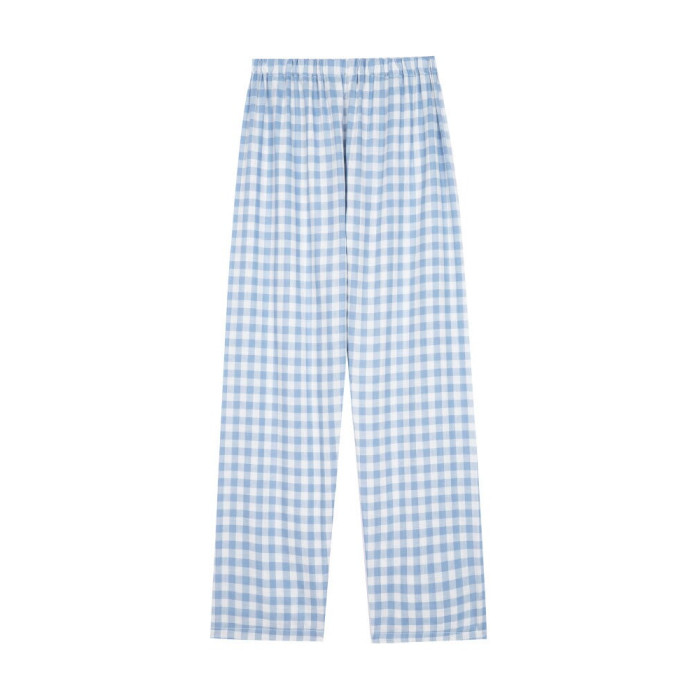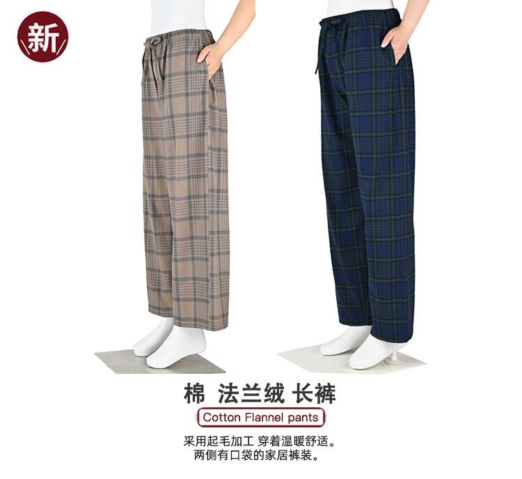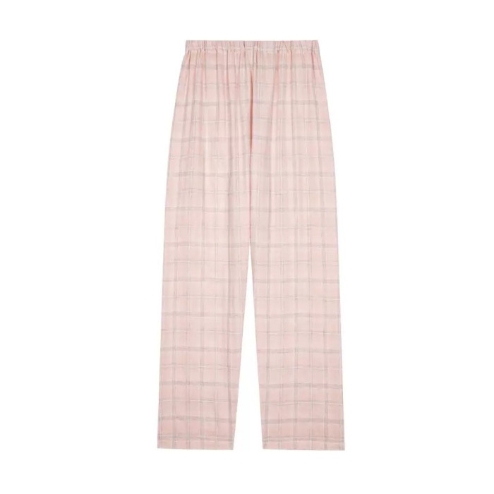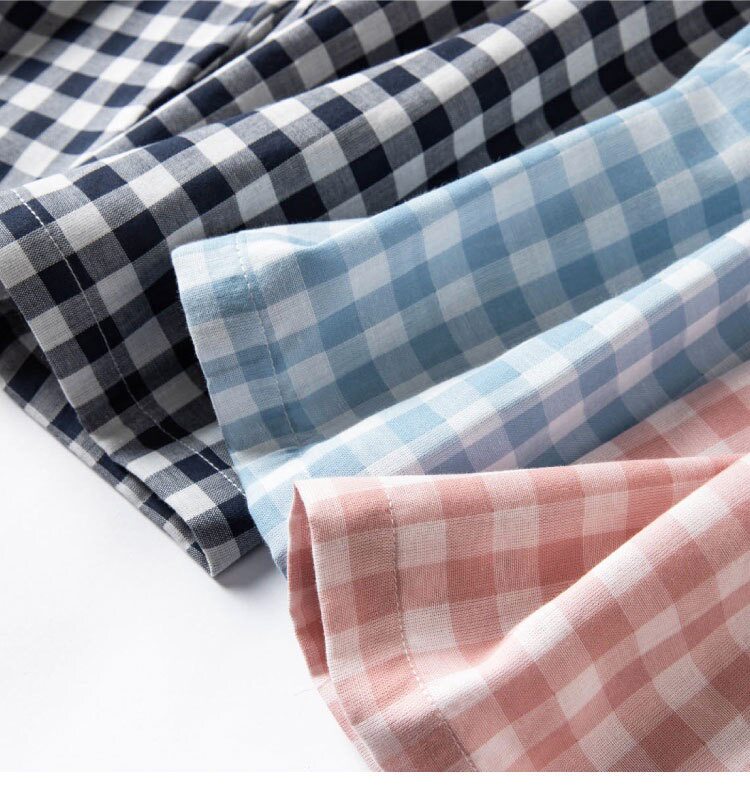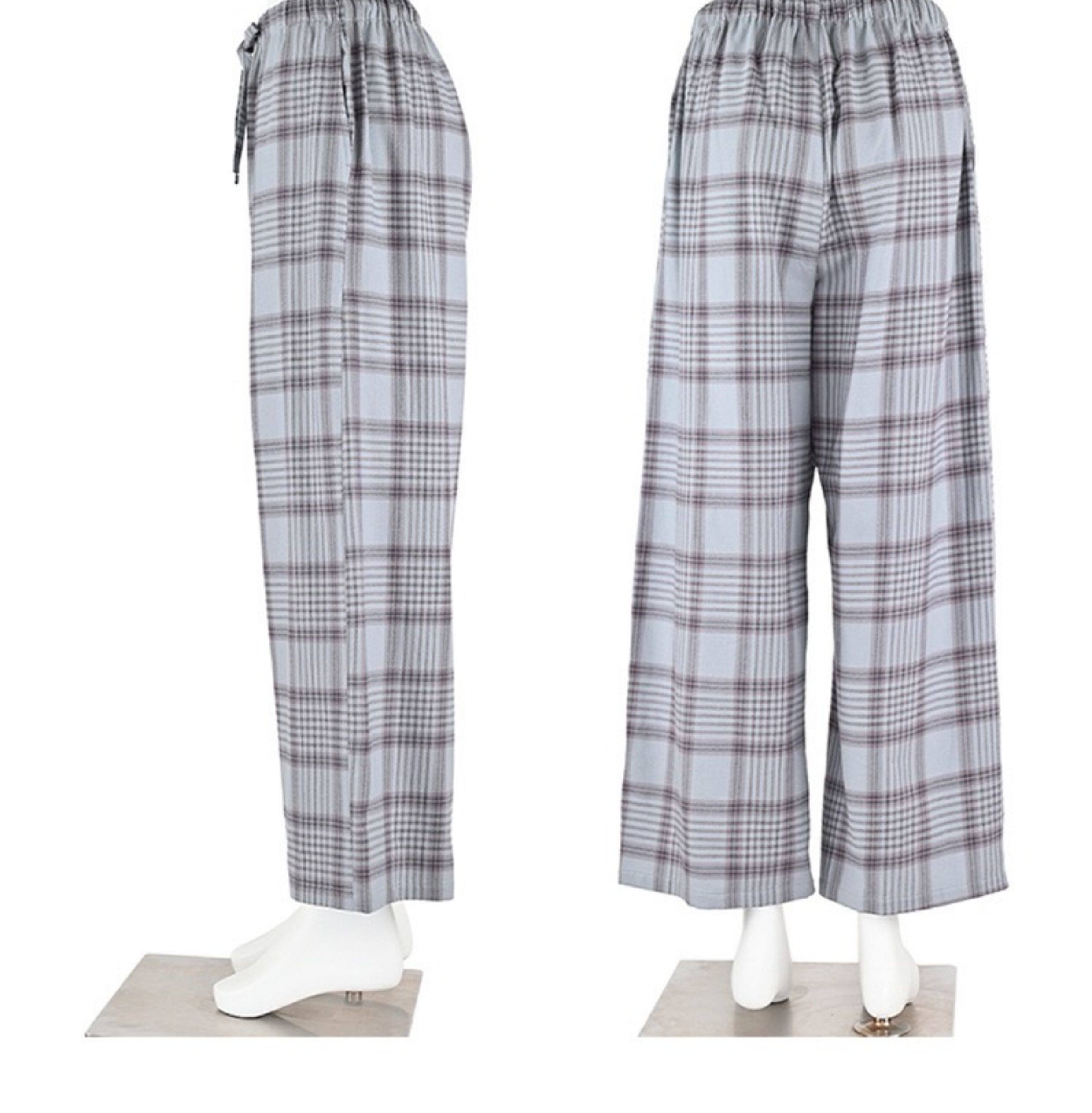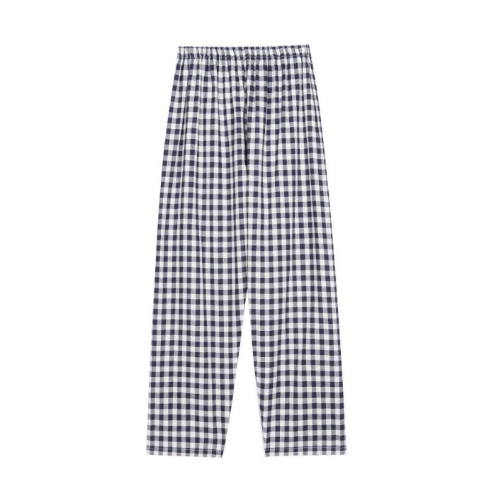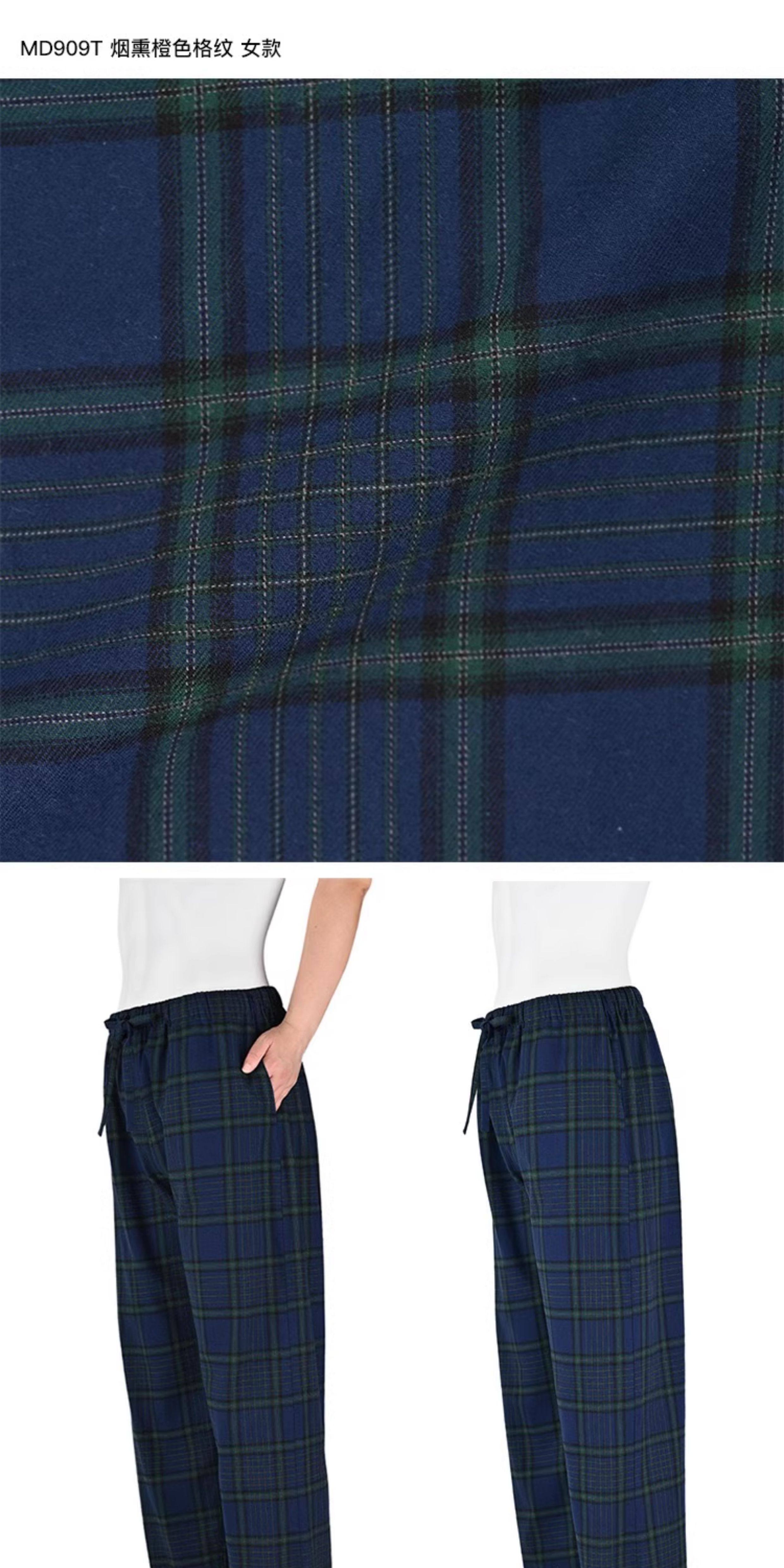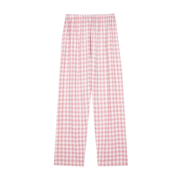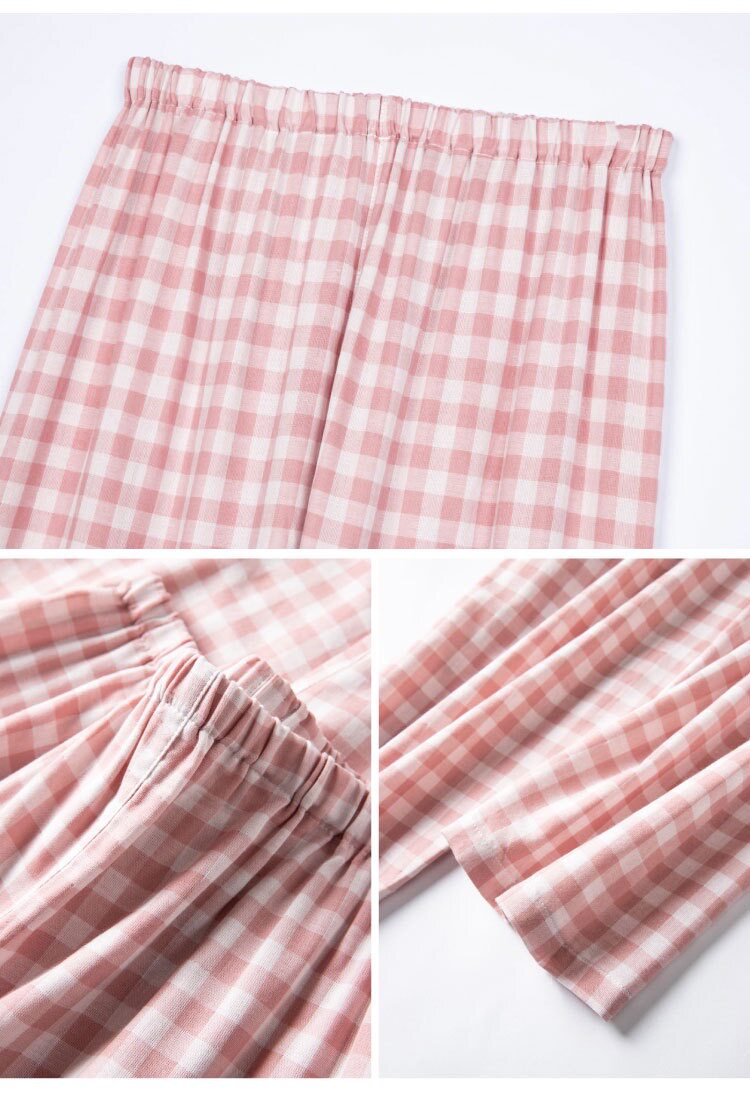 日式專櫃全棉睡褲女雙層紗純棉家居褲男格子法蘭絨長褲春夏秋冬款