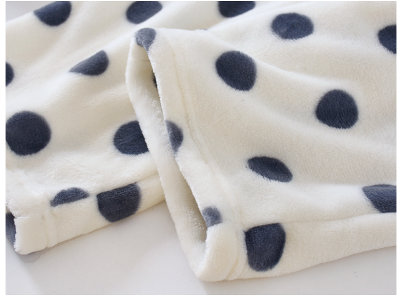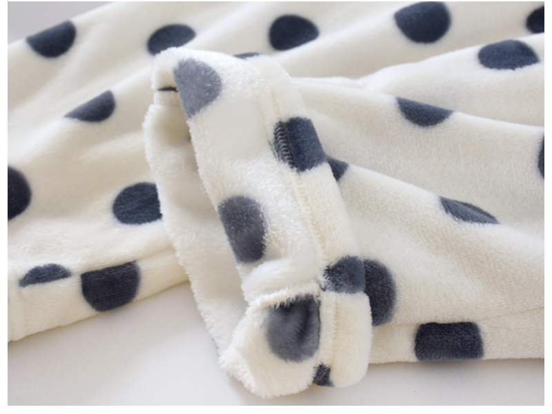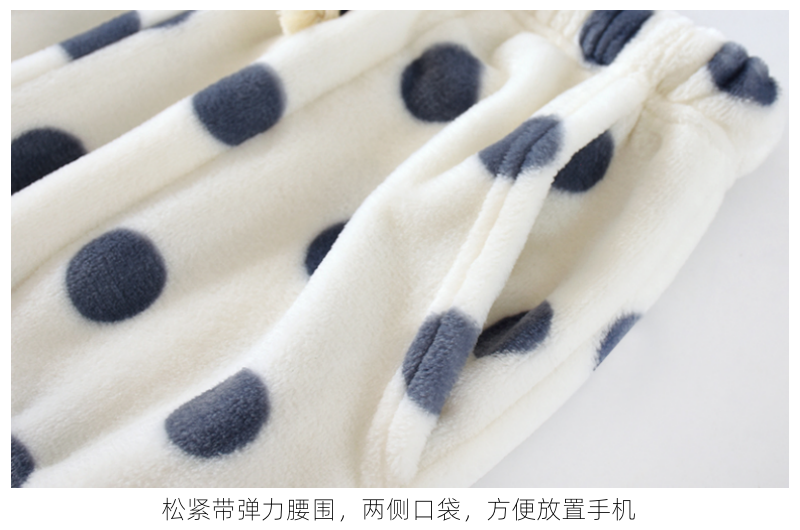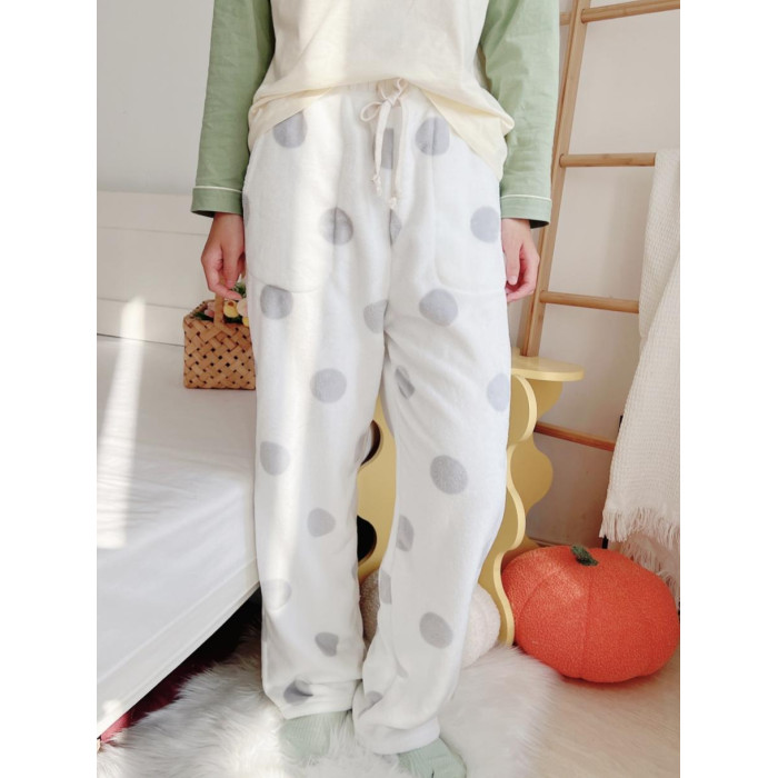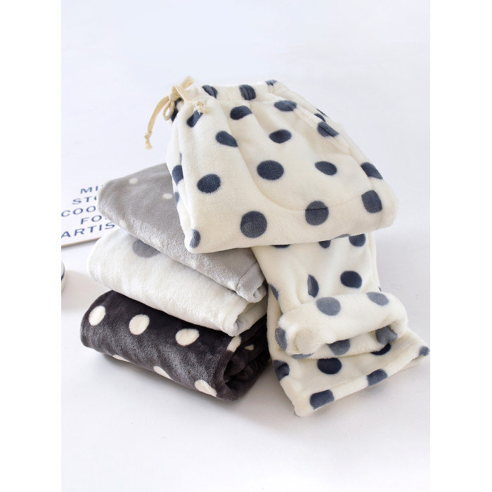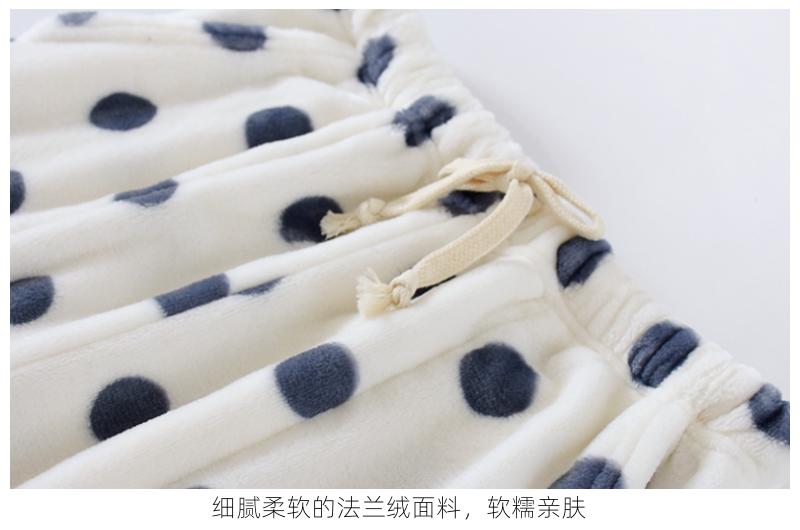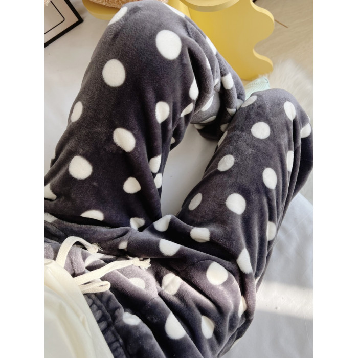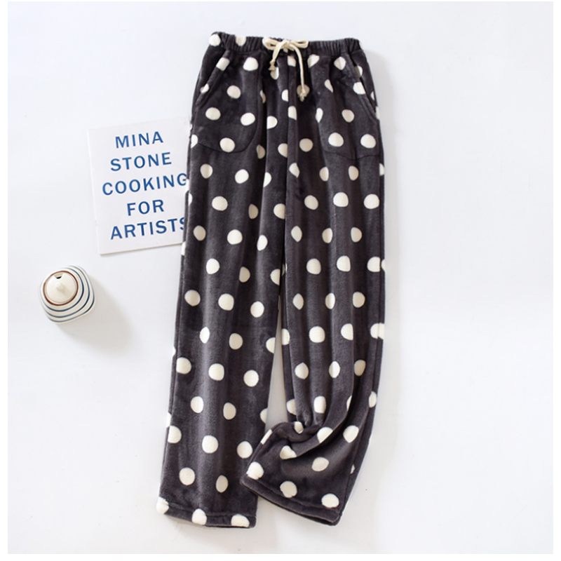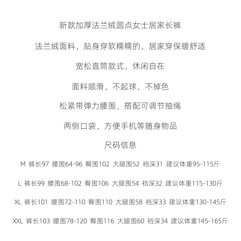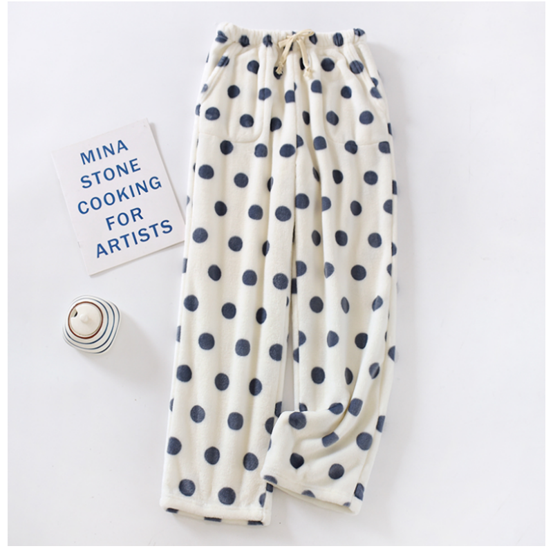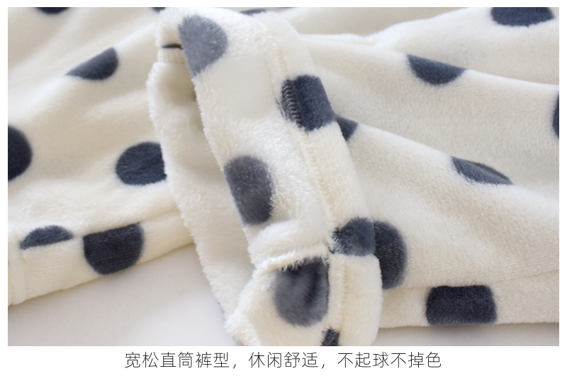 加厚法蘭絨睡褲女長褲印花圓點加絨保暖寬鬆直筒平口珊瑚絨家居褲