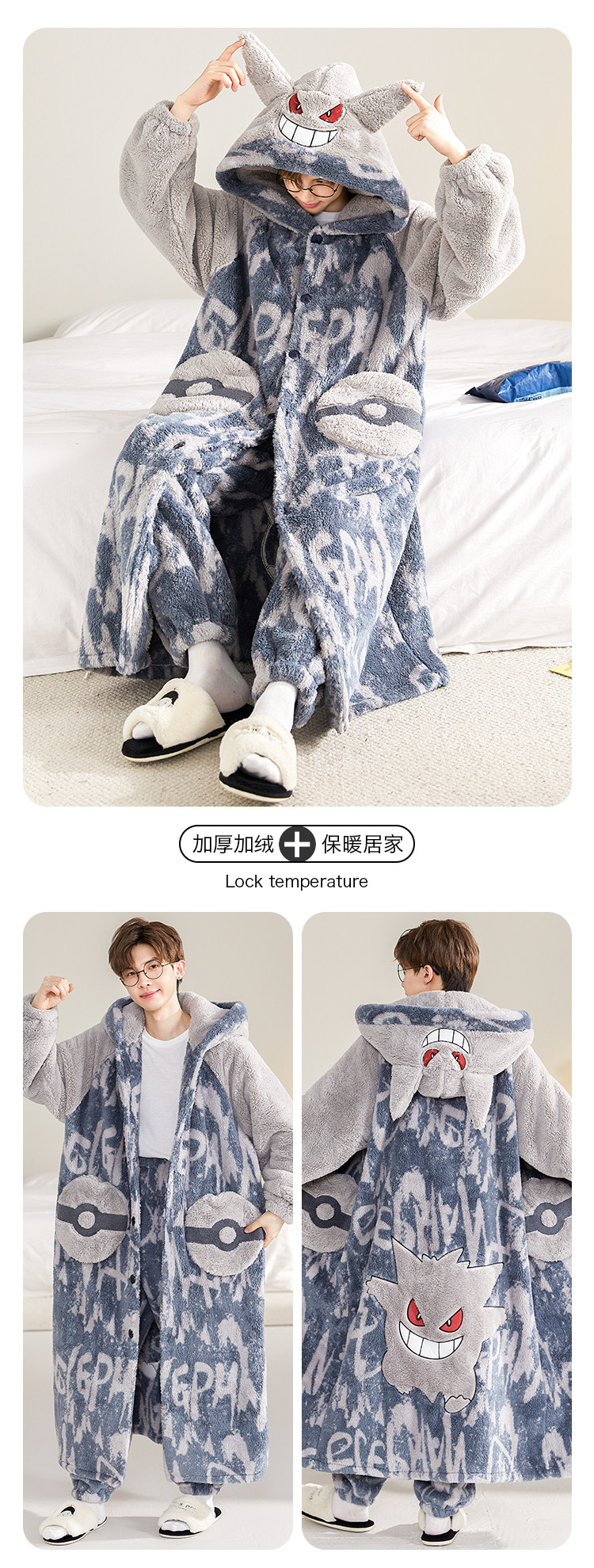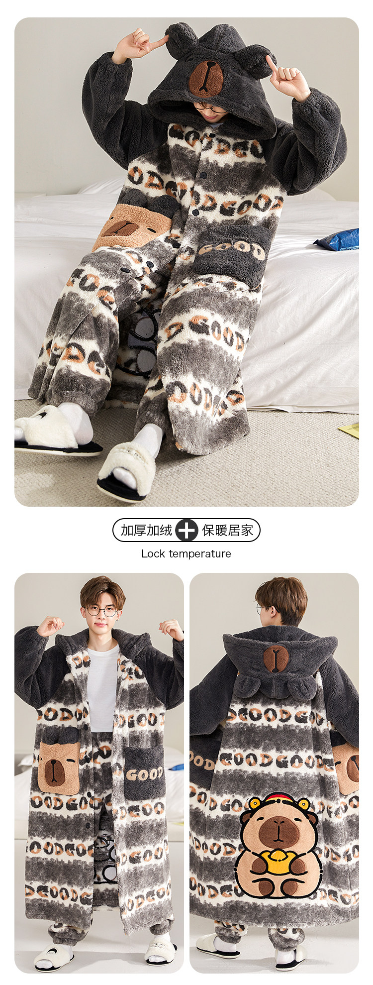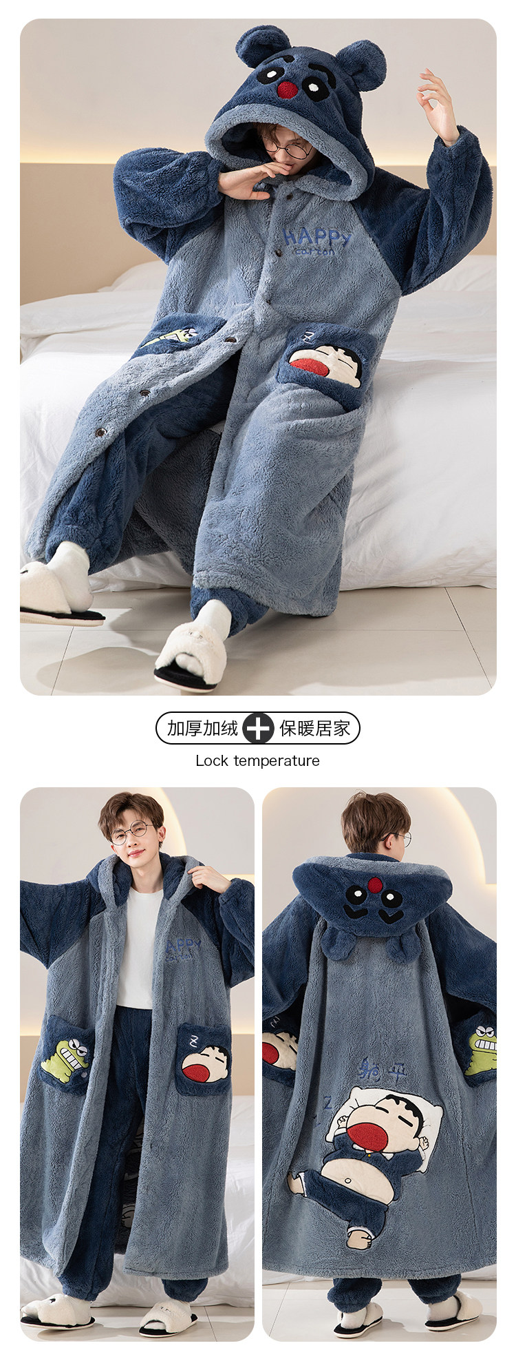 秋冬男士珊瑚絨睡衣青少年初中學生加厚冬天睡袍帶褲子大碼家居服