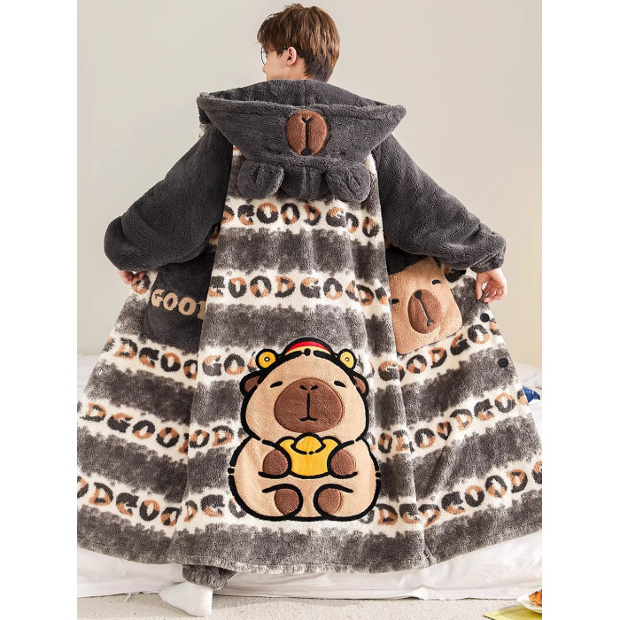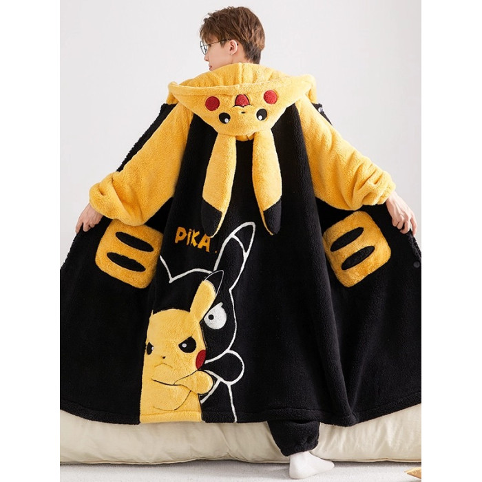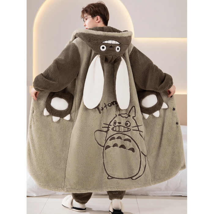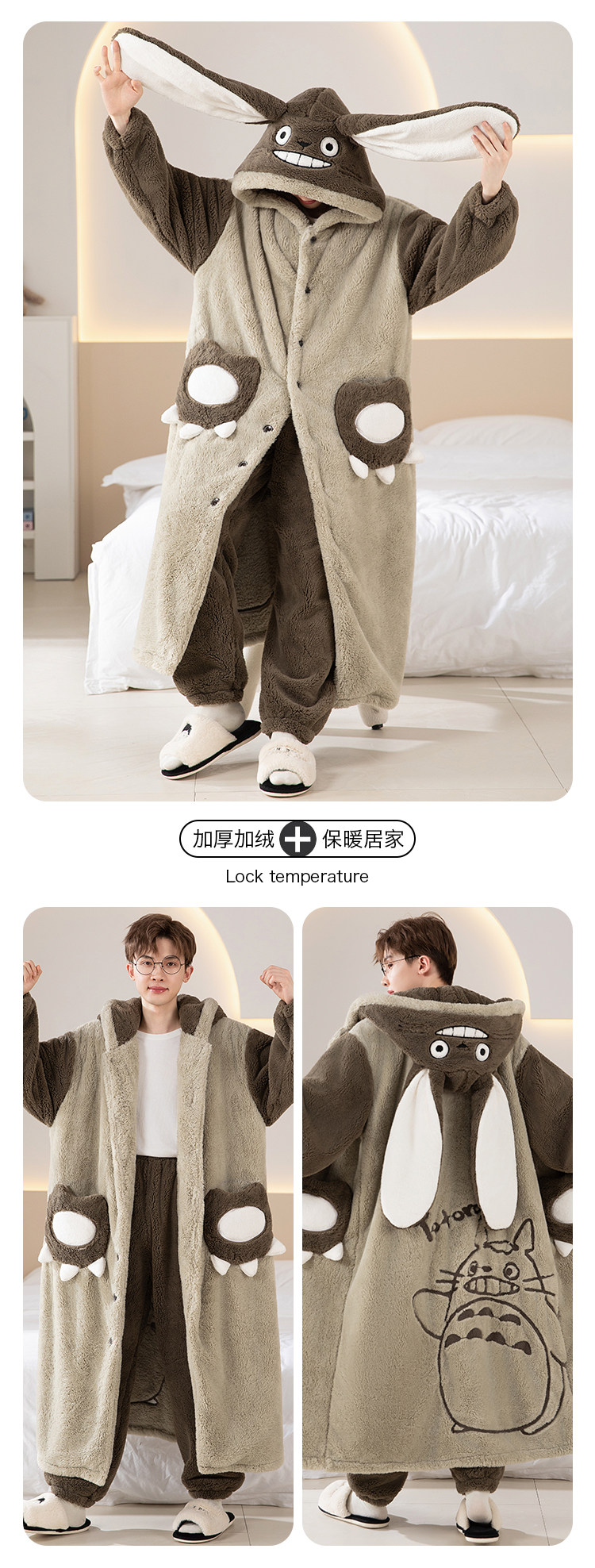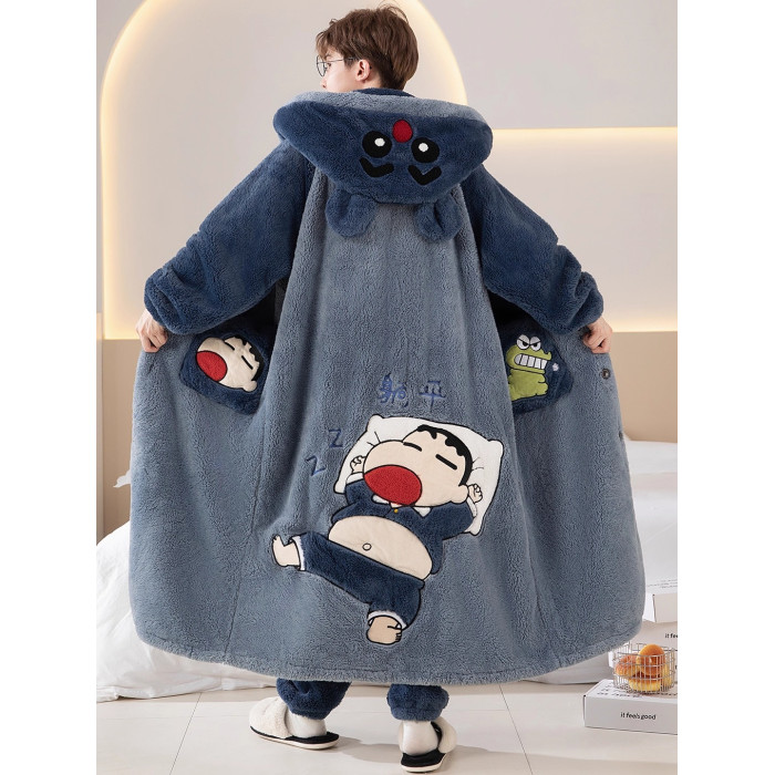 秋冬男士珊瑚絨睡衣青少年初中學生加厚冬天睡袍帶褲子大碼家居服