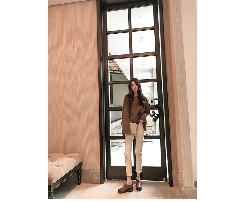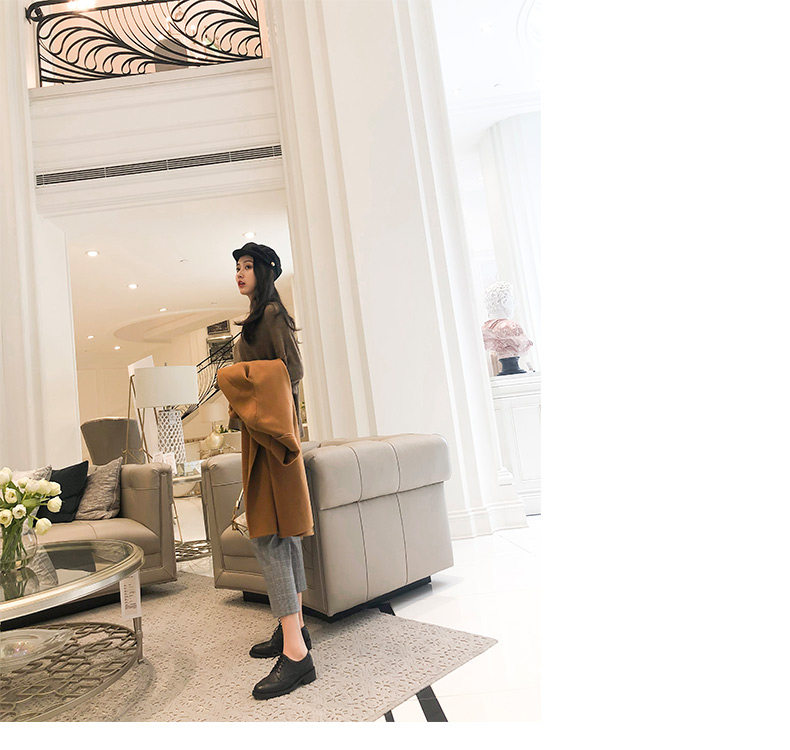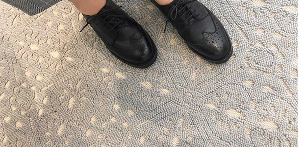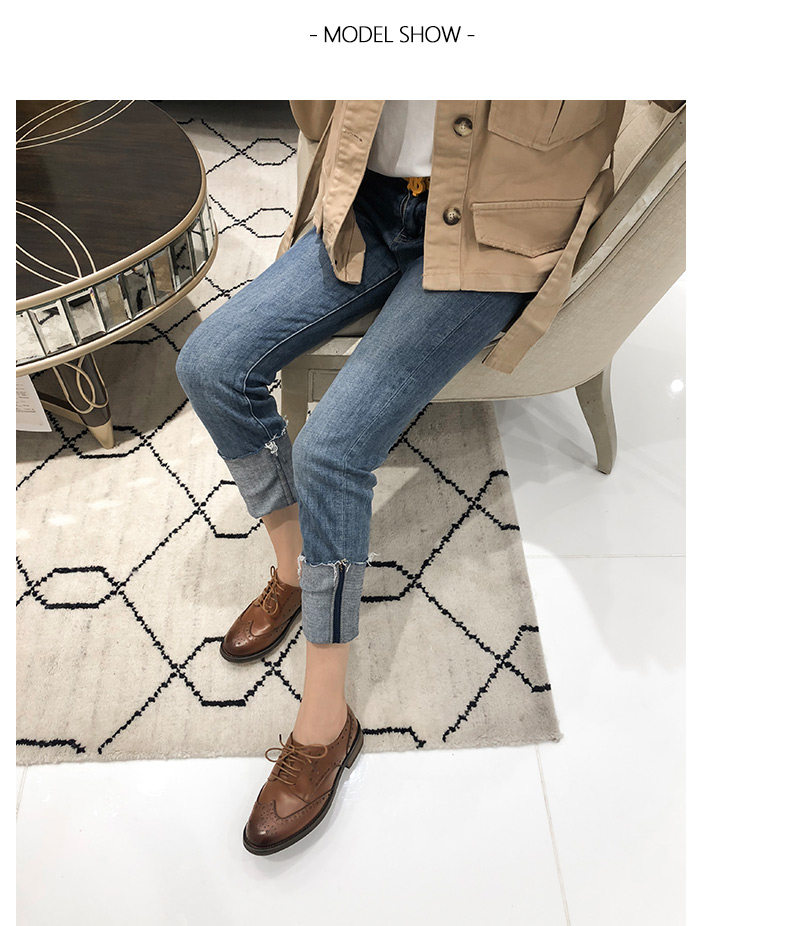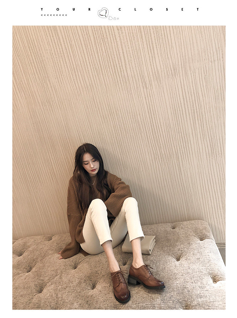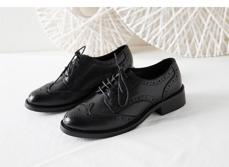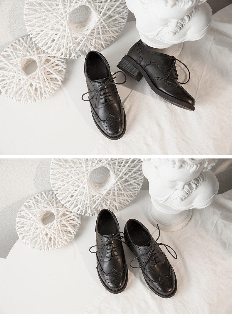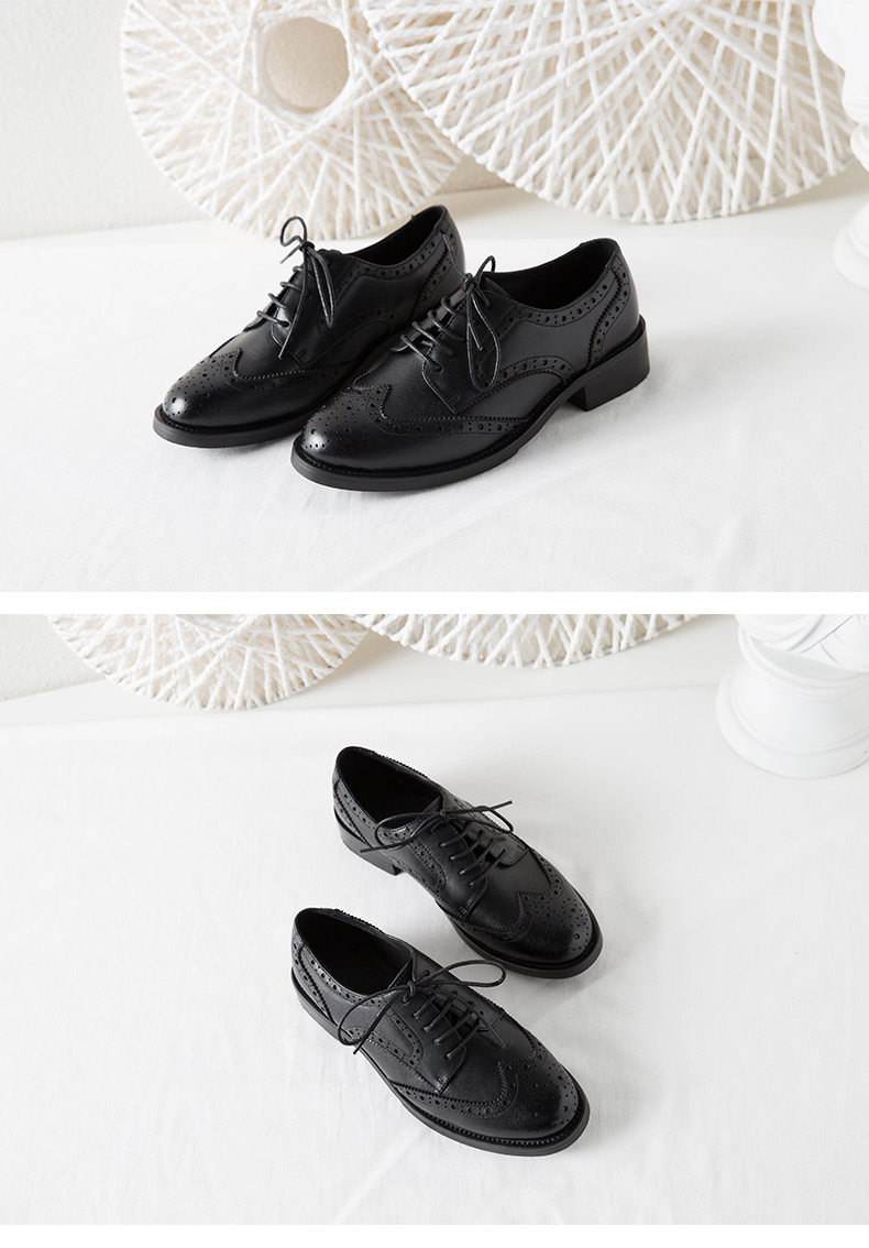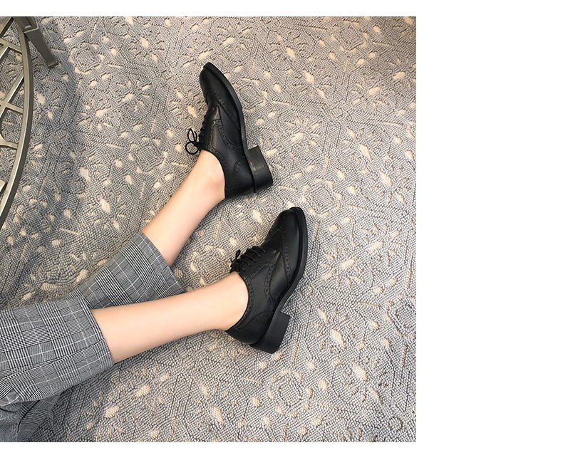 小皮鞋女2025新款復古英倫風雕花真皮系帶粗跟春秋單鞋布洛克女鞋