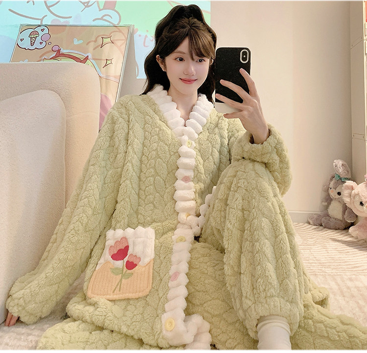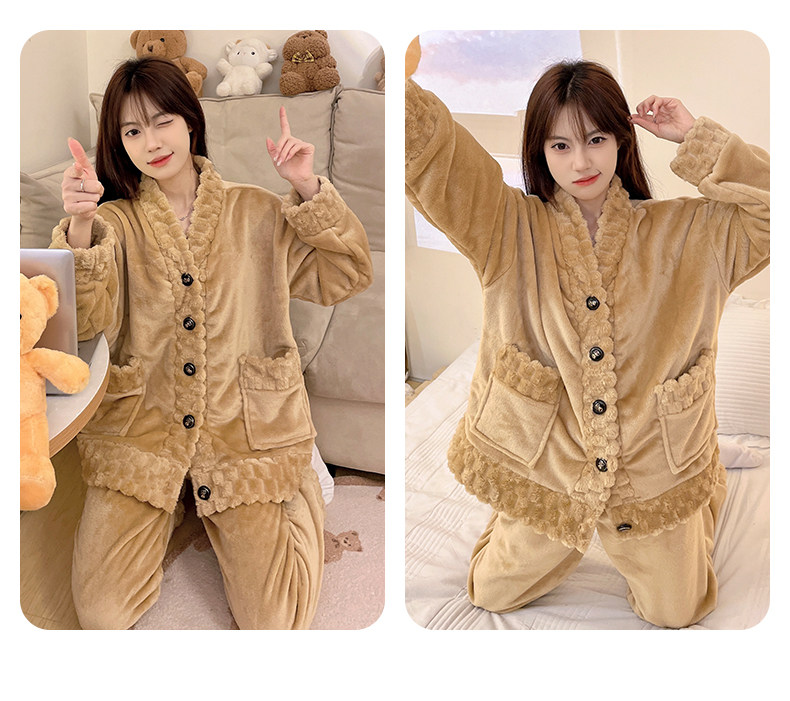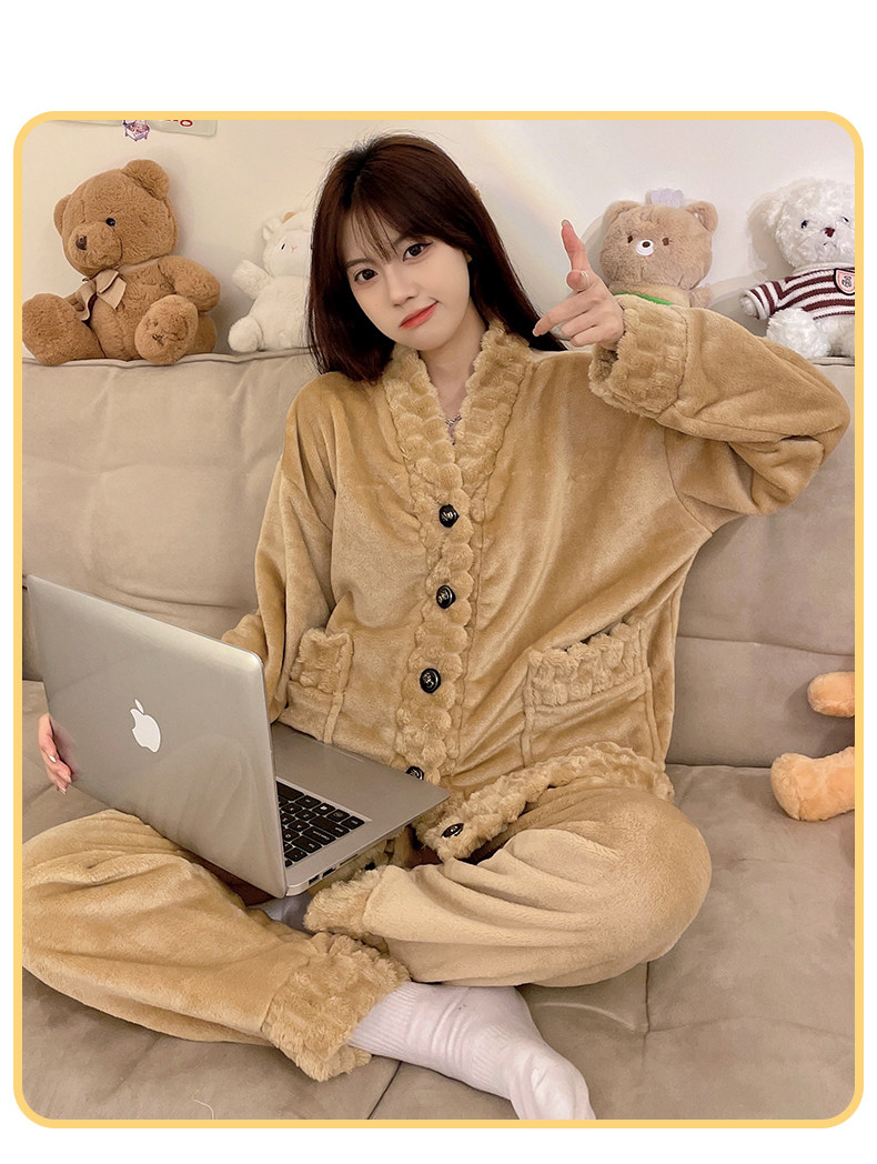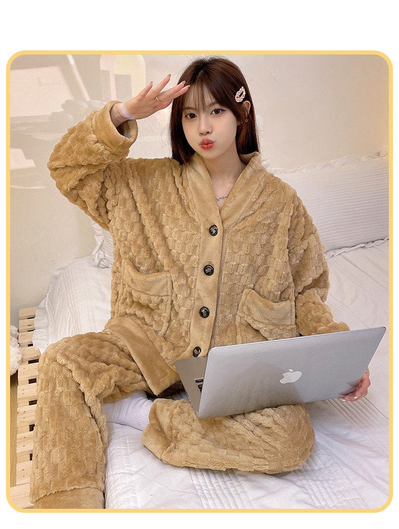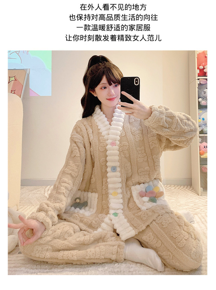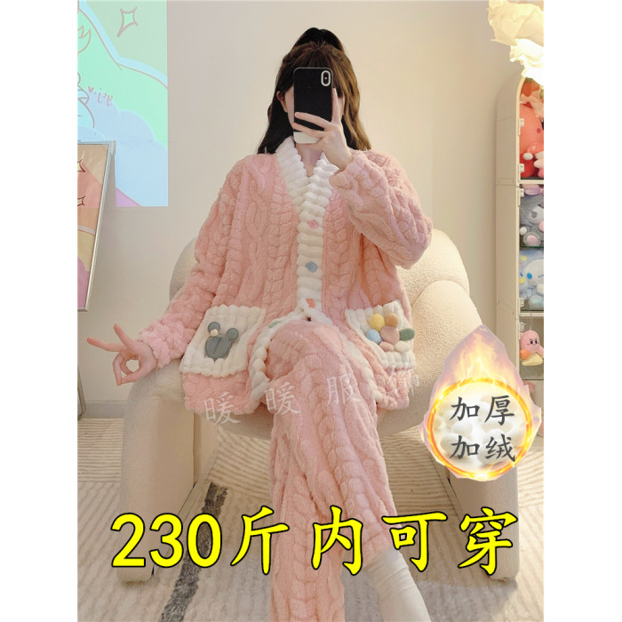 珊瑚絨睡衣女秋冬季加厚保暖胖mm加肥加大碼200斤冬款家居服套裝