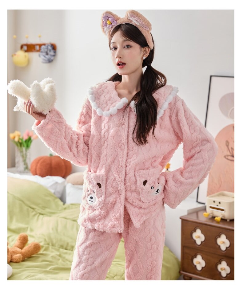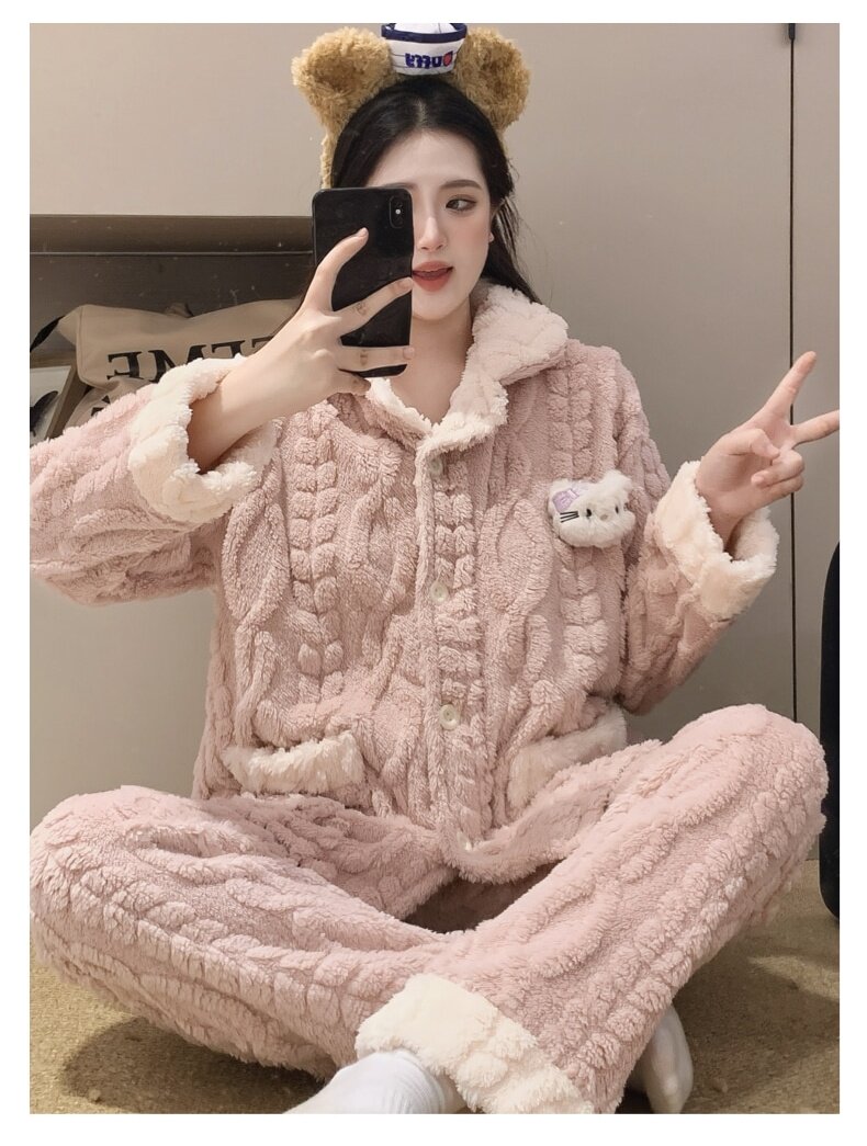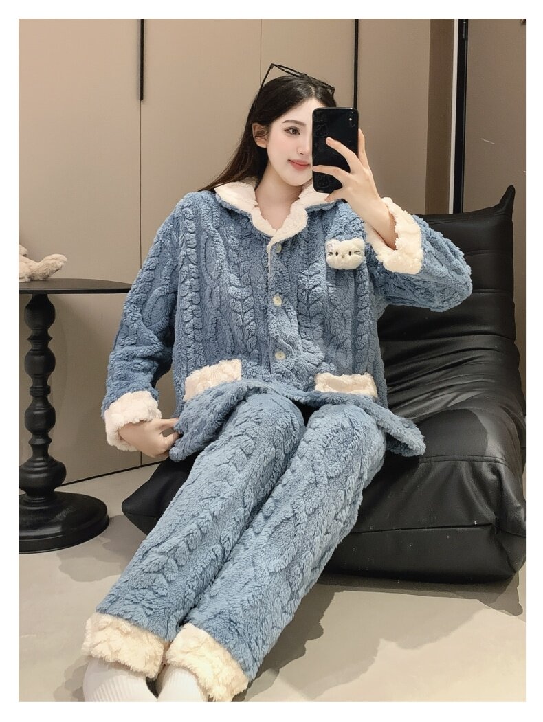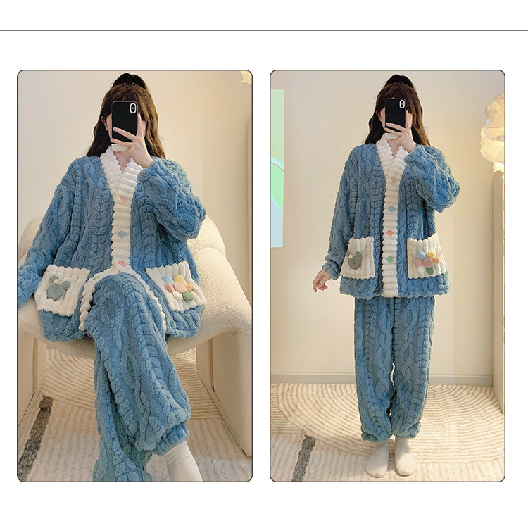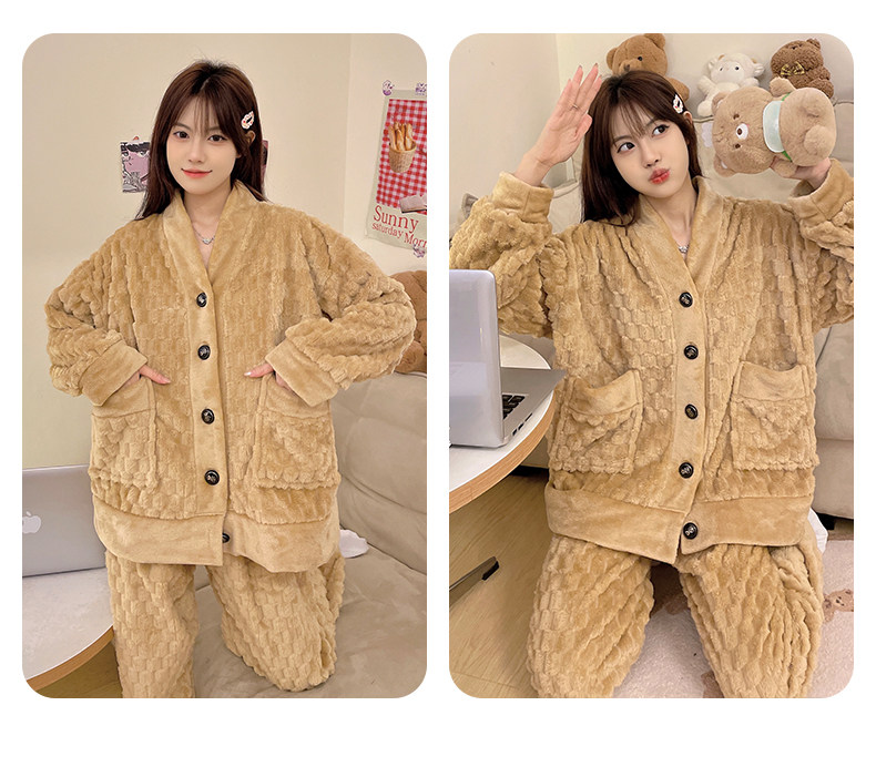 珊瑚絨睡衣女秋冬季加厚保暖胖mm加肥加大碼200斤冬款家居服套裝