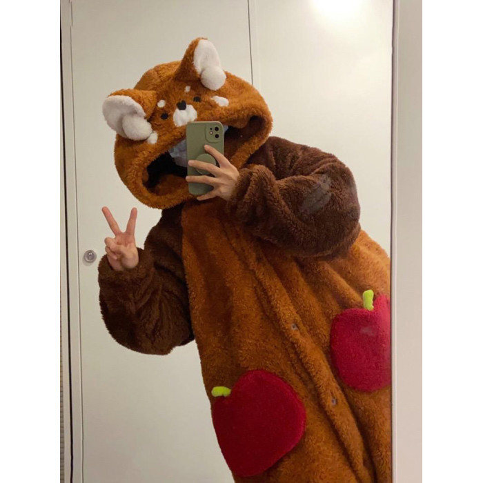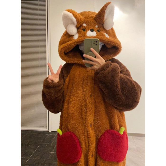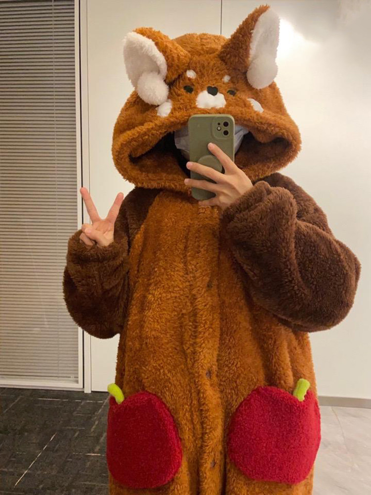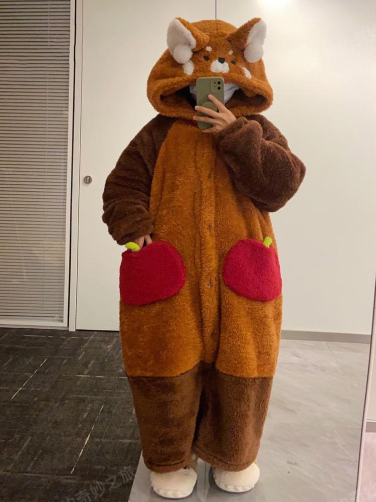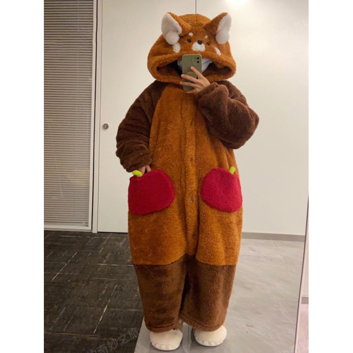 小熊貓睡衣女冬季2025新款珊瑚絨加厚情侶兩穿連體可愛睡袍家居服