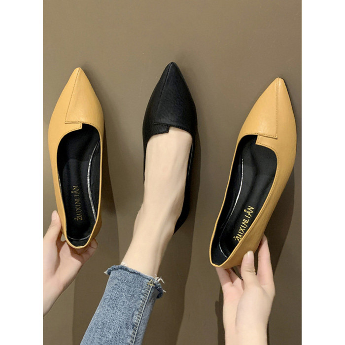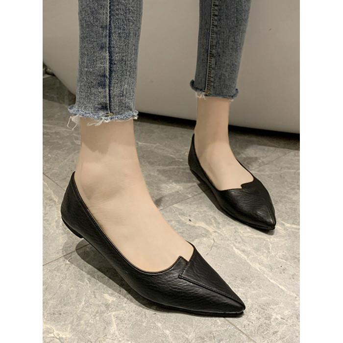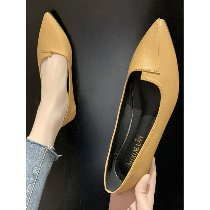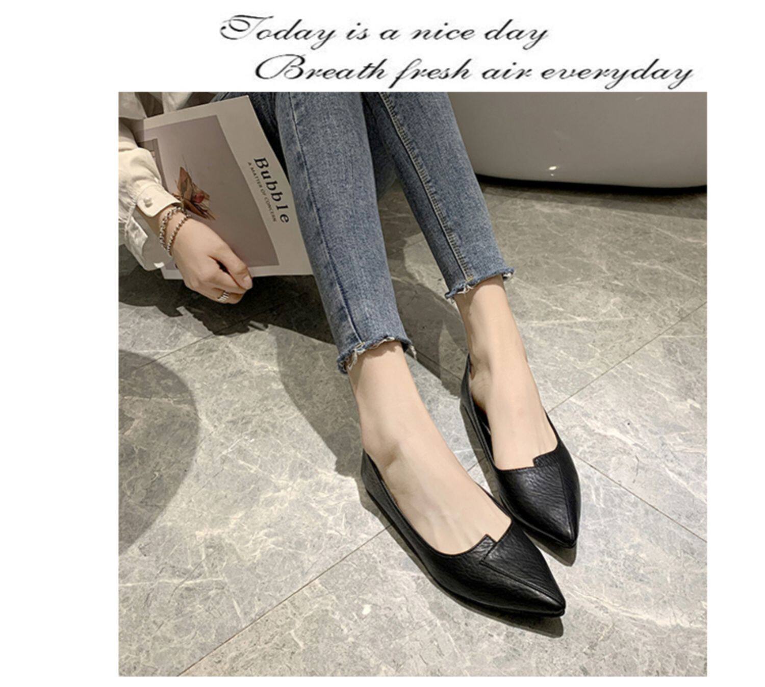 單鞋女平底2026新款復古百搭軟底四季鞋尖頭淺口舒適職業工作鞋子