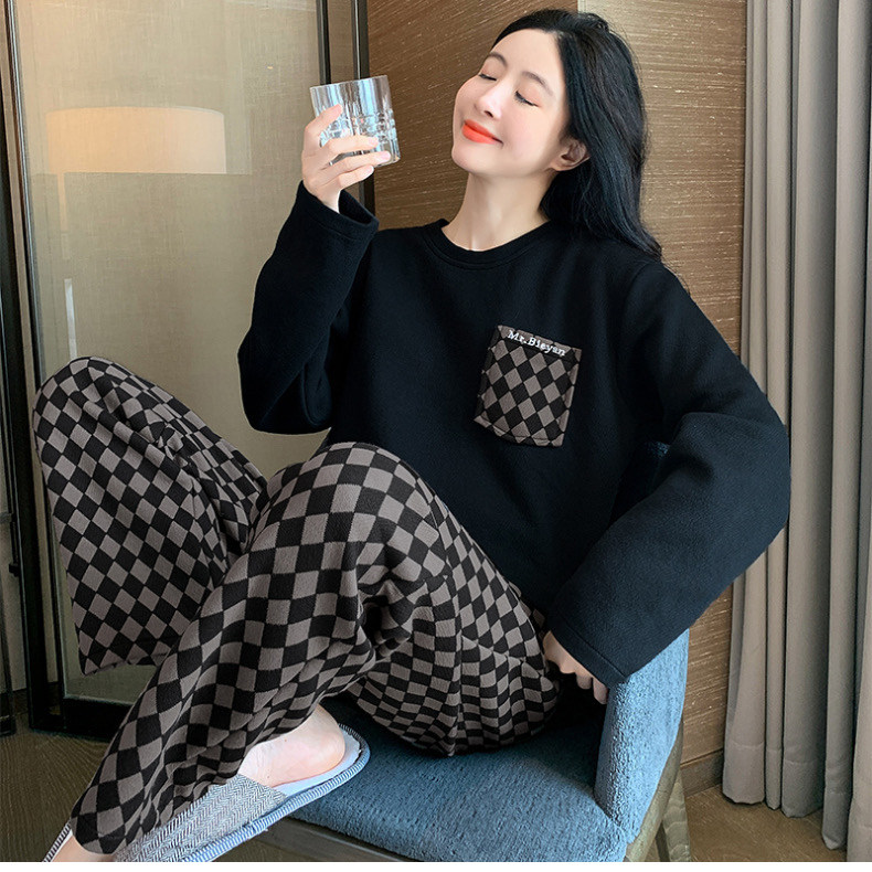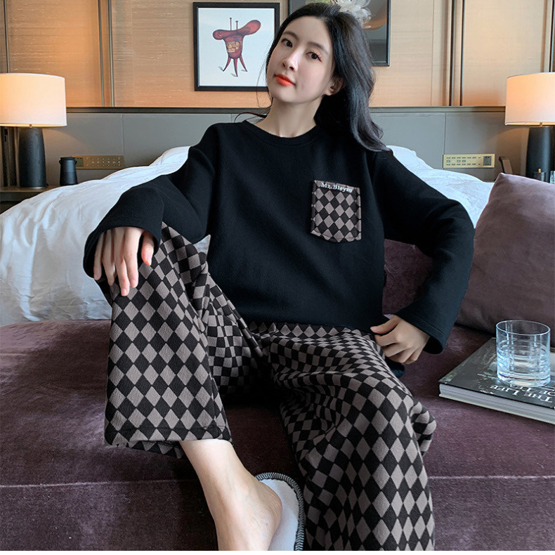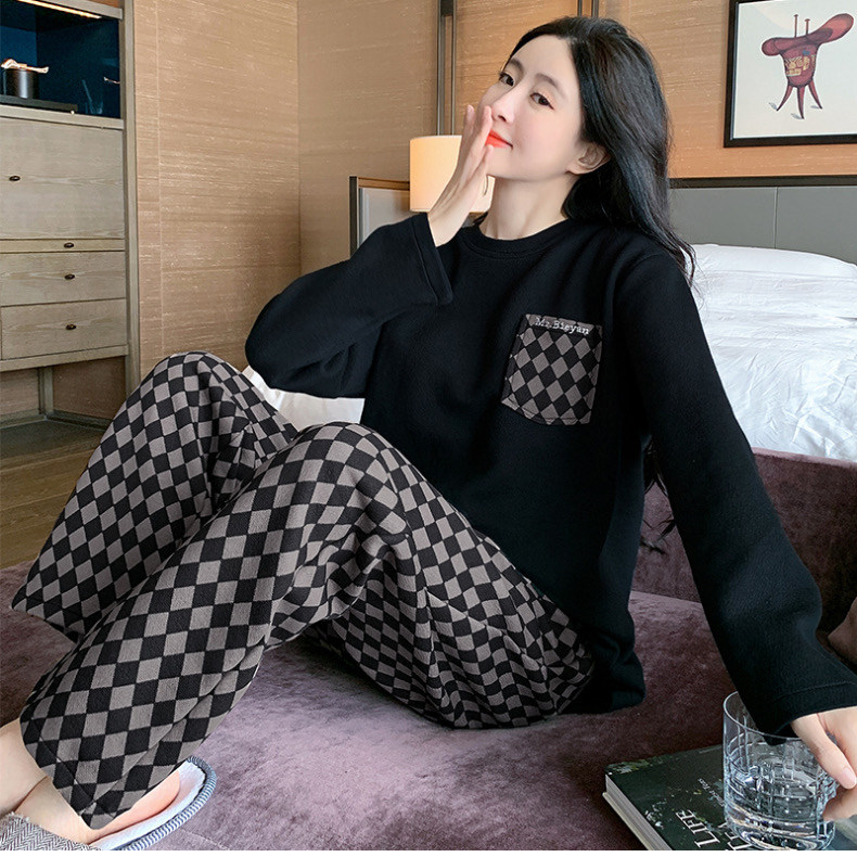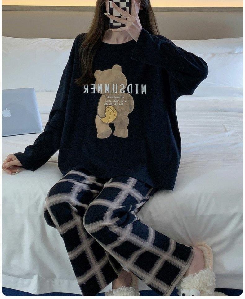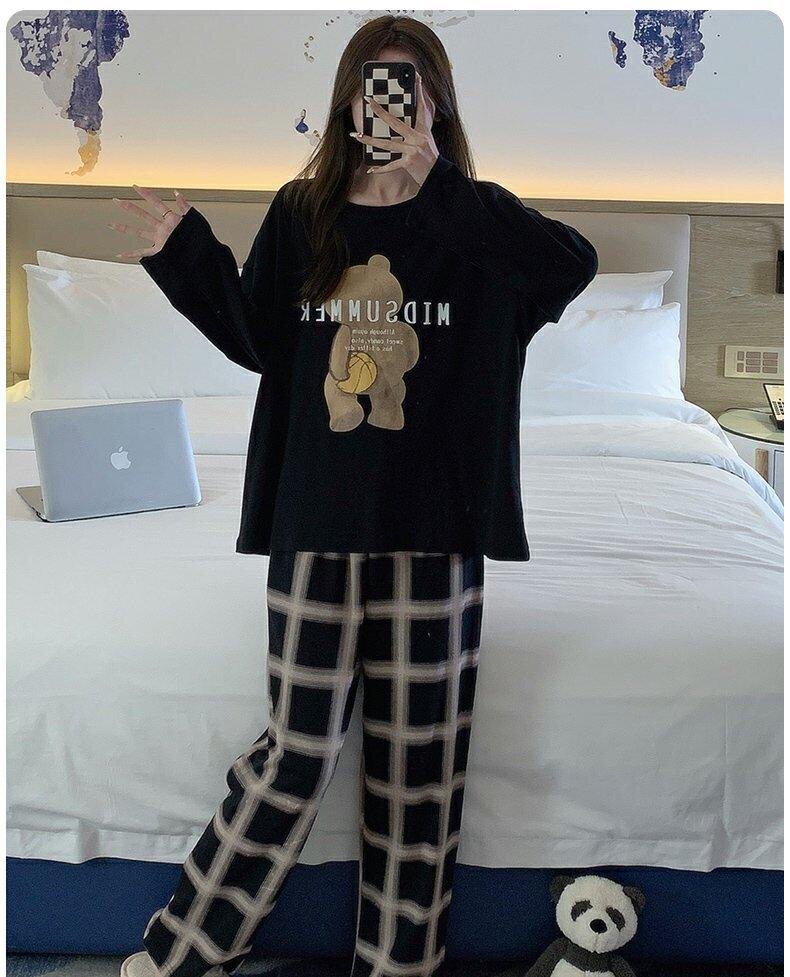 啄木鳥帶胸墊睡衣女士春秋季純棉長袖韓版卡通學生休閒家居服套裝