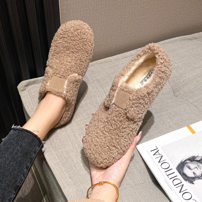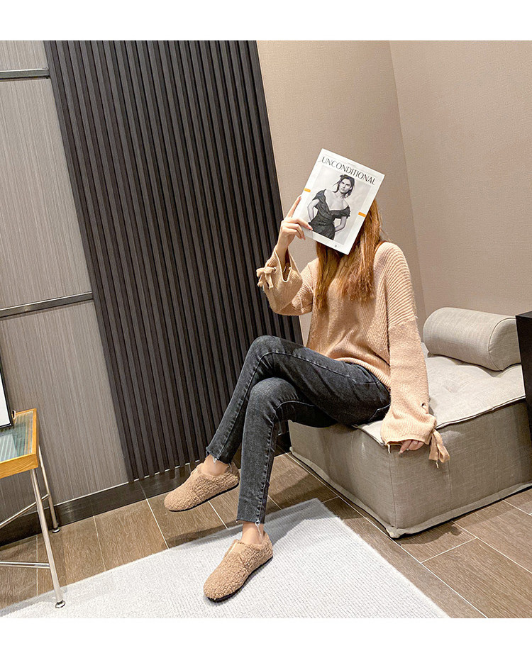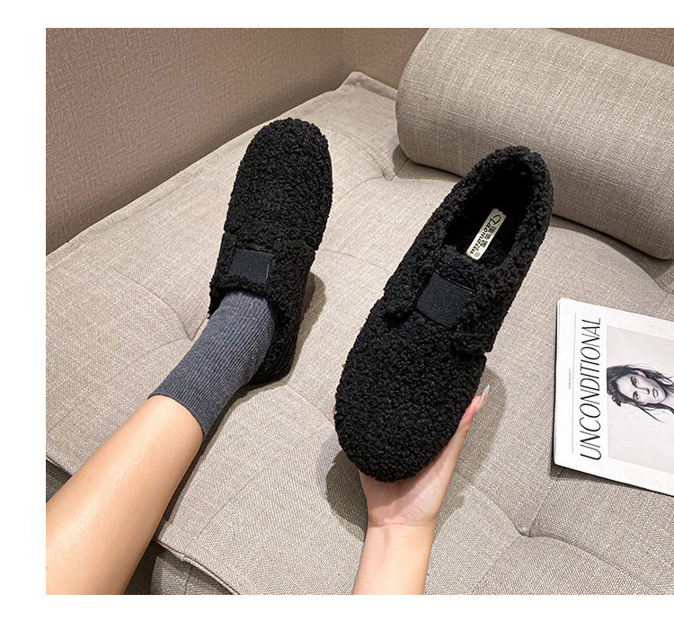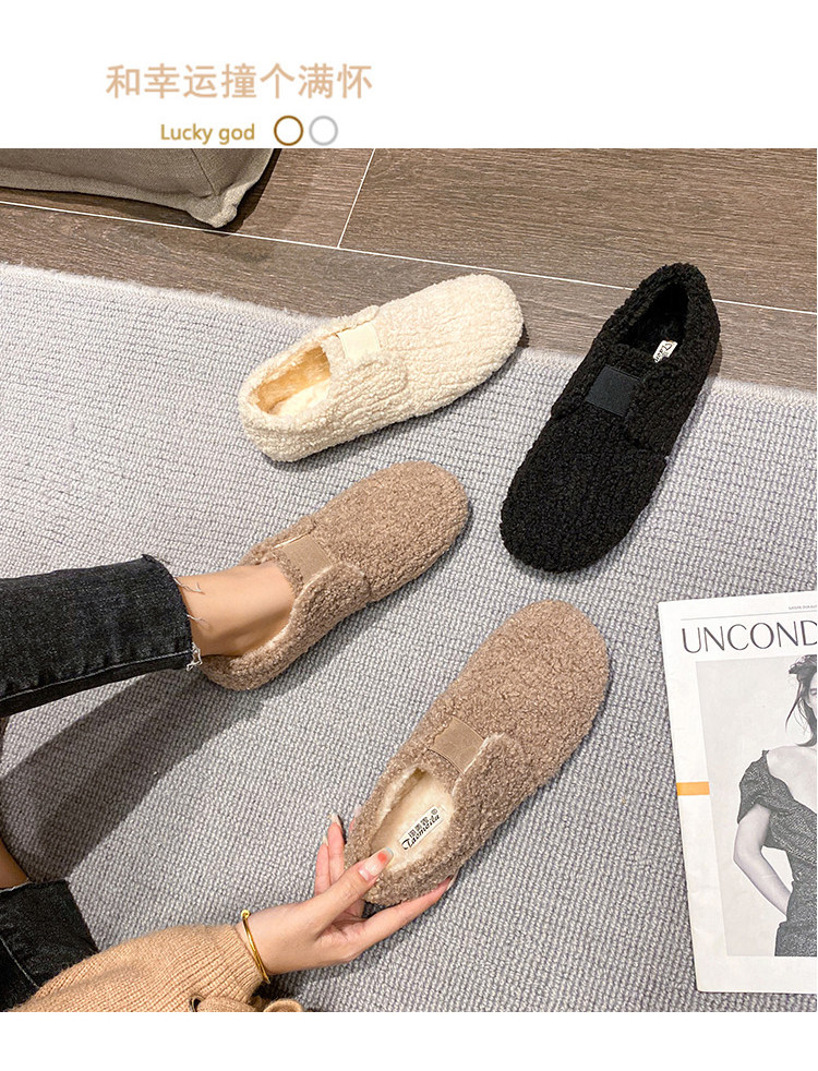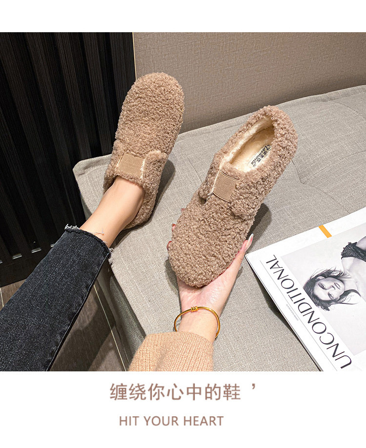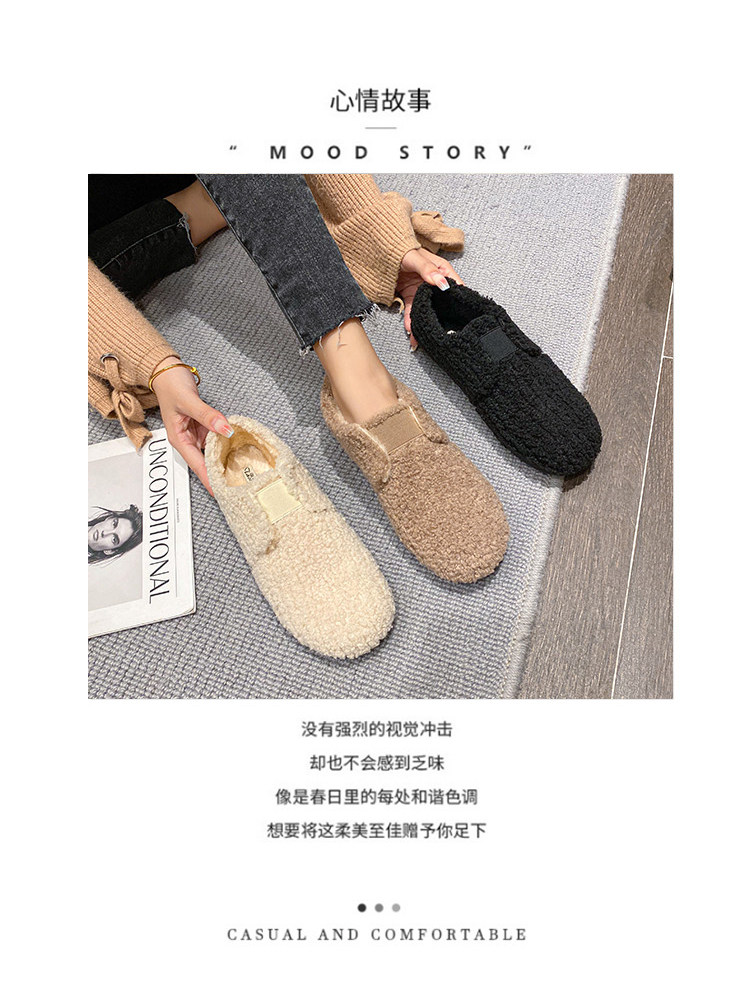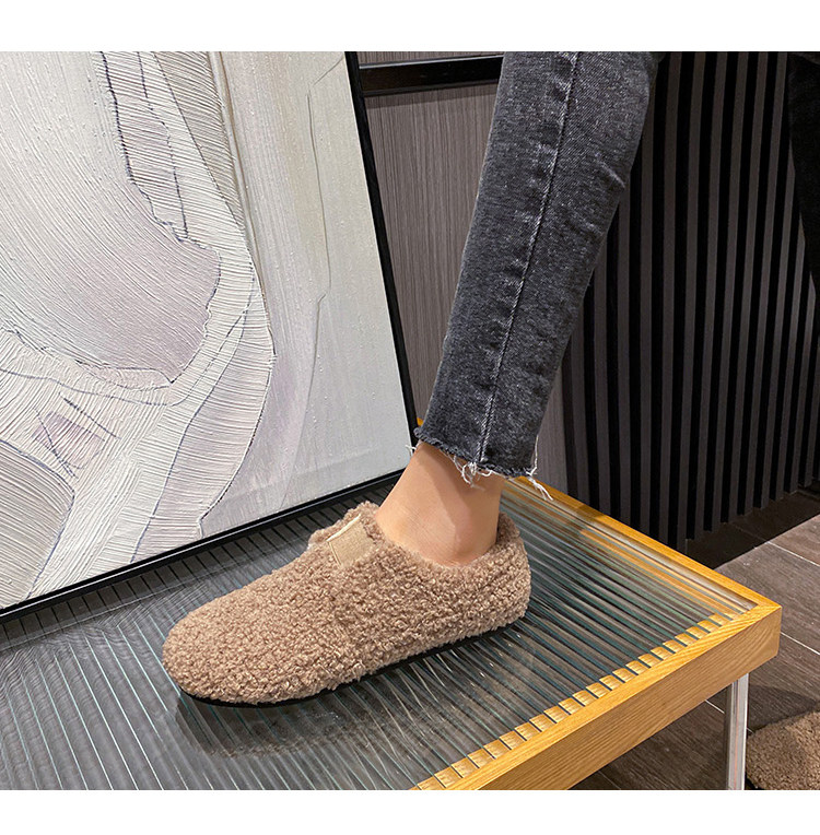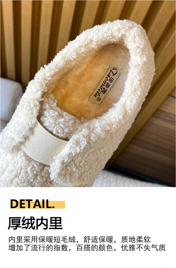 毛毛鞋女秋冬外穿厚底一腳蹬羊羔毛豆豆鞋女加絨棉瓢鞋大碼41到43