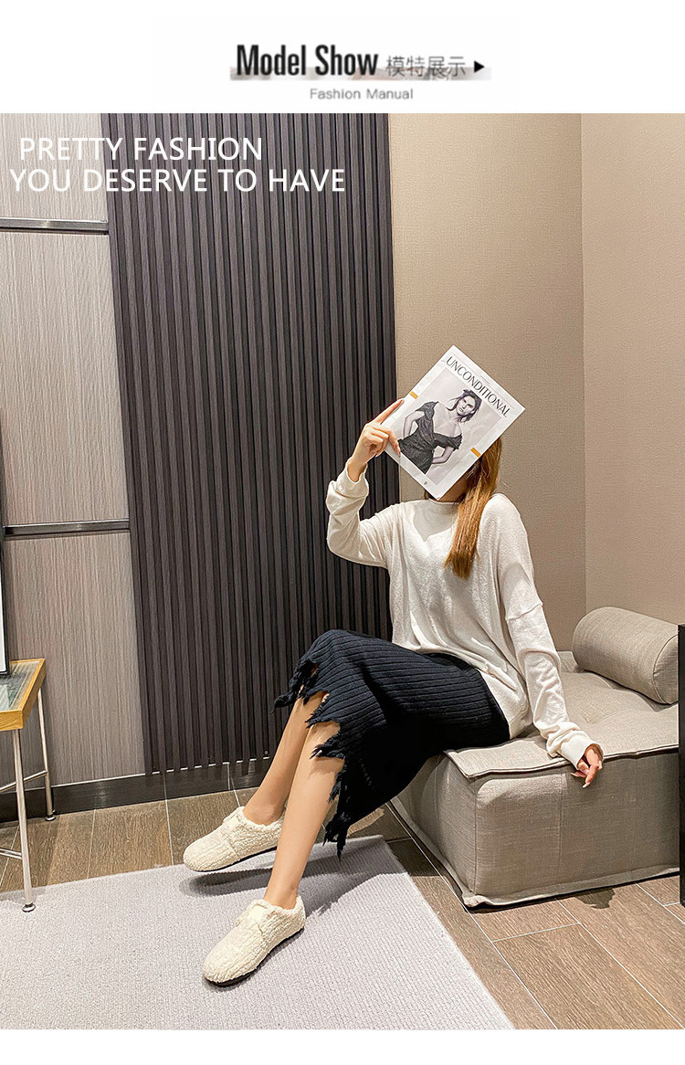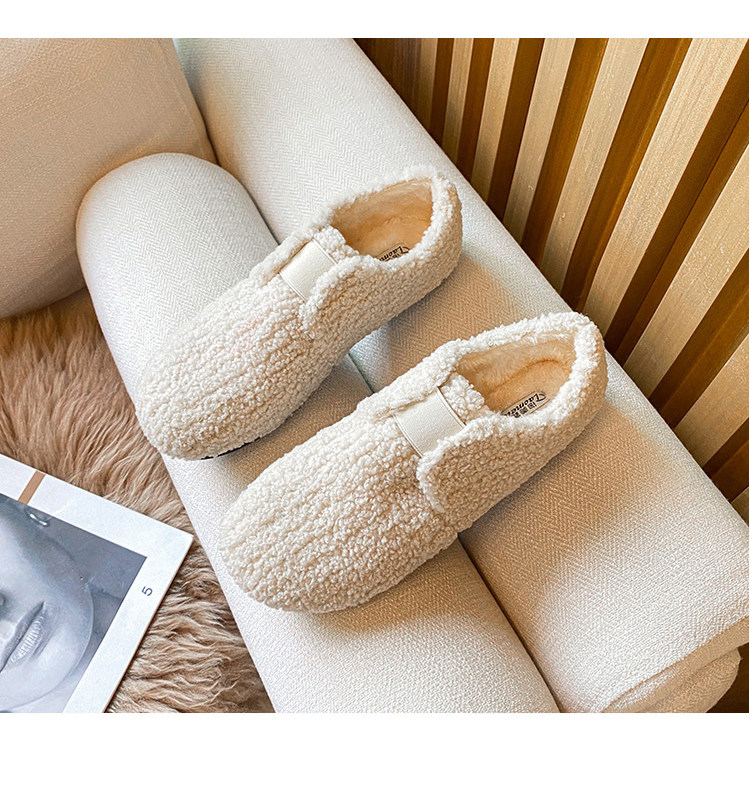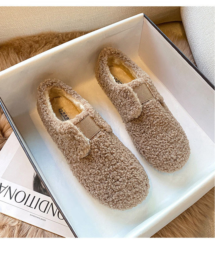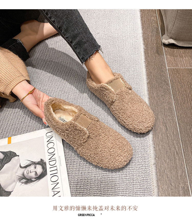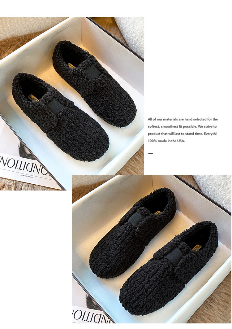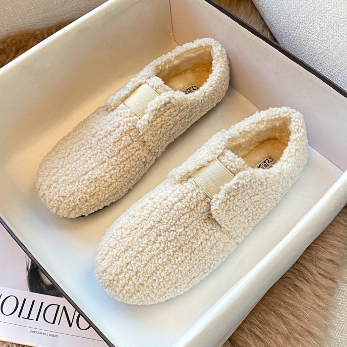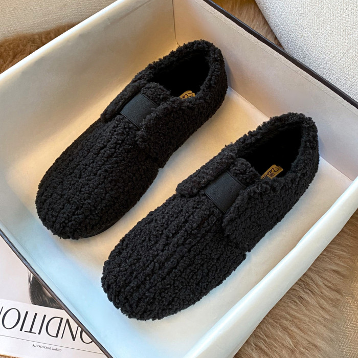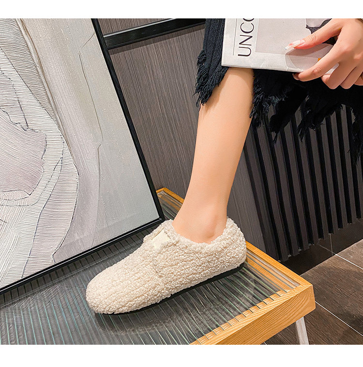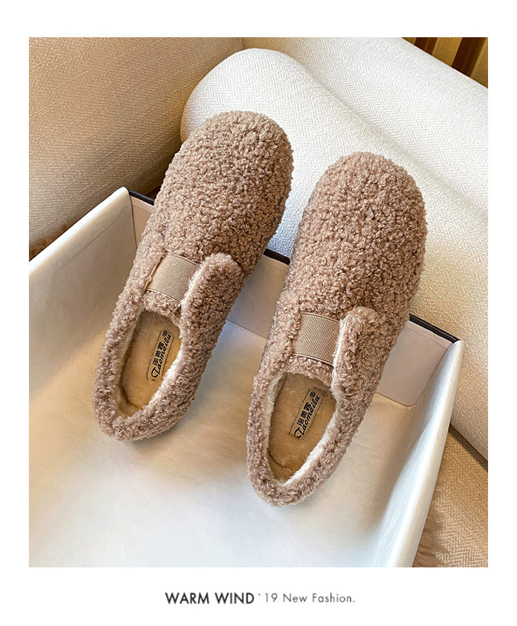 毛毛鞋女秋冬外穿厚底一腳蹬羊羔毛豆豆鞋女加絨棉瓢鞋大碼41到43