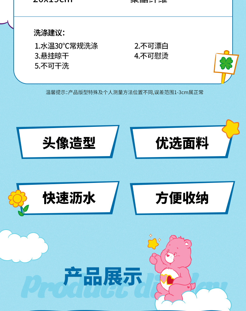 AFGH正版愛心小熊Care Bears大頭擦手巾加厚吸水廚房浴室