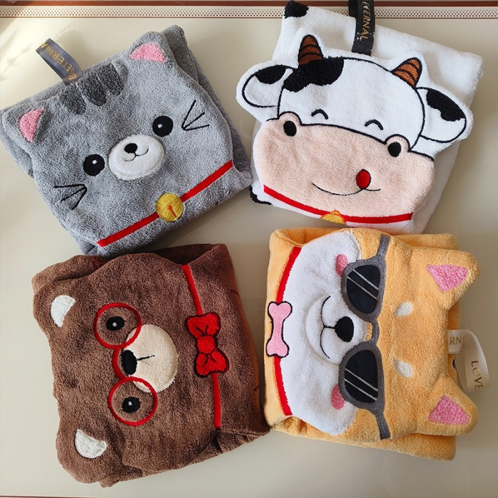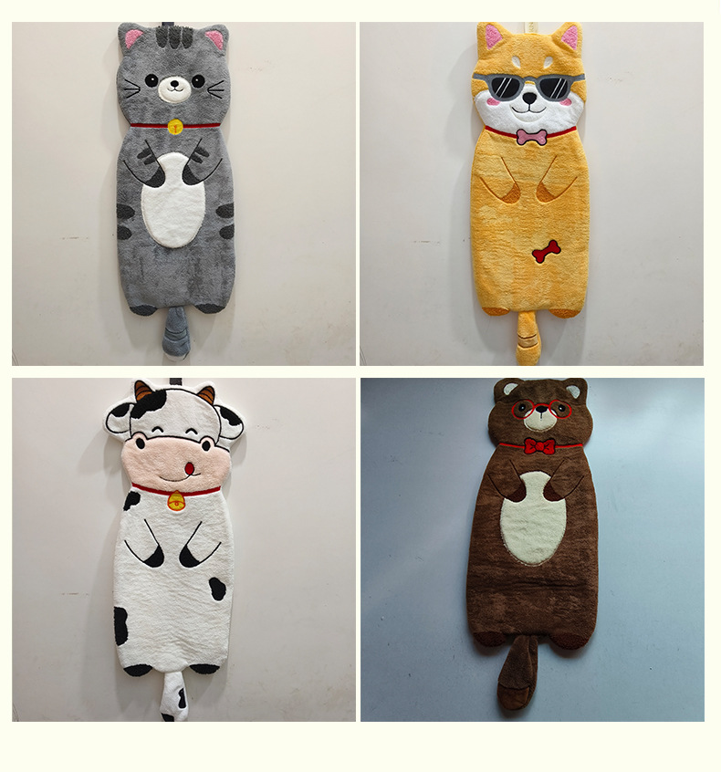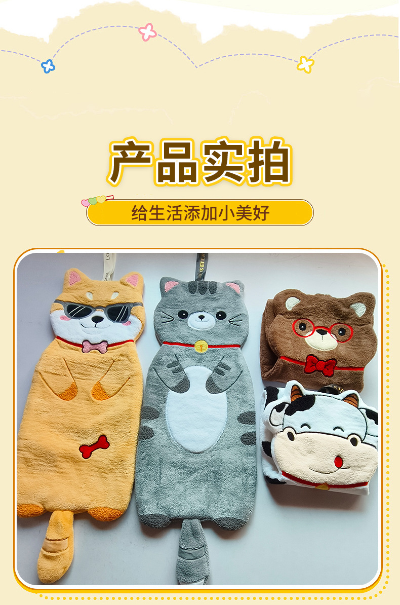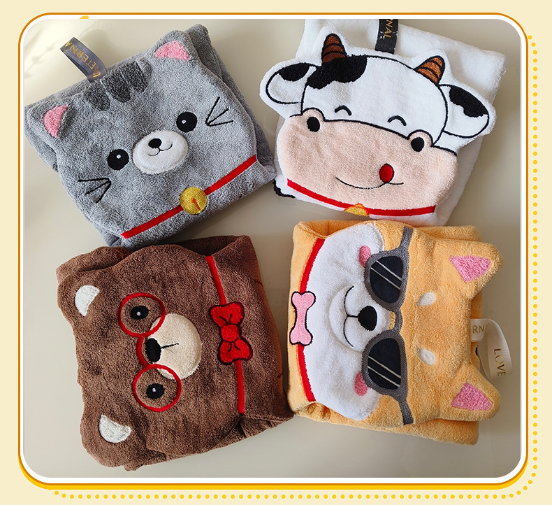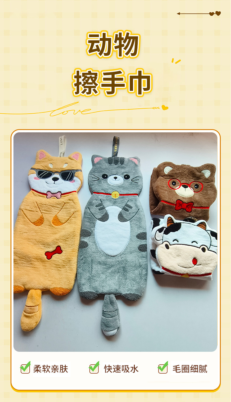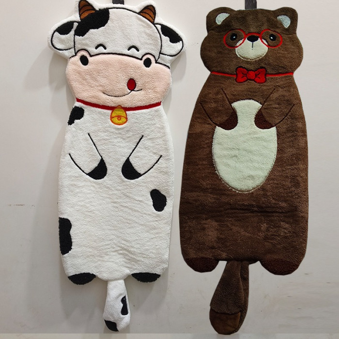 新款動物擦手巾掛式可愛加厚加大家用廚房浴室吸水毛巾不掉毛