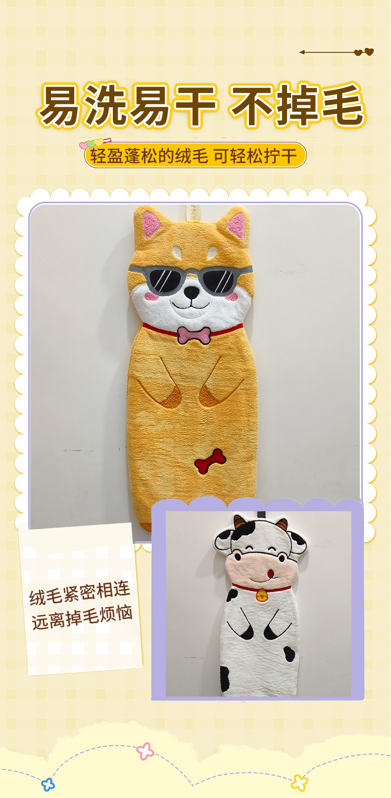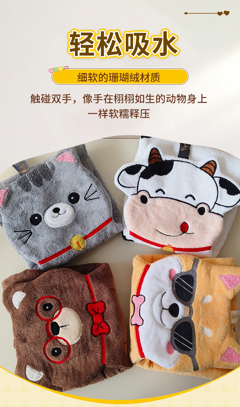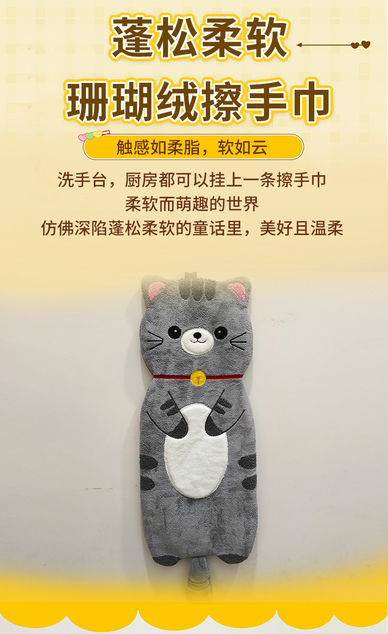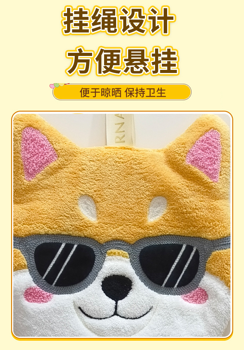 新款動物擦手巾掛式可愛加厚加大家用廚房浴室吸水毛巾不掉毛
