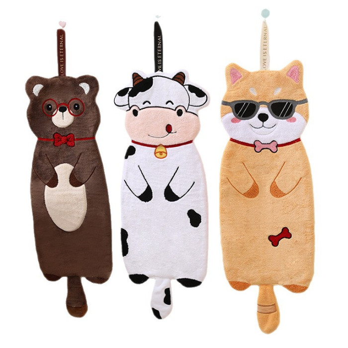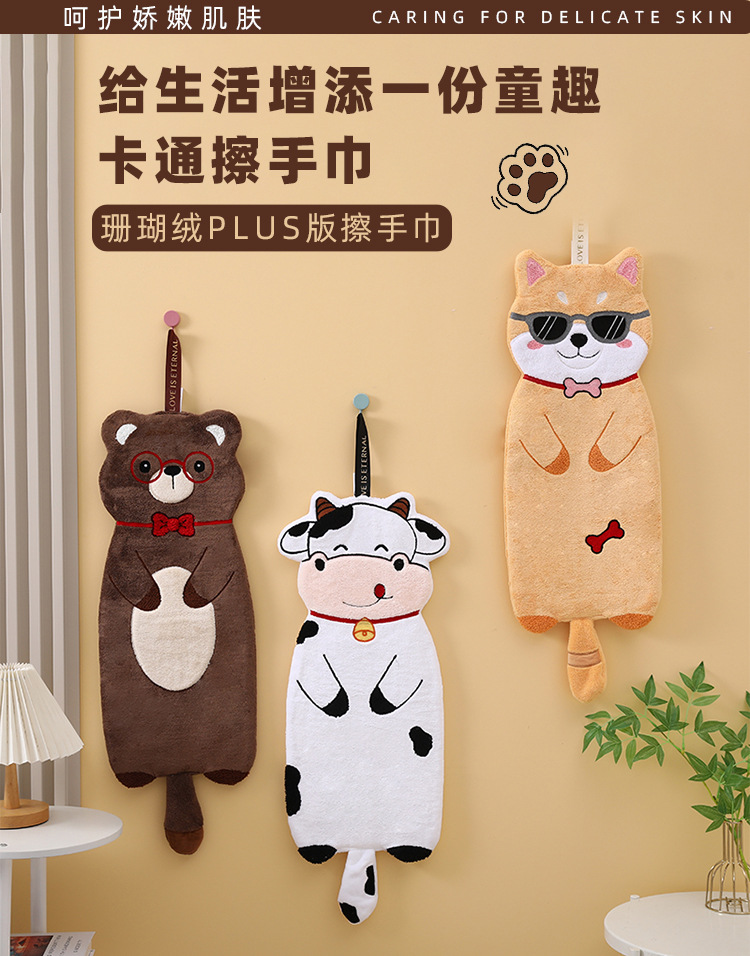 擦手巾plus版新款可愛擦手毛巾掛式衛生間廚房加厚吸水卡通大毛巾