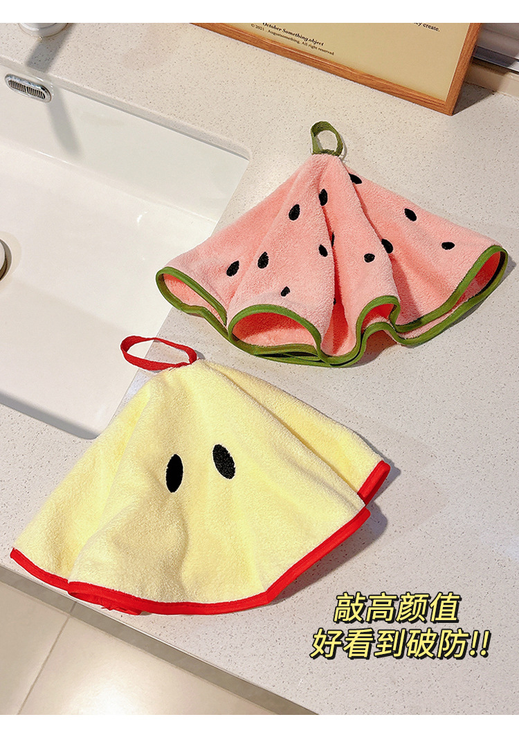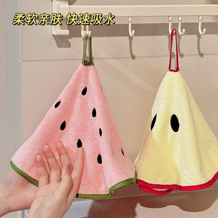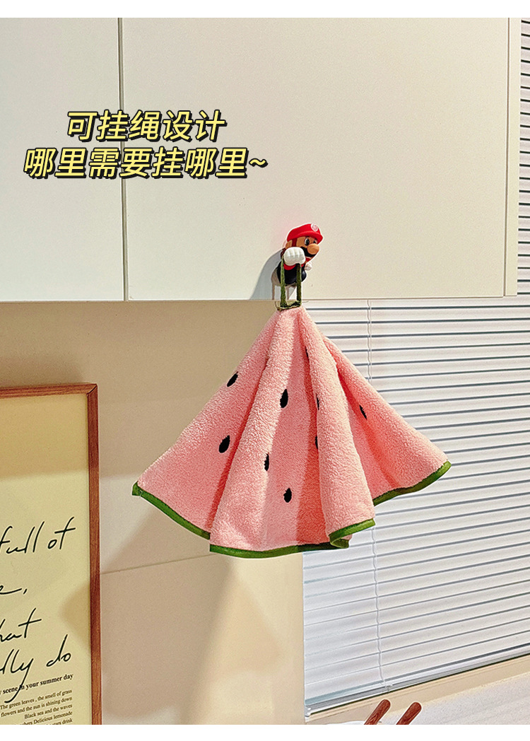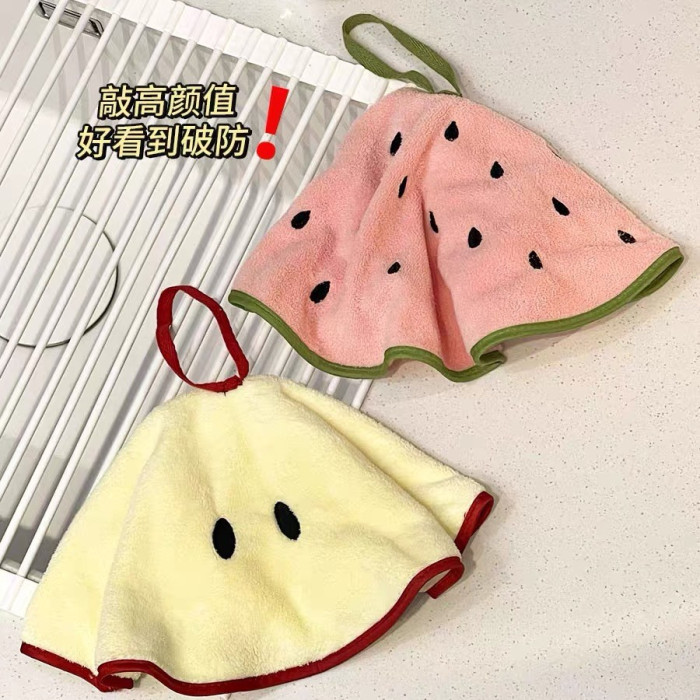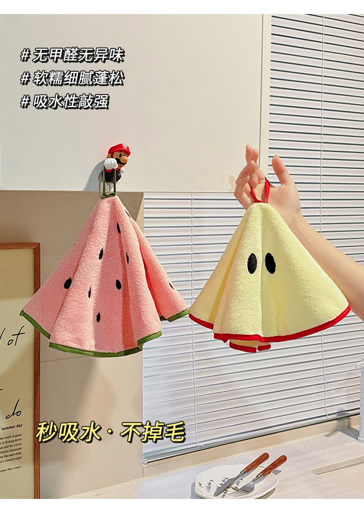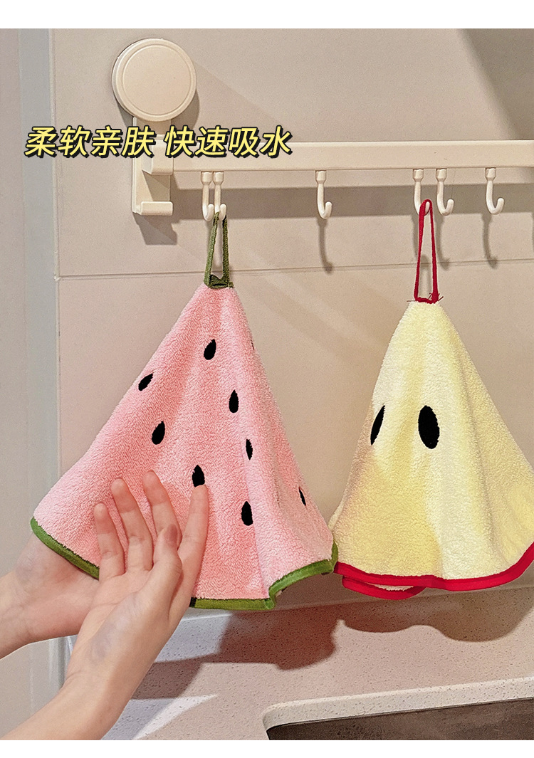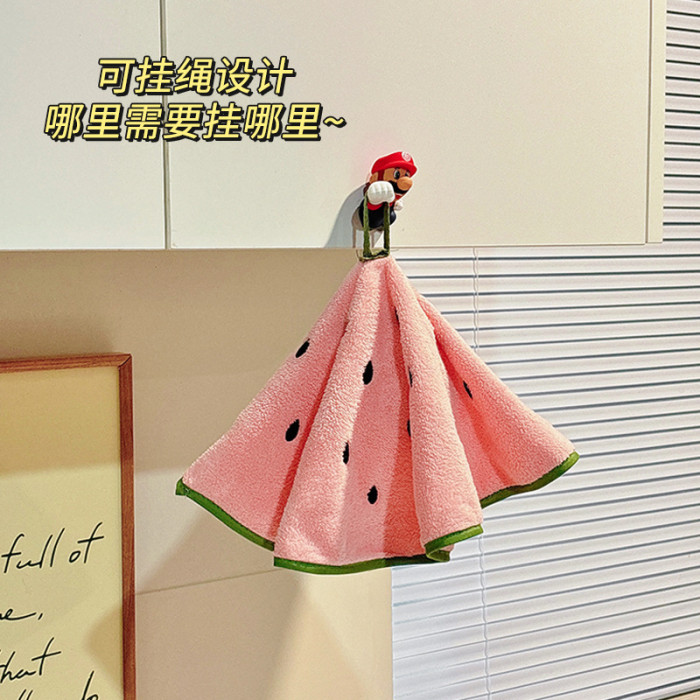 新款加厚吸水不掉毛擦手巾洗手間可掛式創意水果可愛毛巾手帕廚房