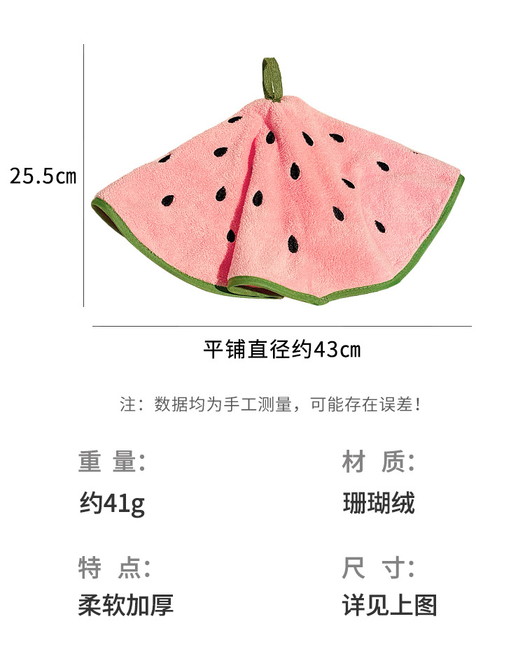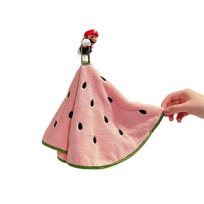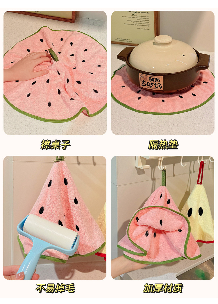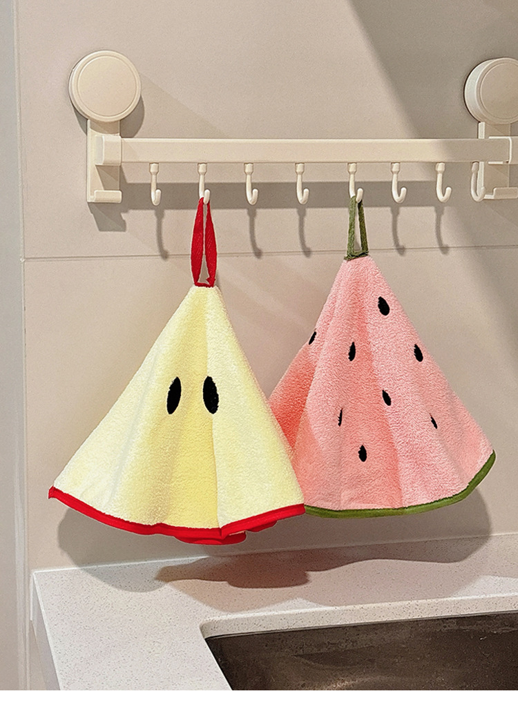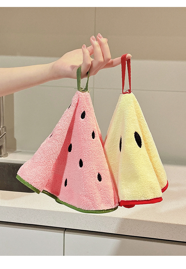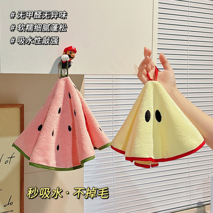 新款加厚吸水不掉毛擦手巾洗手間可掛式創意水果可愛毛巾手帕廚房
