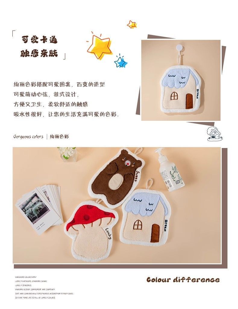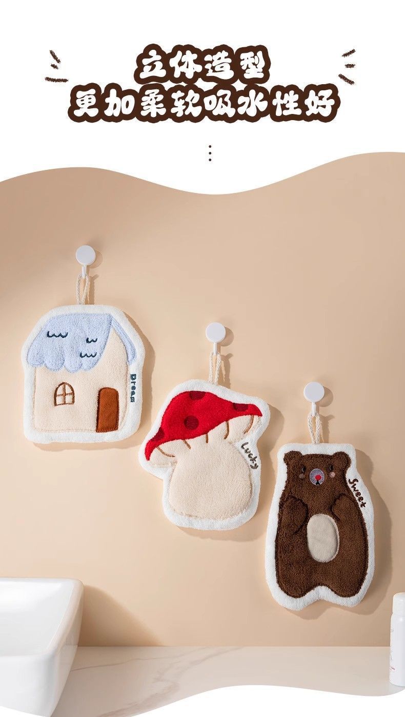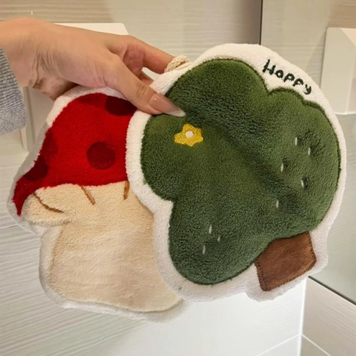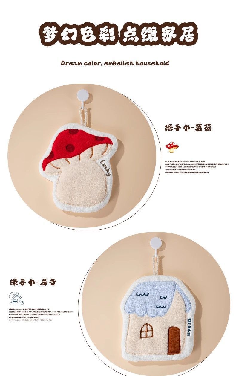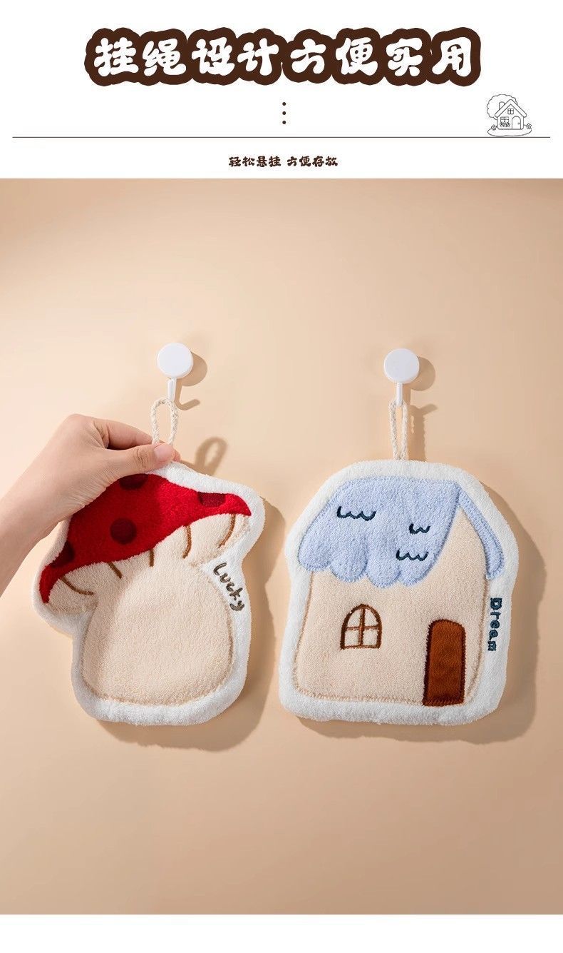 可愛蘑菇擦手巾掛式加厚不髮臭毛巾超強吸水手帕家用廚房衛生間