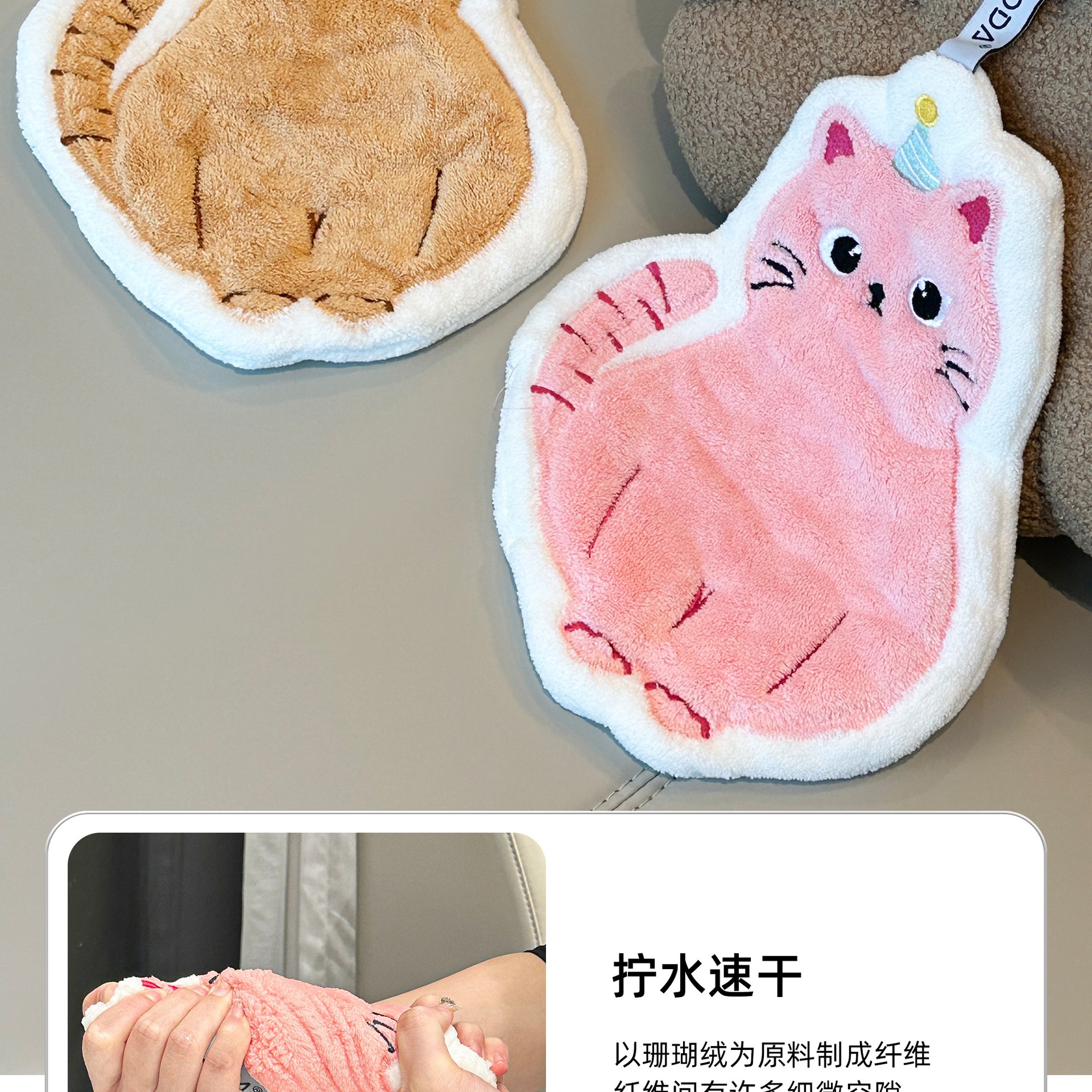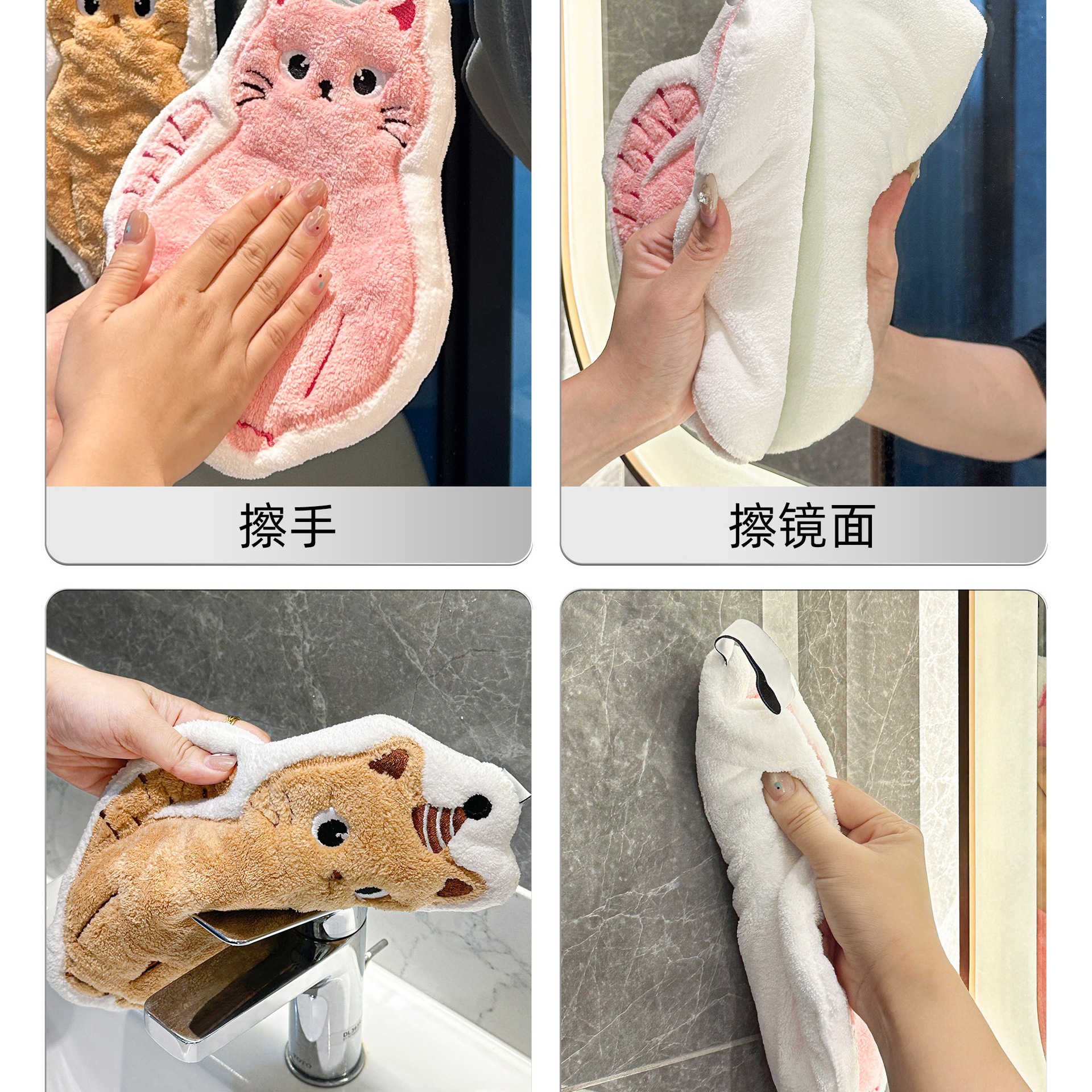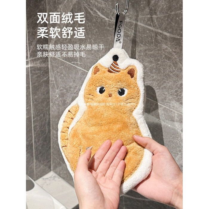 可愛擦手巾可掛式吸水加厚不掉毛小方巾廚房家用速乾搽手巾小毛巾