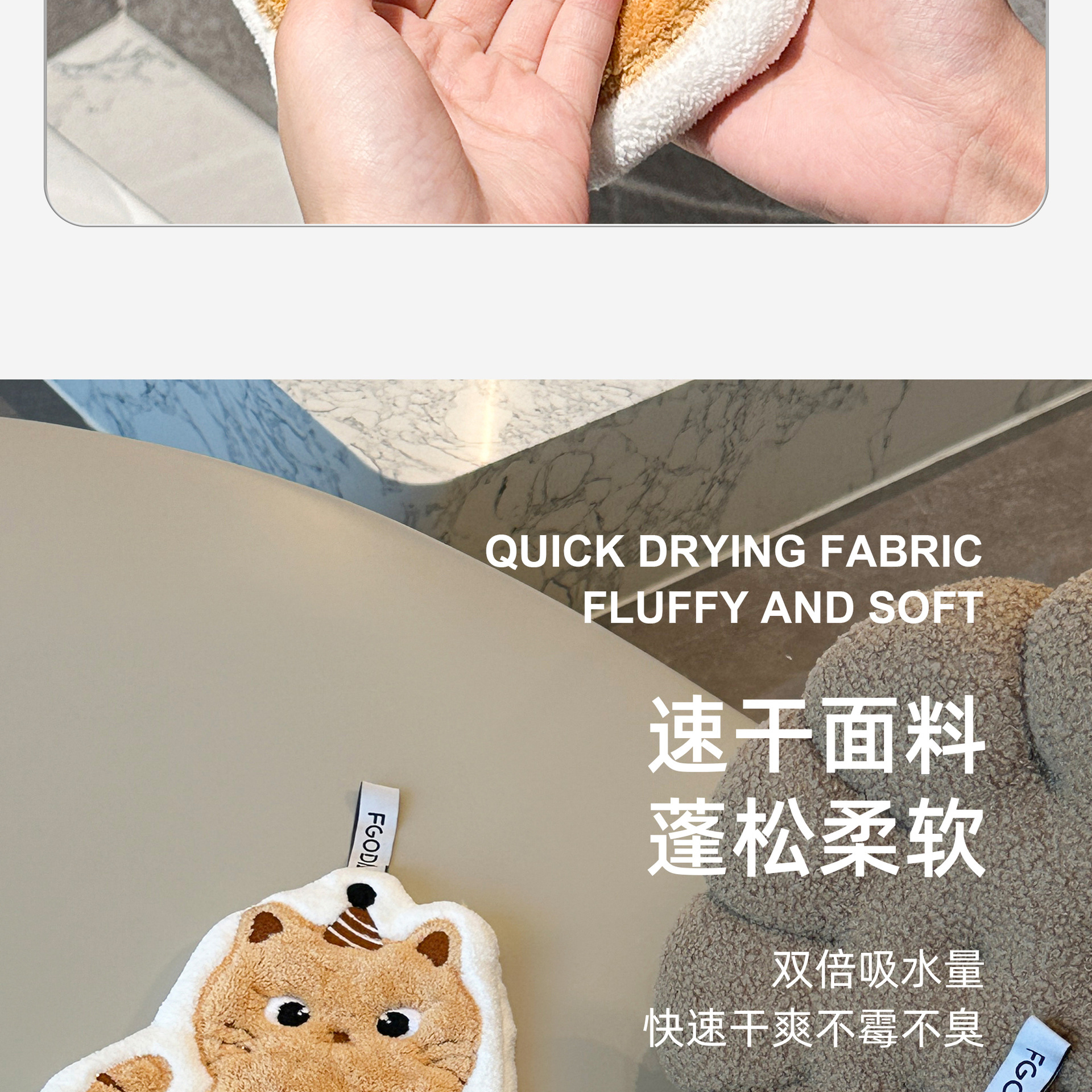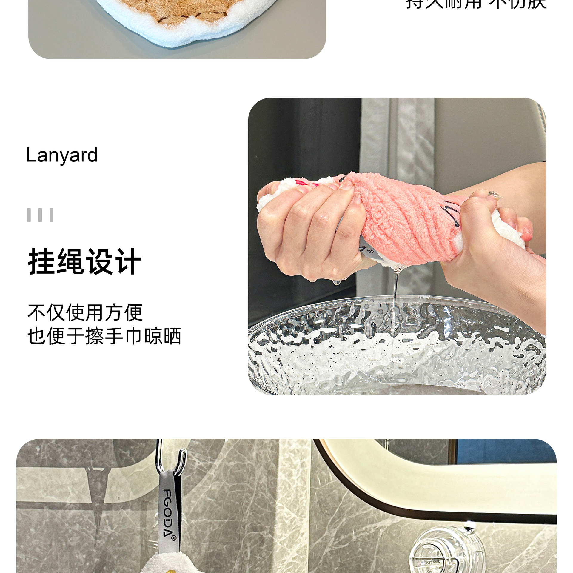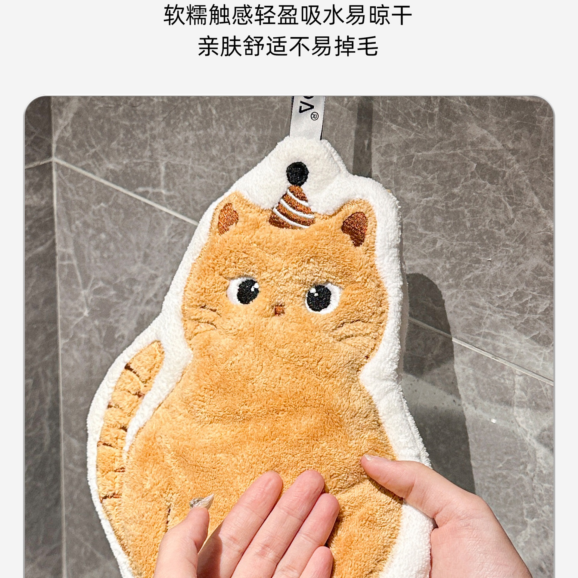 可愛擦手巾可掛式吸水加厚不掉毛小方巾廚房家用速乾搽手巾小毛巾