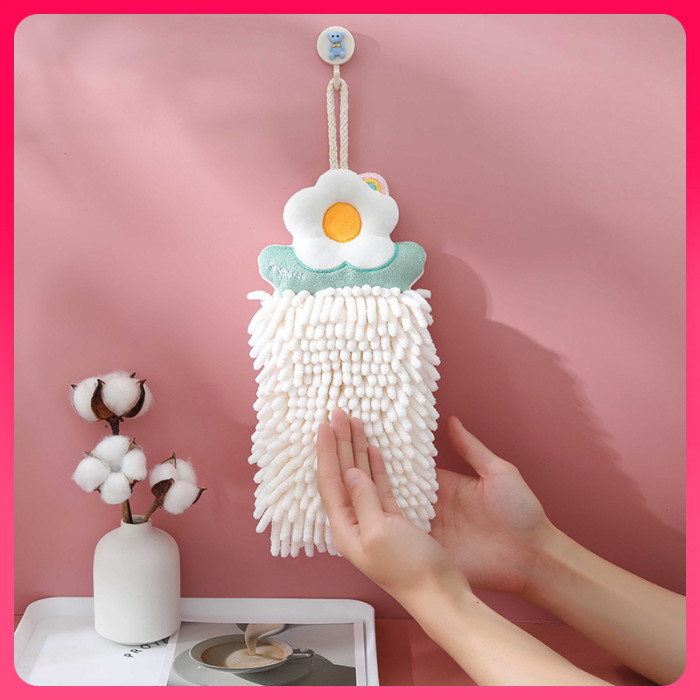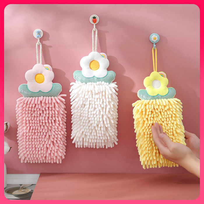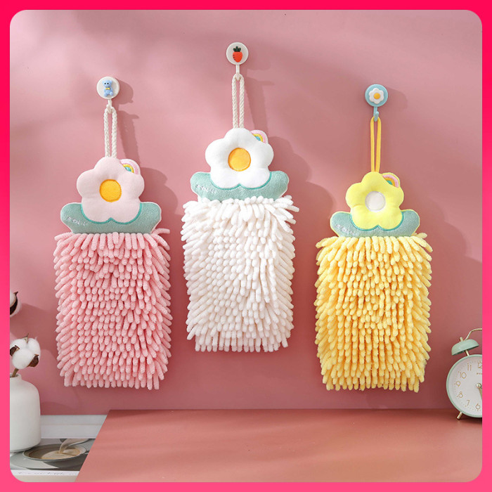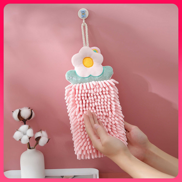 ↫雪尼爾花朵可掛擦手巾雙層加厚吸水擦手毛巾廚房衛生間擦手抹布
