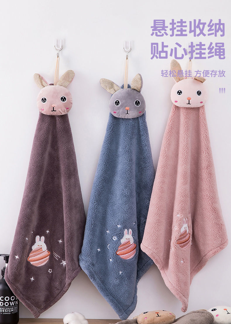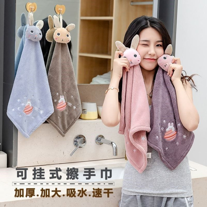 加厚卡通掛式超強吸水可愛擦手巾廚房衛生間家用搽手帕毛巾速乾