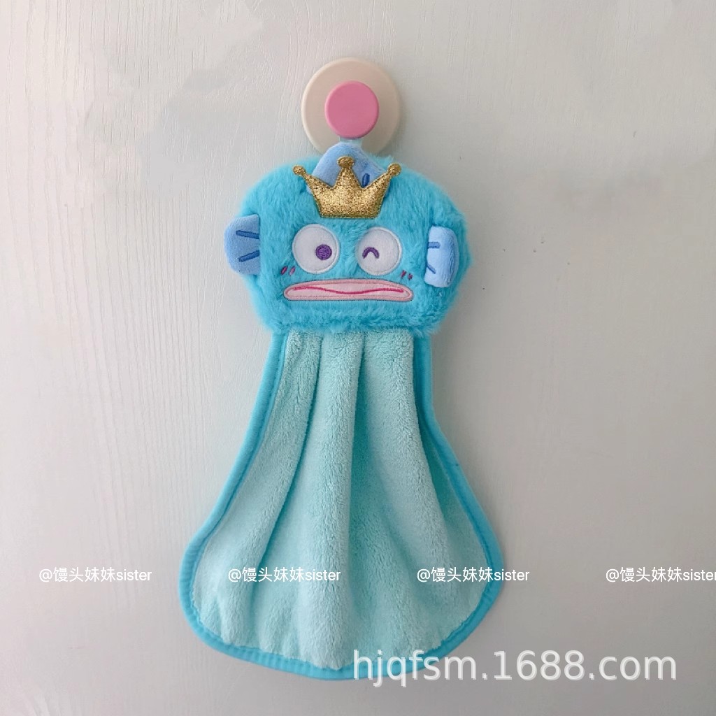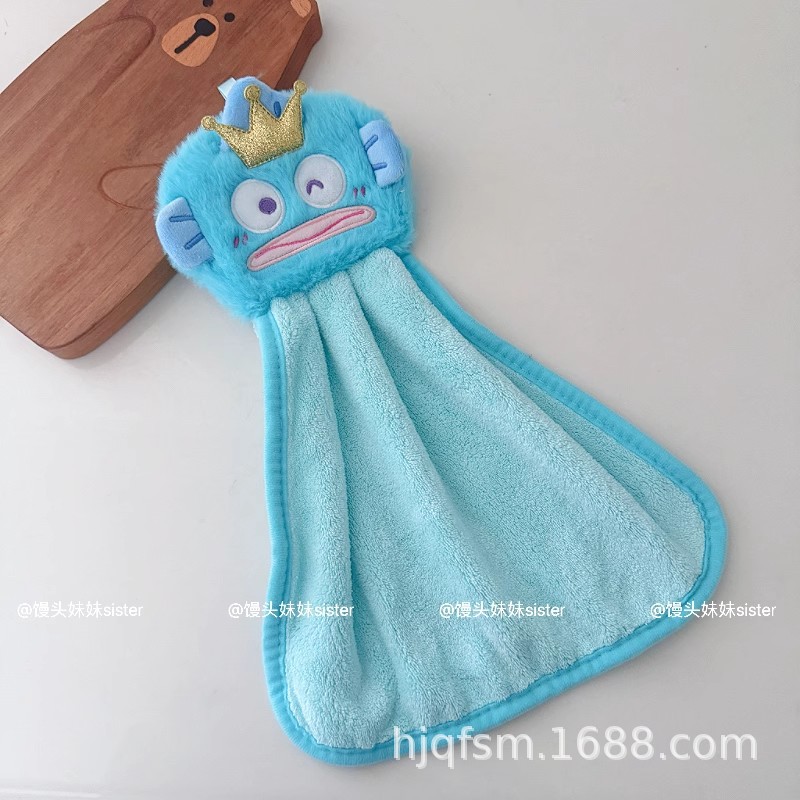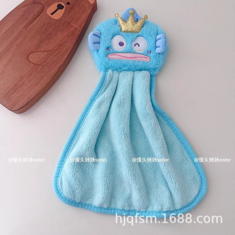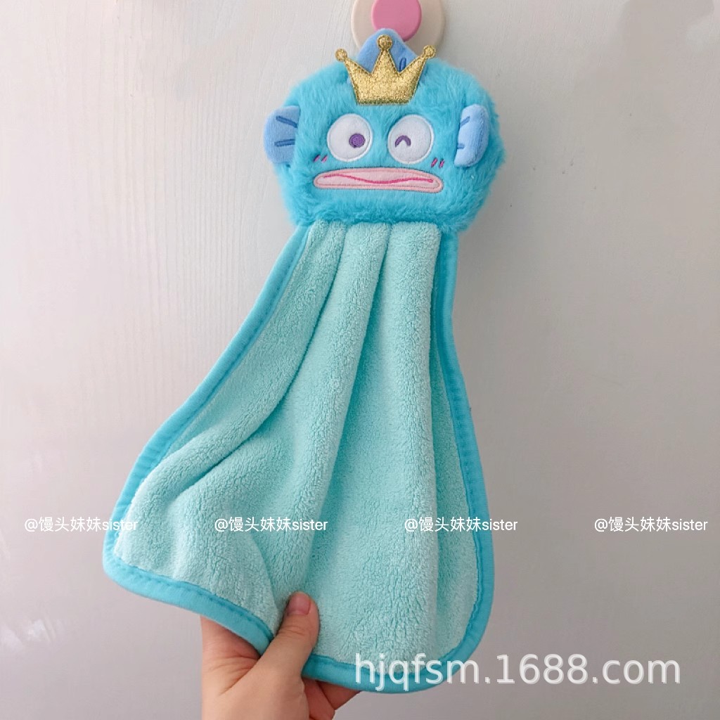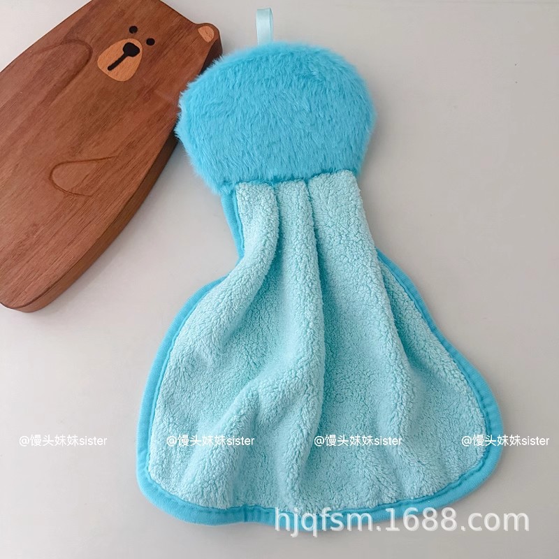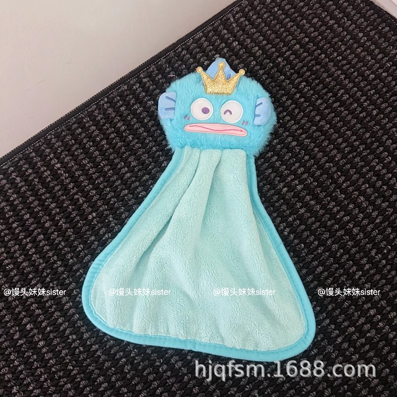 可愛卡通醜魚珊瑚絨掛式擦手巾家用廚房加厚吸水小毛巾兒童抹手布