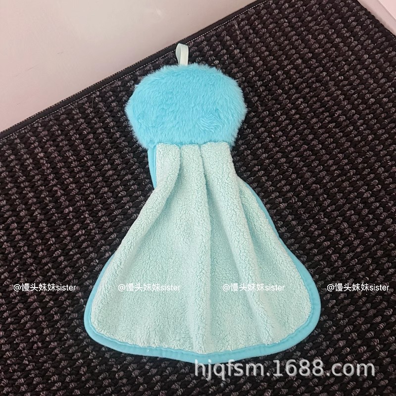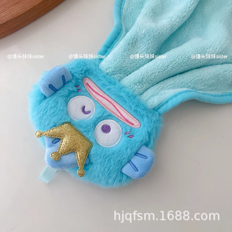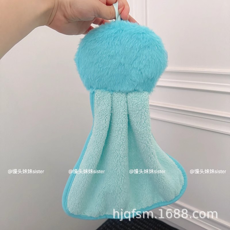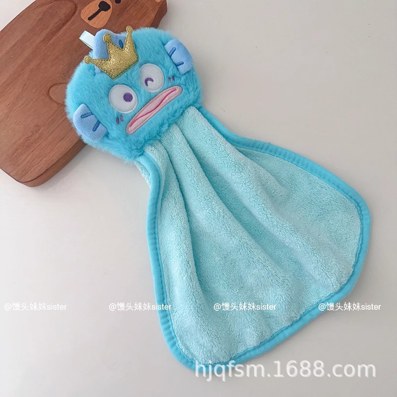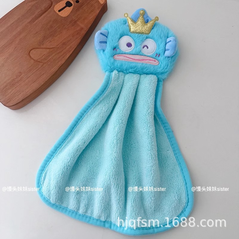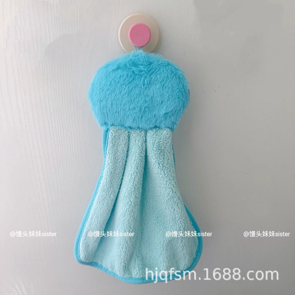 可愛卡通醜魚珊瑚絨掛式擦手巾家用廚房加厚吸水小毛巾兒童抹手布
