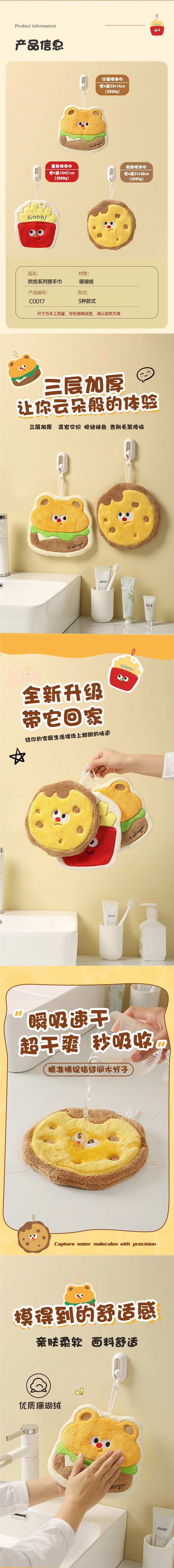 高顔值加厚烘焙造型卡通兒童擦手巾吸水珊瑚絨小方巾廚房浴室兩用