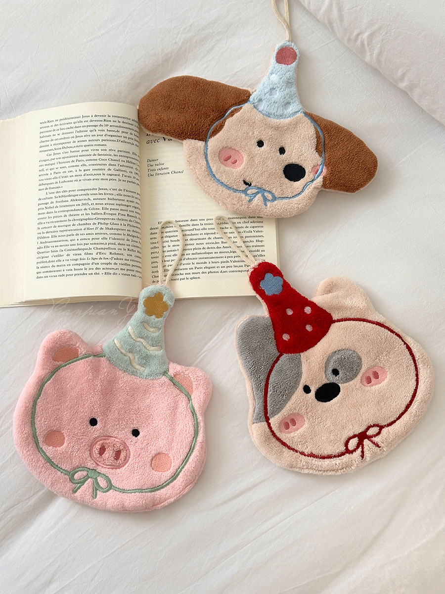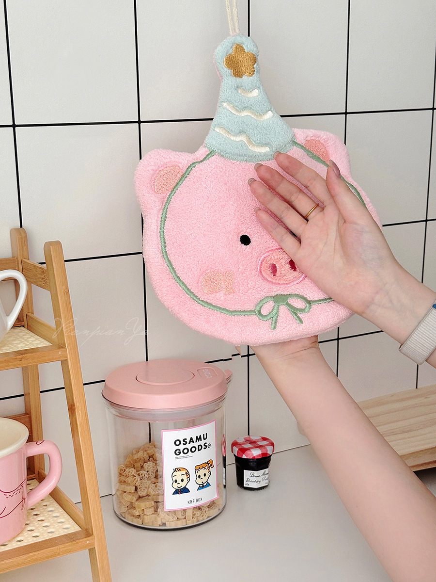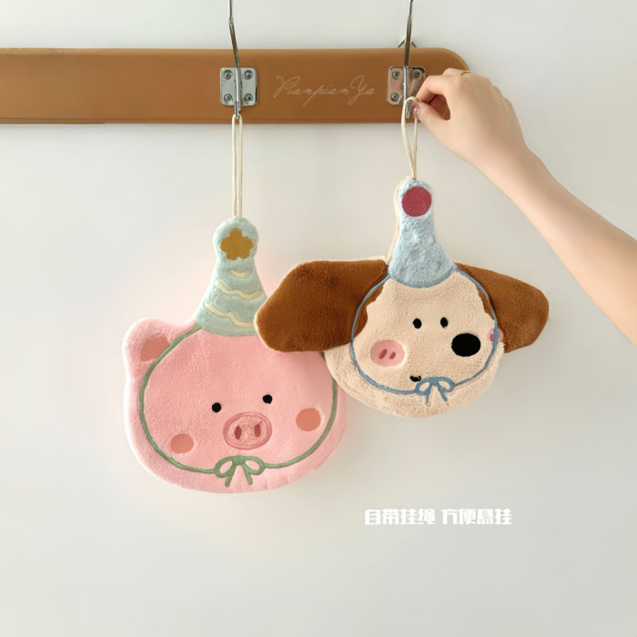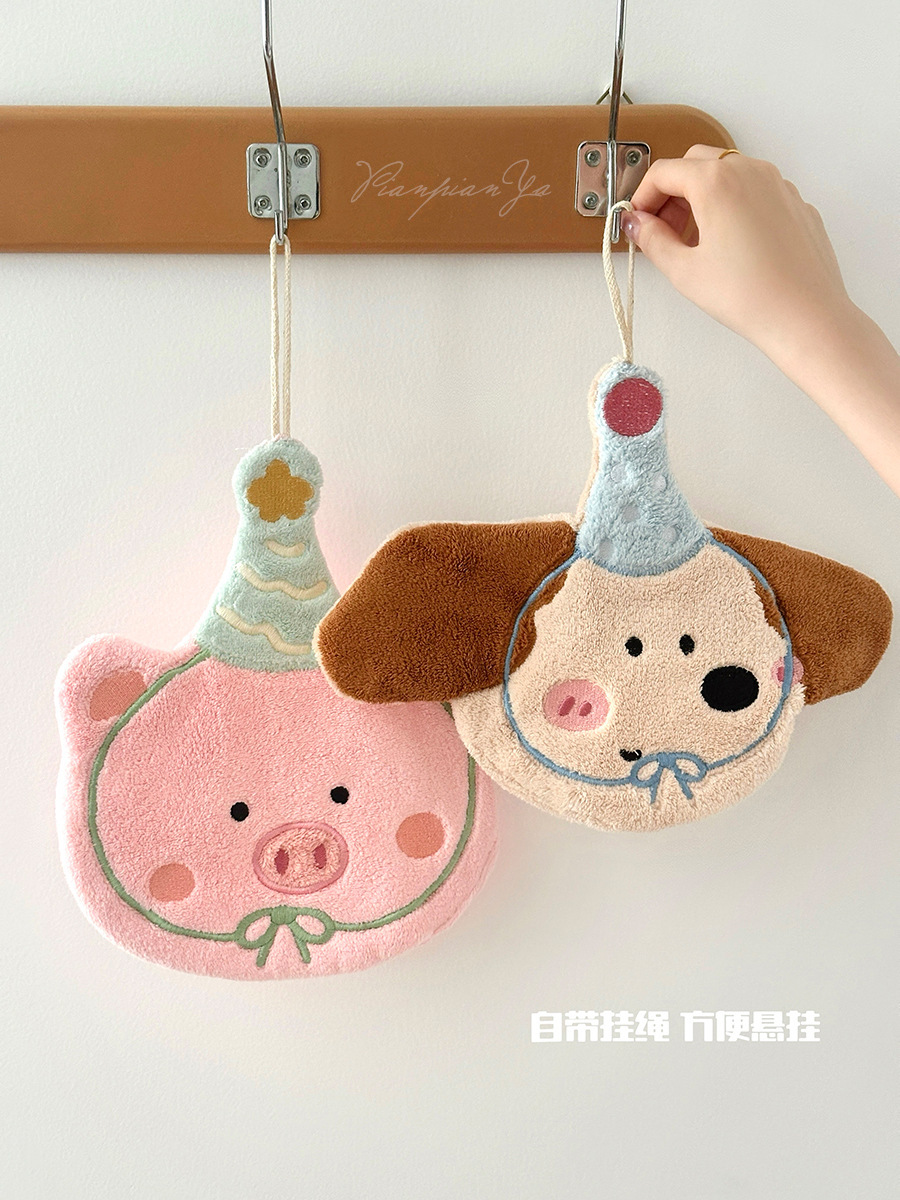 可愛刺綉小狗擦手巾廚房浴室可掛式卡通珊瑚絨小毛巾吸水小方巾