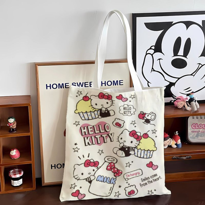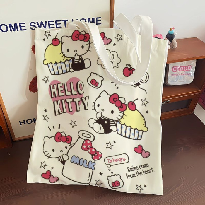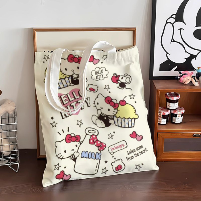 2024新款大容量通勤帆布包可愛卡通新款高顔值凱蒂包女單肩手提袋