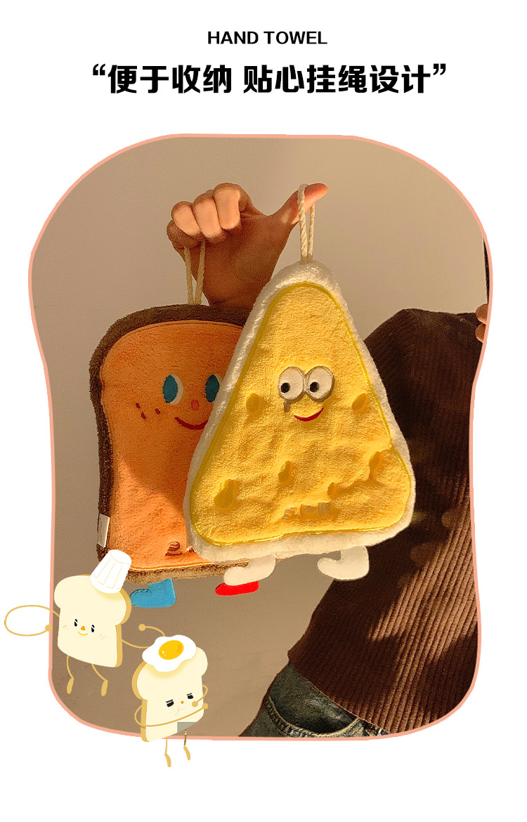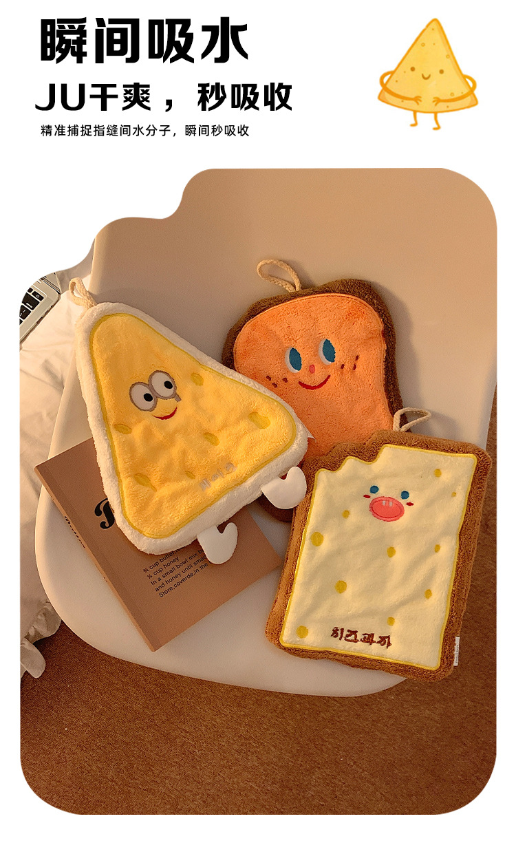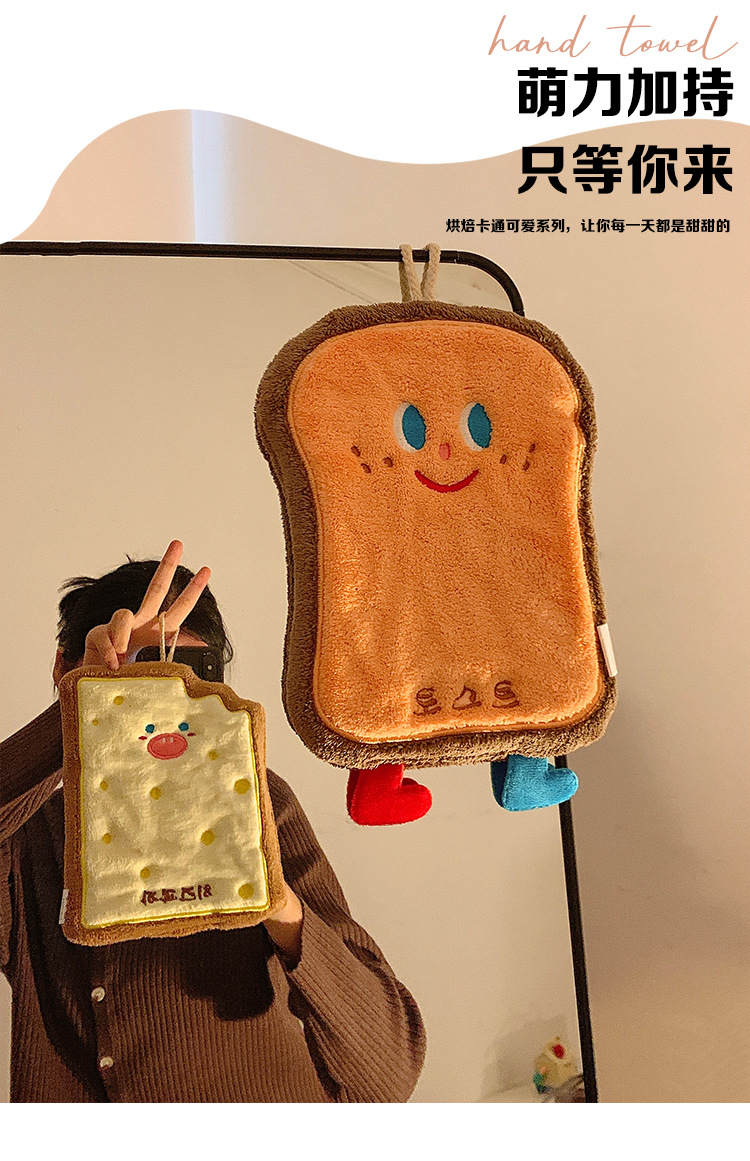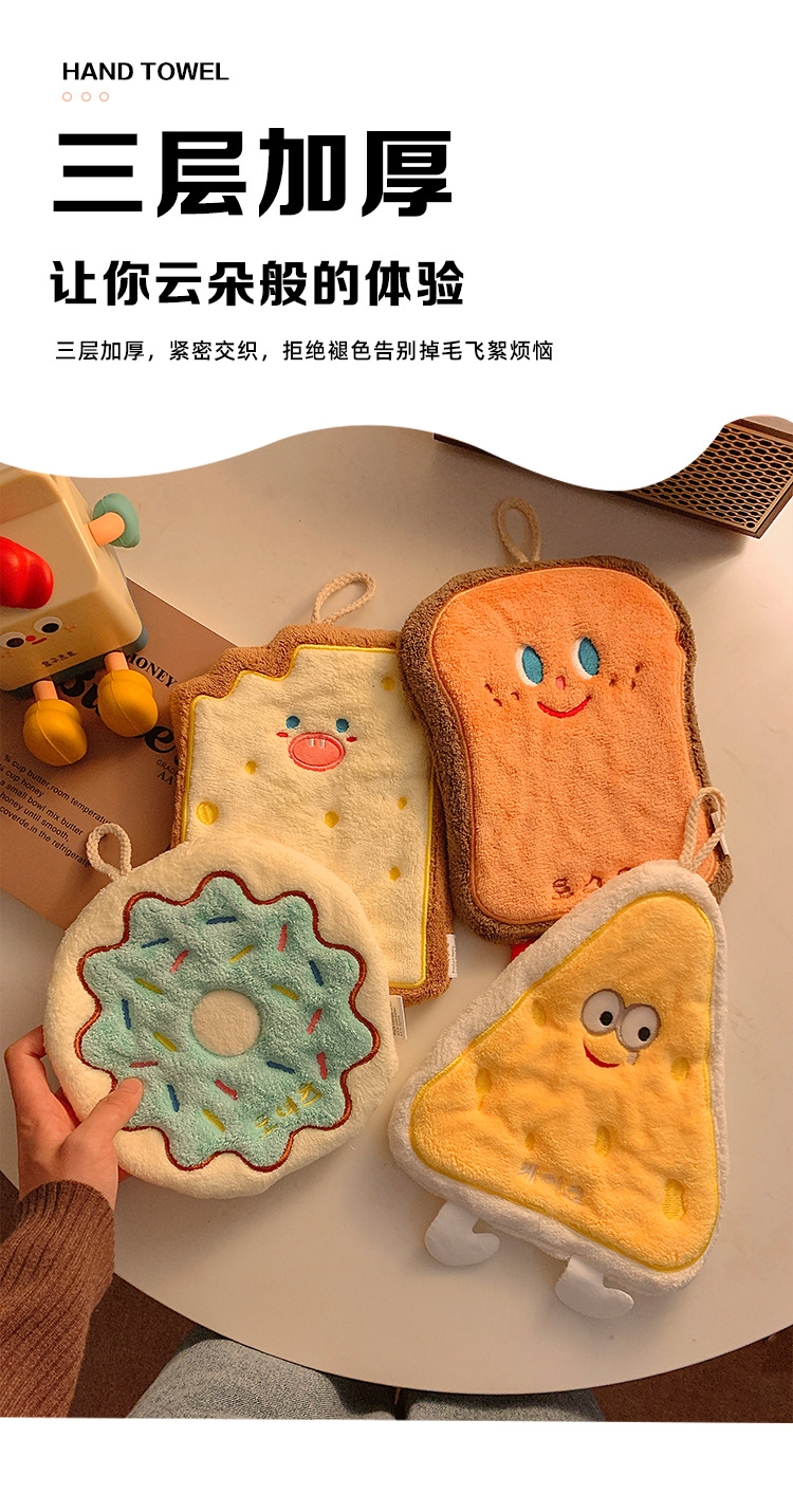 烘焙系列珊瑚絨奶酪卡掛式卡通擦手巾吸水加厚衛生間廚房擦手毛巾