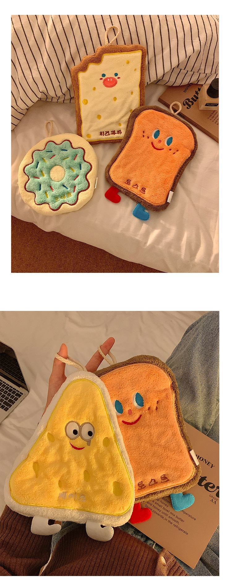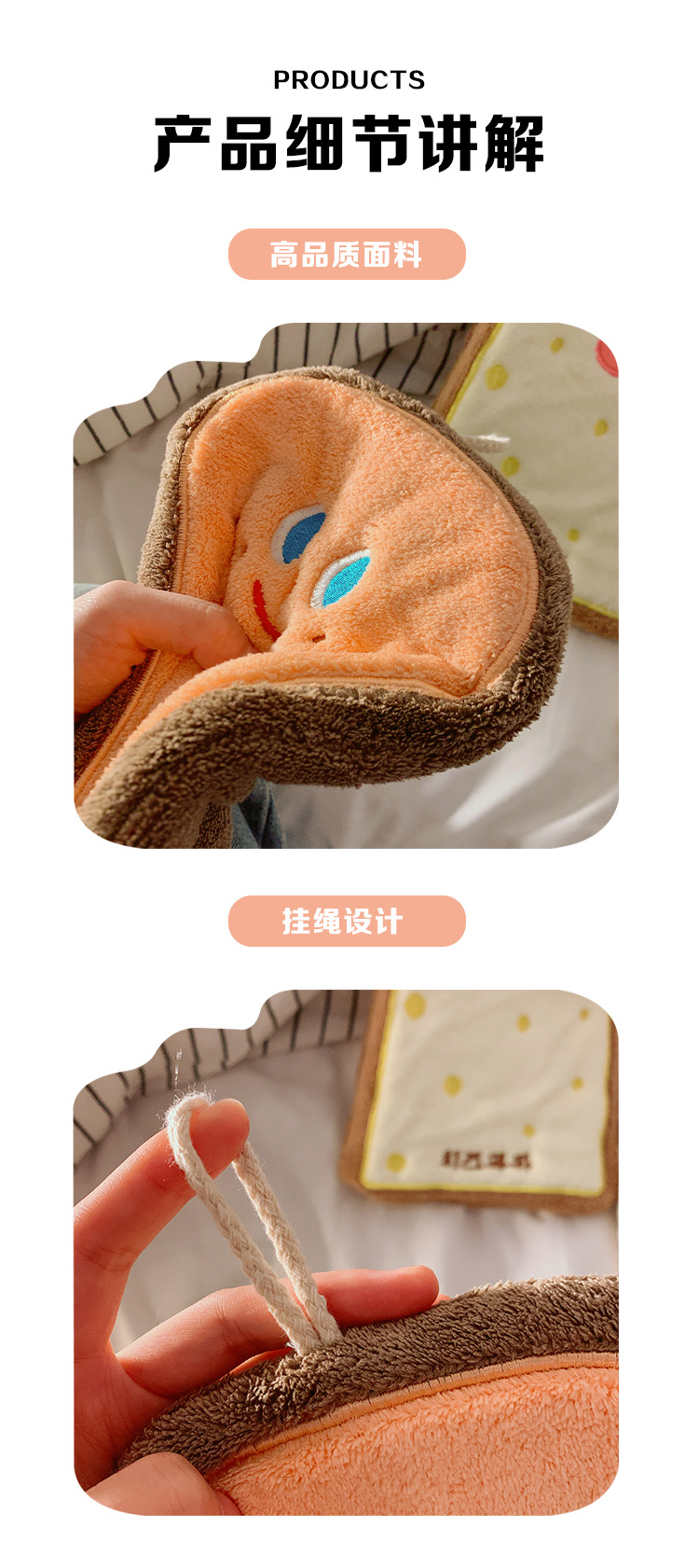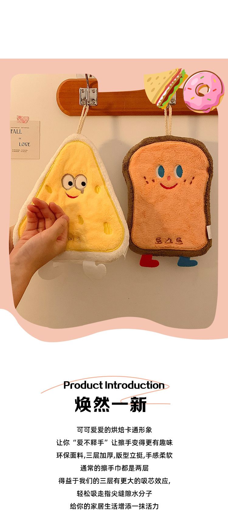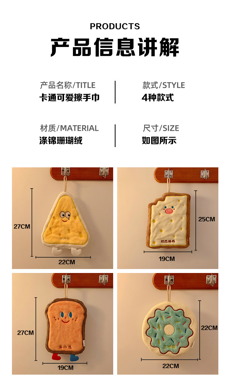 烘焙系列珊瑚絨奶酪卡掛式卡通擦手巾吸水加厚衛生間廚房擦手毛巾