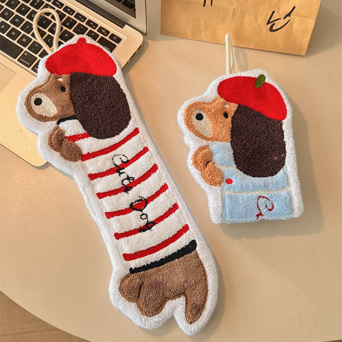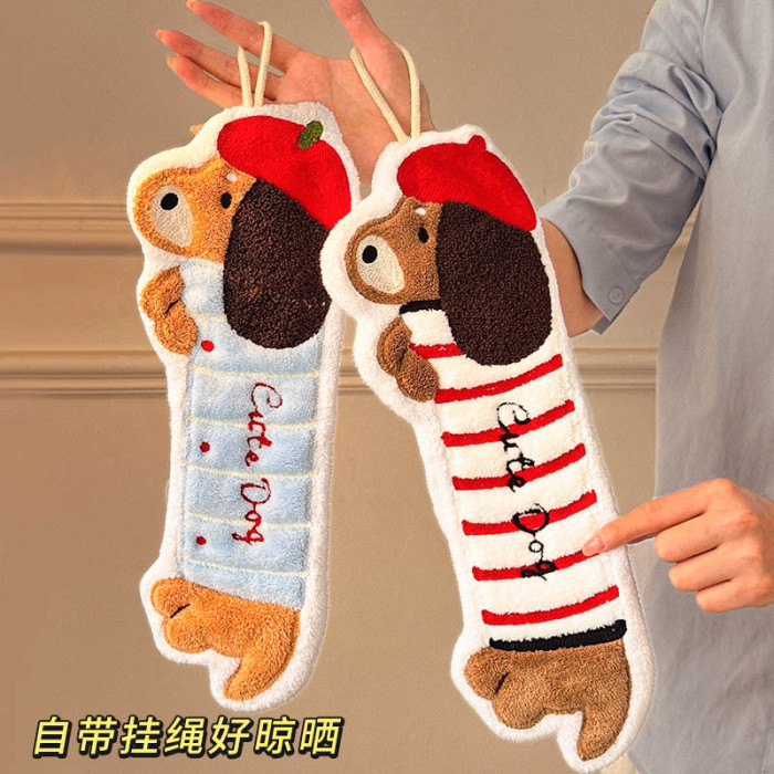 衛生間廚房加厚手帕超強吸水不髮臭抹布可愛臘腸狗掛式擦手巾毛巾