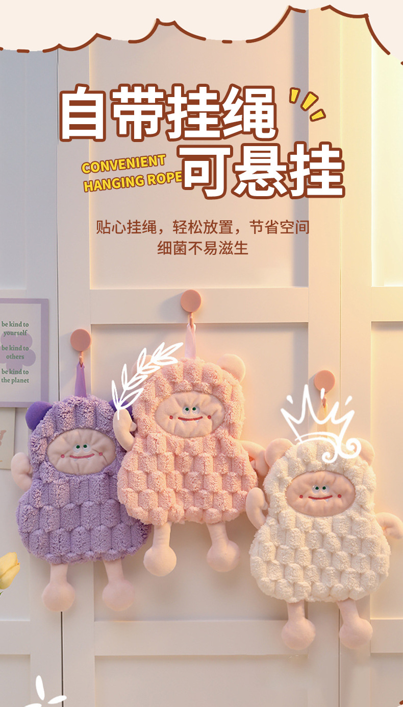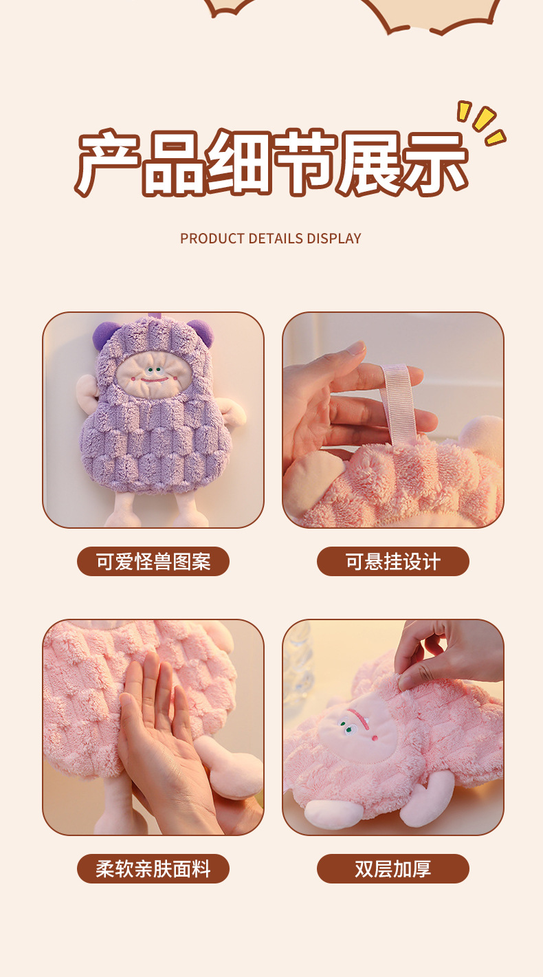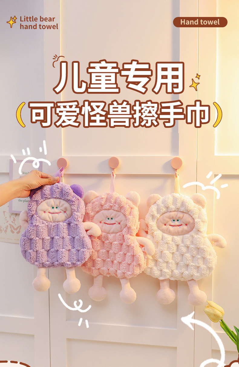 擦手巾掛式可愛怪獸衛生間廚房卡通可愛吸水速乾加厚少兒抹手布