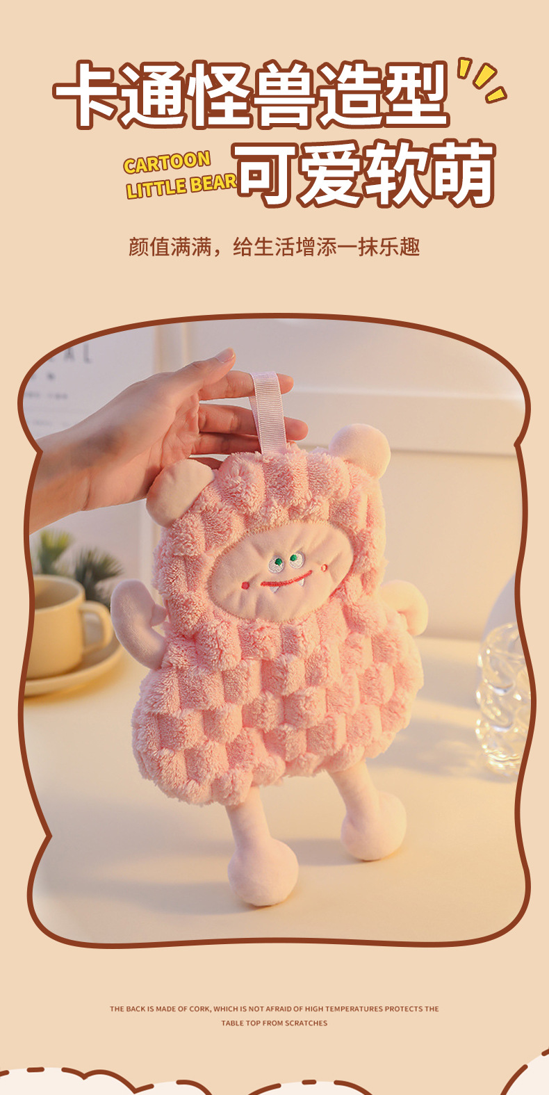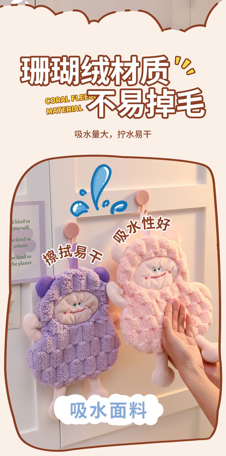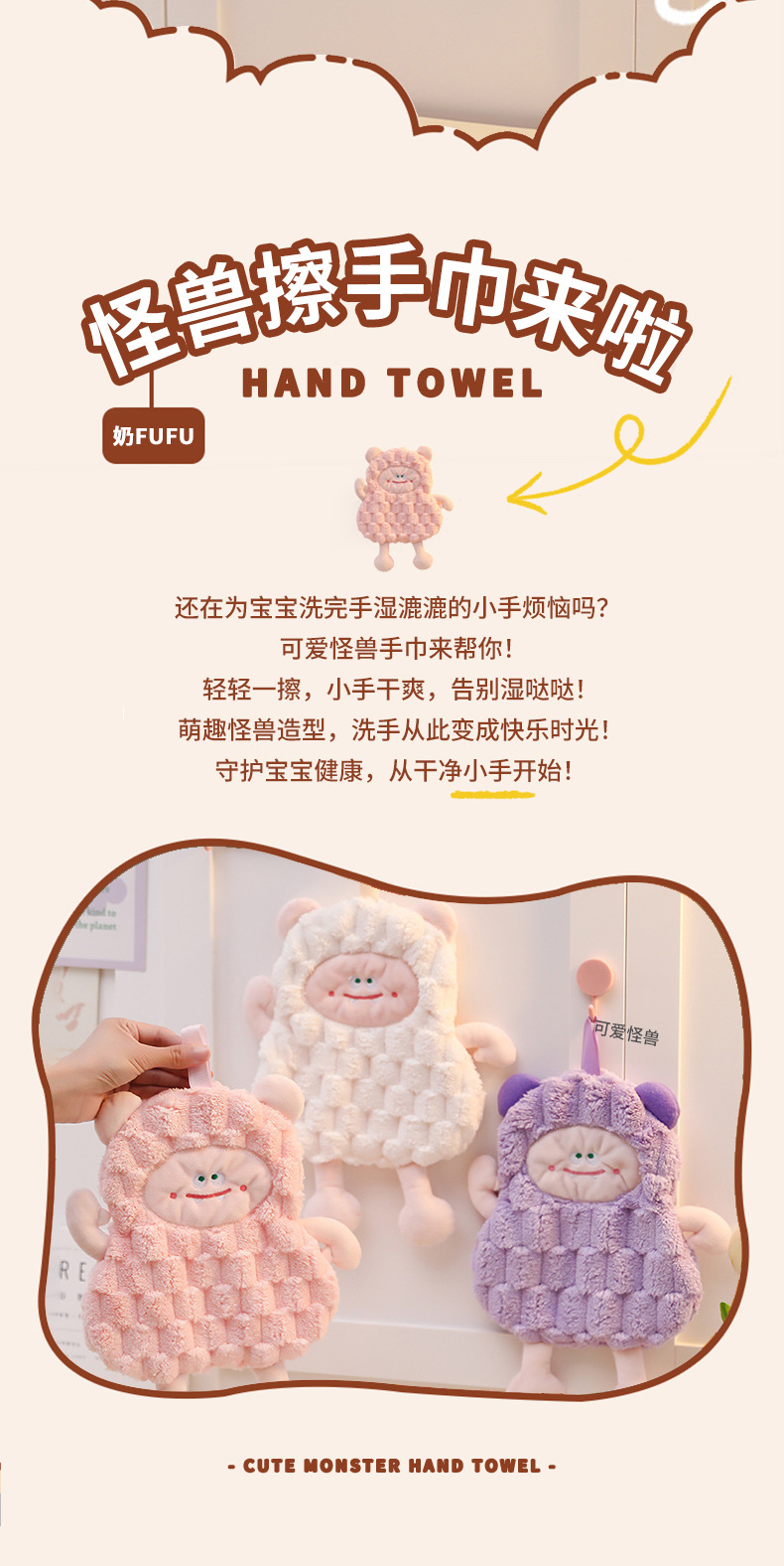 擦手巾掛式可愛怪獸衛生間廚房卡通可愛吸水速乾加厚少兒抹手布