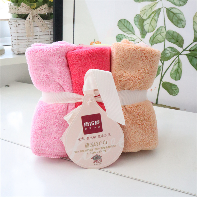 康樂屋珊瑚絨方巾 30*30公分6條卡頭裝 擦手巾毛巾擦桌布多色方巾
