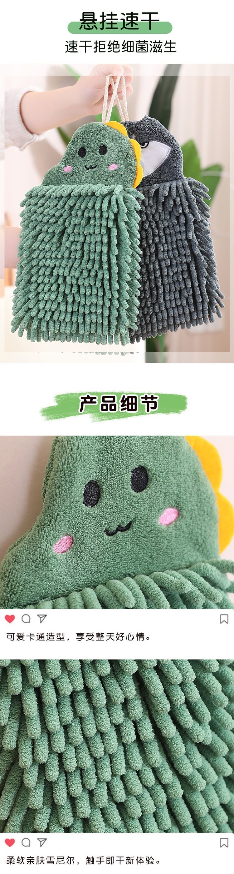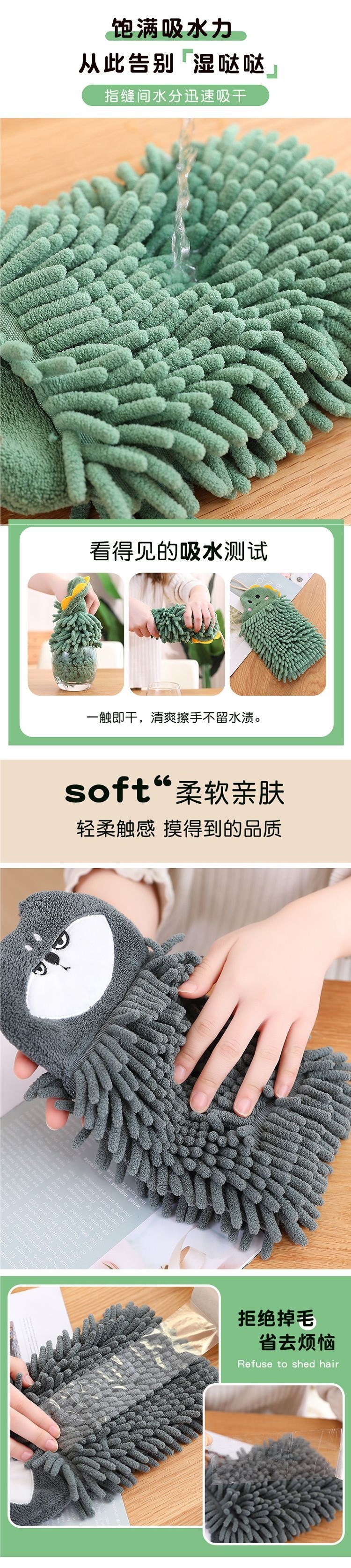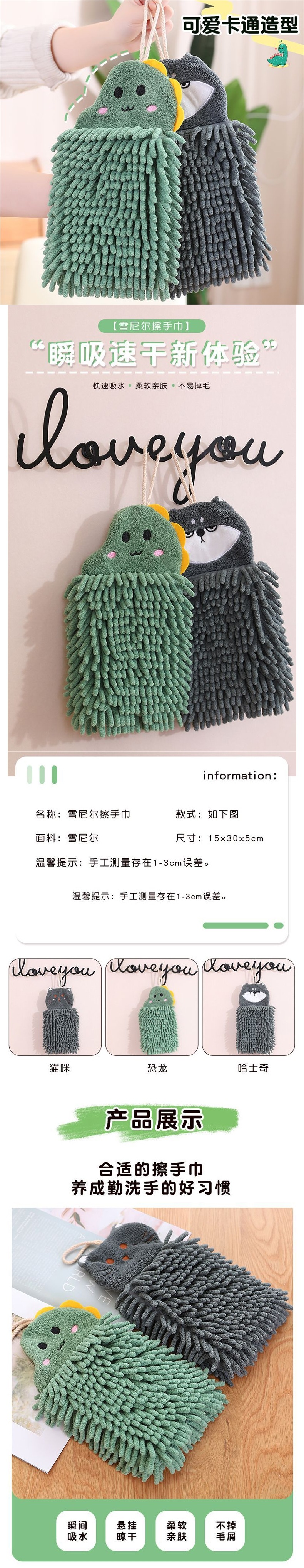 可愛速乾雪尼爾擦手巾防臭清新廚房加厚不掉毛浴室清潔掛式可攜式巾