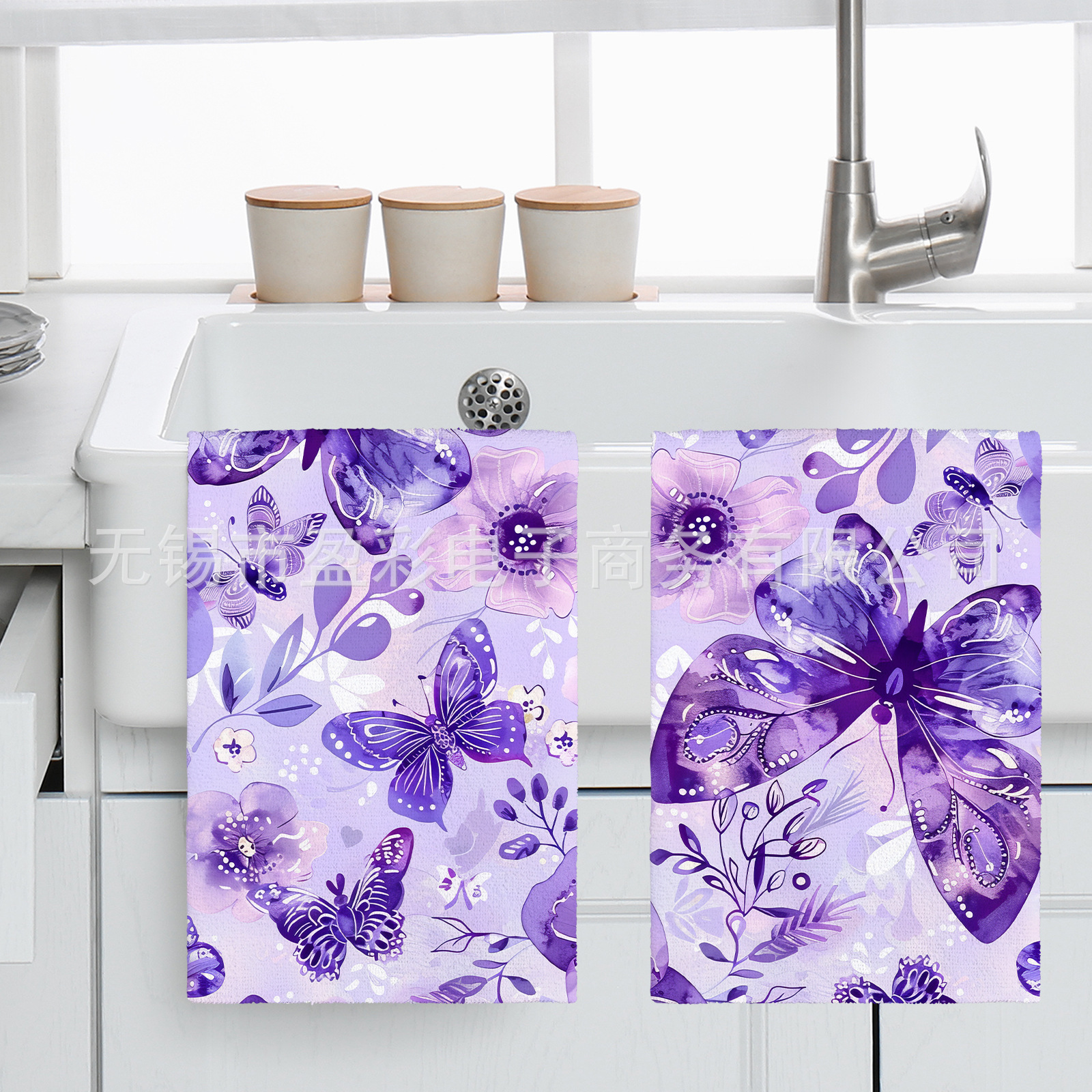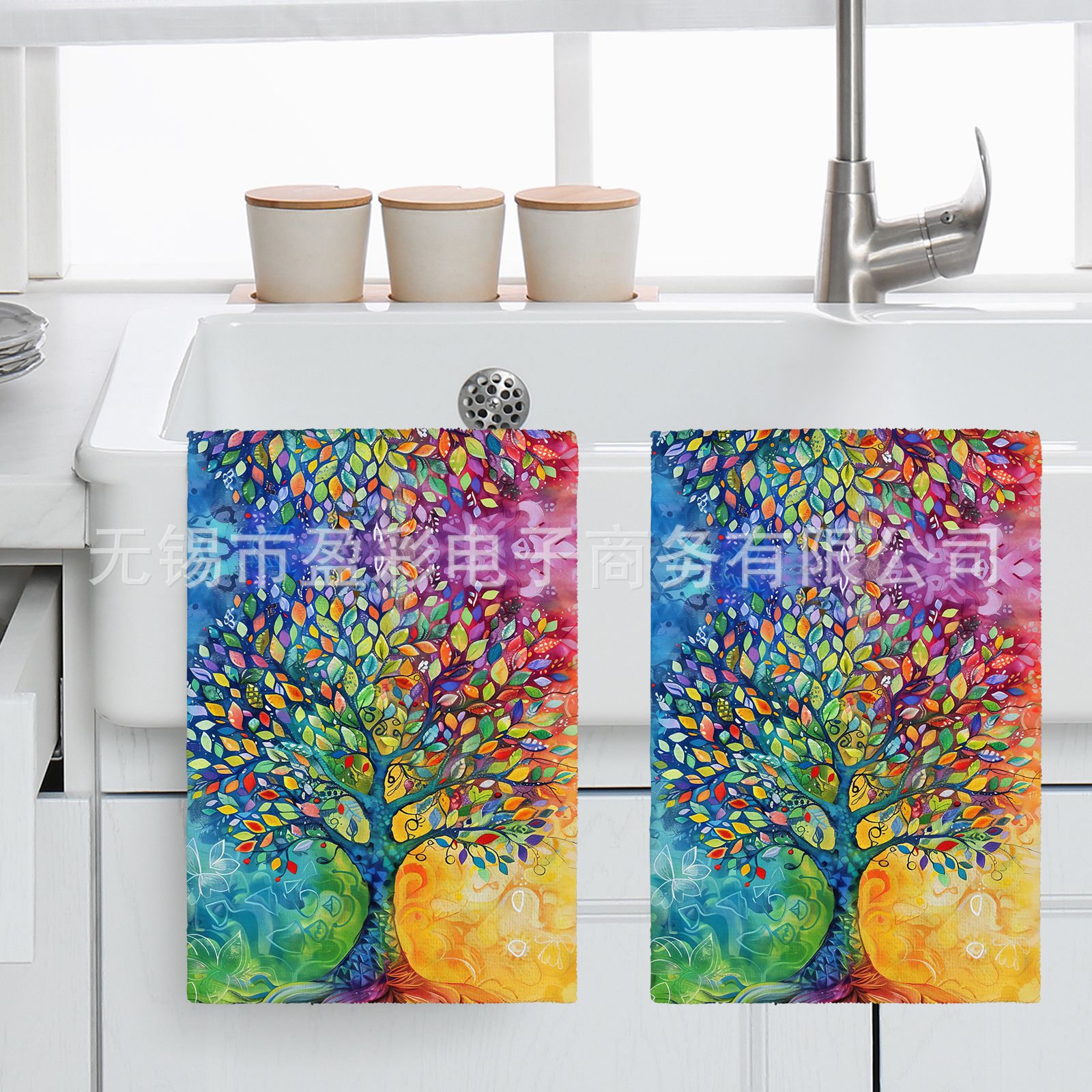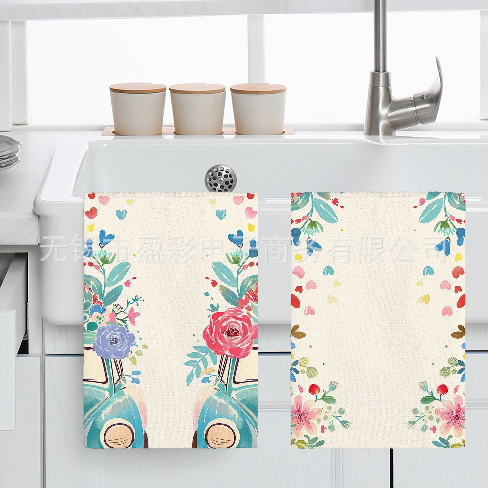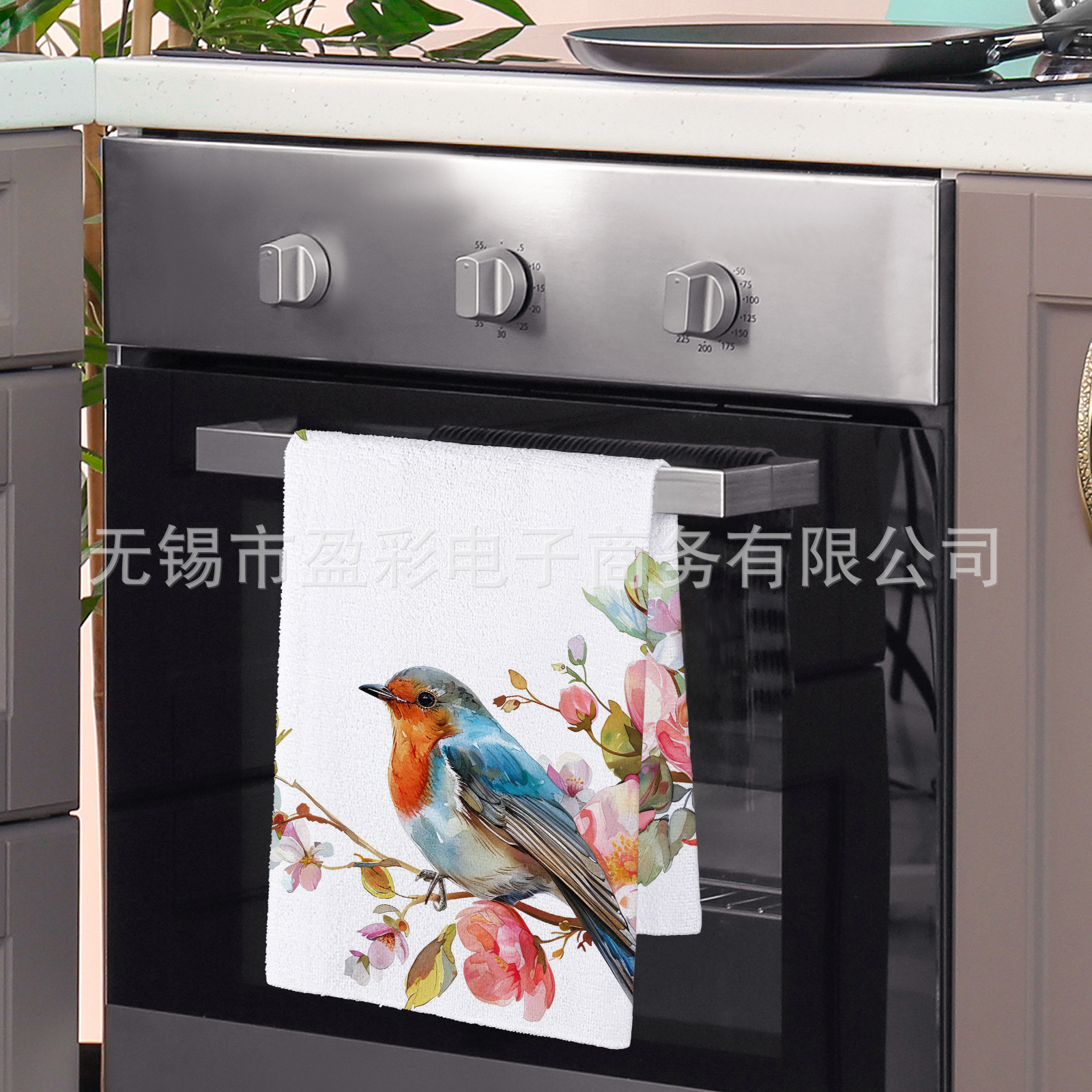 可愛樹枝小鳥印花毛巾布擦手巾茶巾數碼印花廚房浴室